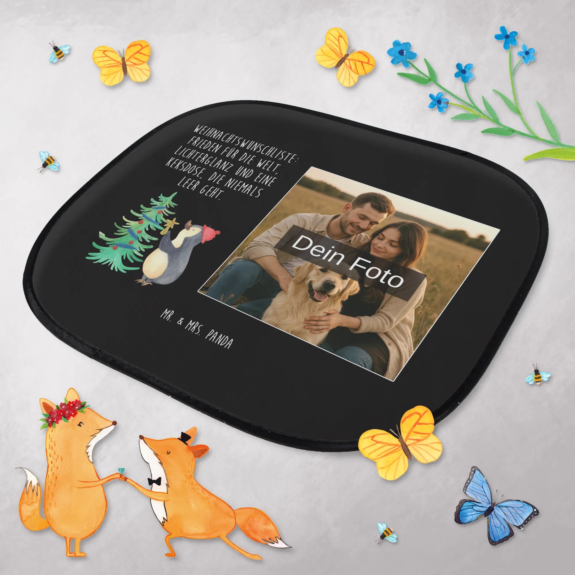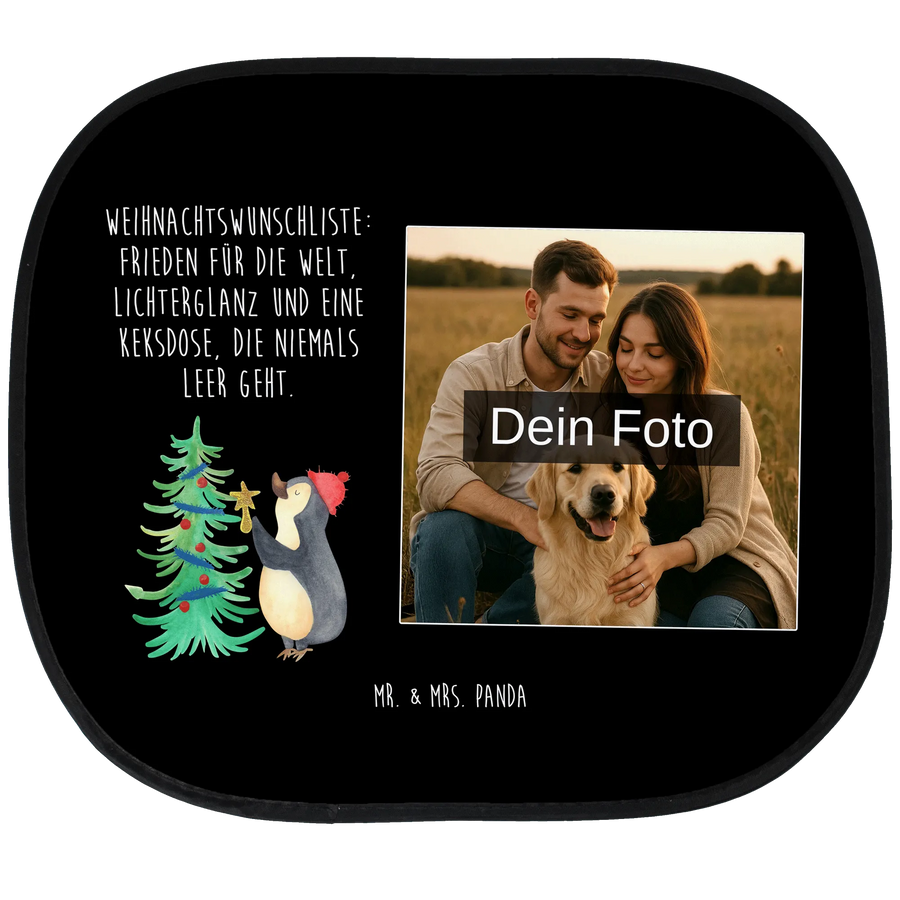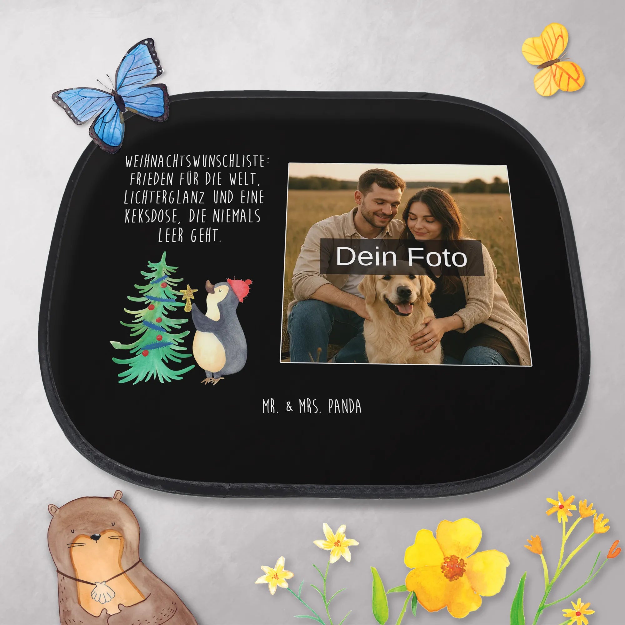 Personalisierbarer Foto Sonnenschutz Auto Pinguin Weihnachtsbaum