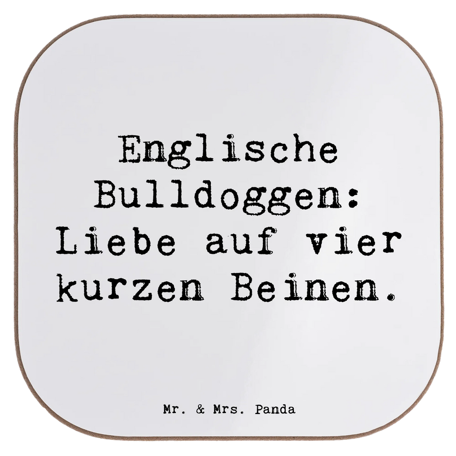 Square coaster Saying Englische Bulldoggen: Liebe auf vier kurzen Beinen. - White