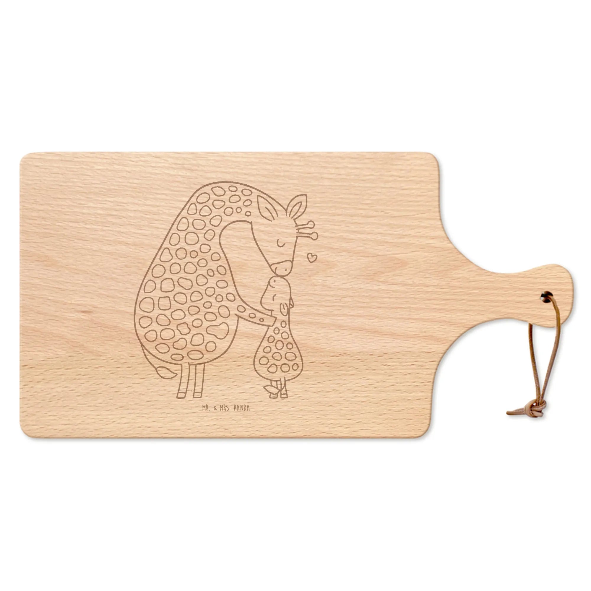 Stell dir vor, du startest deinen Morgen nicht einfach nur mit einem Frühstück, sondern mit einer herzlichen Umarmung aus der afrikanischen Savanne. Das Schneidebrett mit Griff von Mr. & Mrs. Panda ist weit mehr als ein gewöhnliches Küchenbrett. Es ist ein Symbol für die tiefste Zuneigung, die man empfinden kann. Inmitten der warmen Erdtöne unserer Afrika Kollektion findest du dieses zauberhafte Motiv: Eine stolze Giraffenmama, die ihrem Kind einen liebevollen Kuss auf den Kopf gibt. Begleitet wird diese Szene von der Botschaft: Du bist die größte Liebe meines Lebens! 🦒🧡