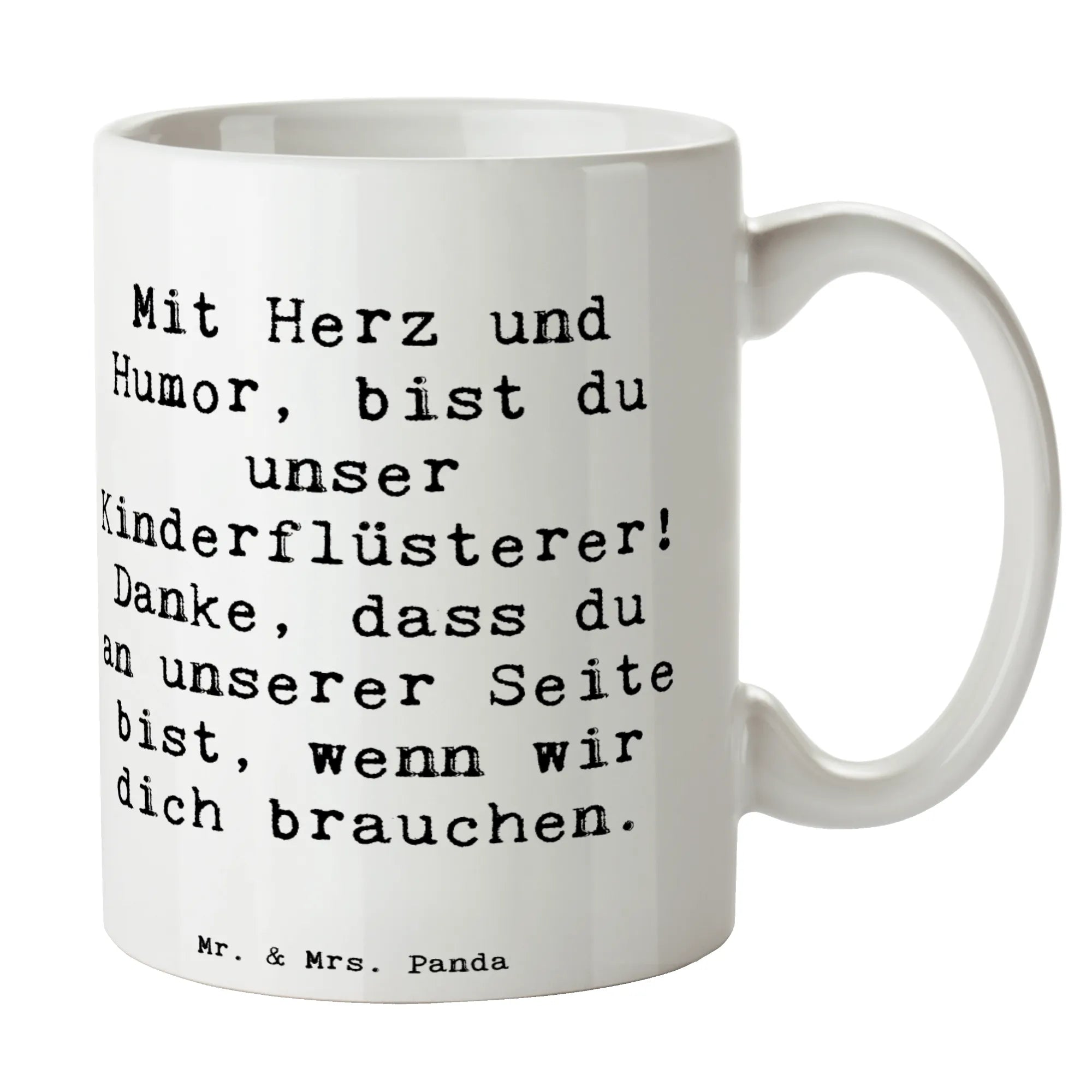 Mug Saying Mit Herz und Humor, bist du unser Kinderflüsterer! Danke, dass du an unserer Seite bist, wenn wir dich brauchen. - White