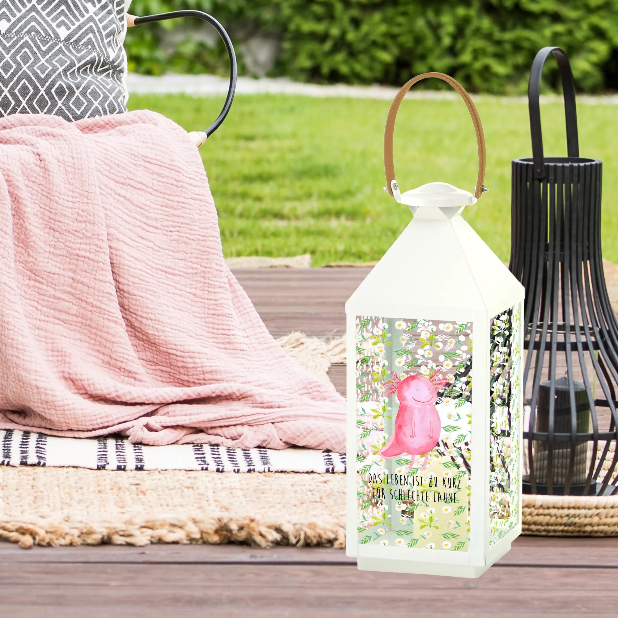 Crafted from premium metal and high-quality glass, this lantern is not just a decorative piece; it's a mood-lifter! With its touch of playful artistry, each lantern is adorned with a lovingly hand-drawn design of a happy Axolotl, created by Mrs. Panda herself. Whether in your garden, on your balcony, or illuminating your living room, it emits warmth and positivity, making it an exquisite gift for friends and family alike.