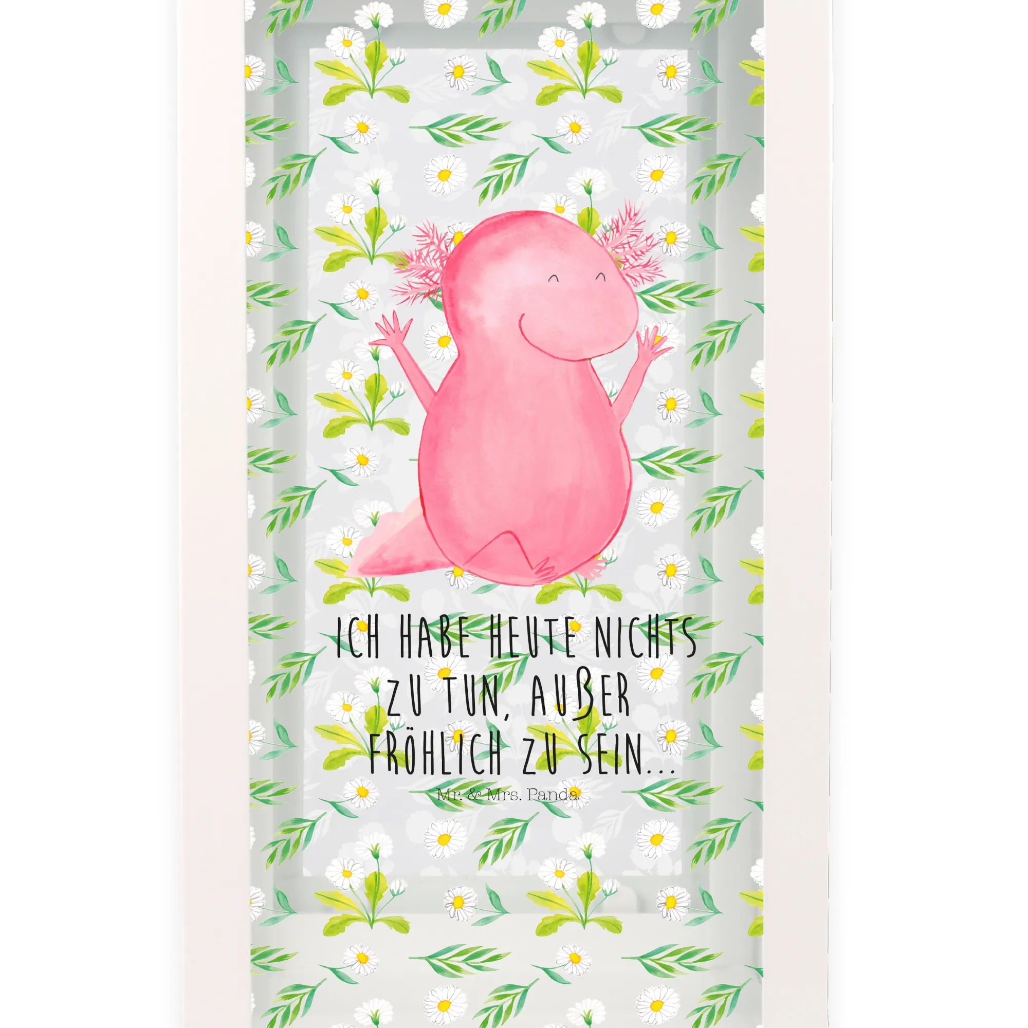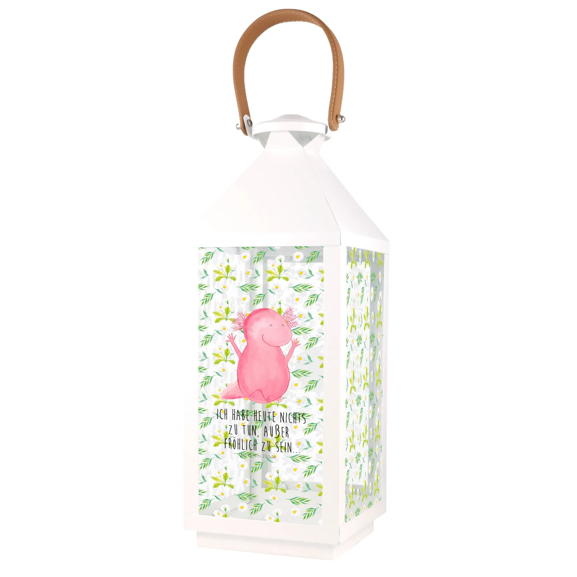 Made from premium metal and high-quality glass, this lantern showcases the unique design of a cheerful axolotl cheering with its arms raised high. Designed with love by Mrs. Panda in her signature panda style, each detail of the axolotl is hand-drawn and brings smiles and laughter wherever it shines.