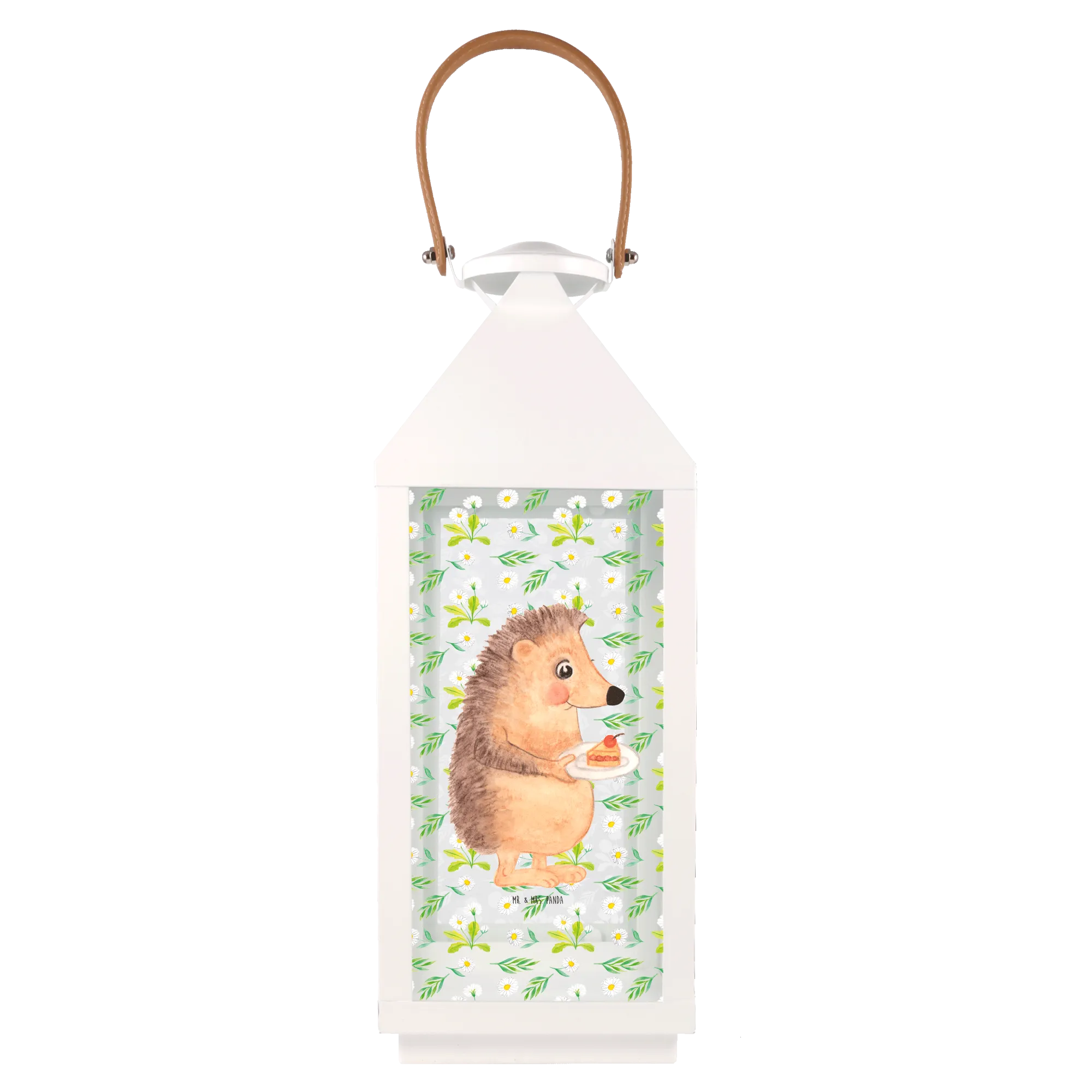 Introducing the adorable Decorative Lantern featuring our charming Hedgehog with a slice of cake from the beloved Small World collection by Mr. & Mrs. Panda! This delightful garden lamp brings a touch of whimsy and warmth to any environment, making it the perfect gift for animal lovers or anyone who appreciates cute home decor.