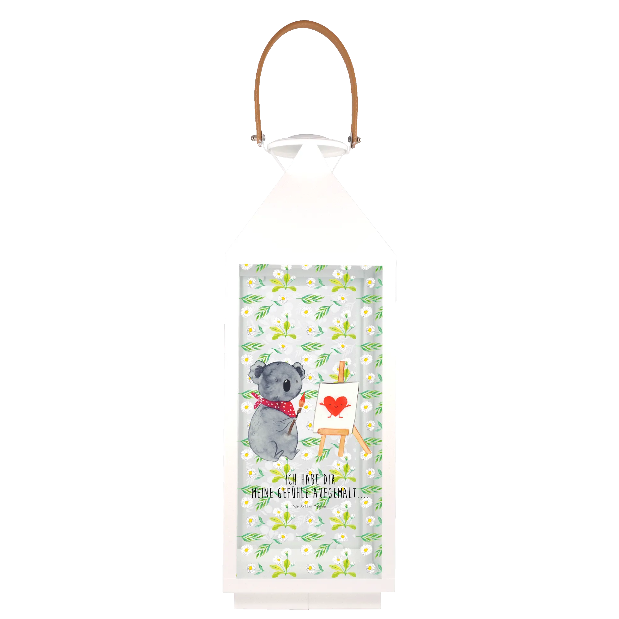 The beautiful Koala motif depicts a sweet koala artist, painting with a brush on a canvas; it echoes feelings of warmth and affection. This makes it an enchanting gift that speaks volumes – a perfect expression of your care and love. Celebrate special moments, whether it's a birthday, housewarming, or just to brighten up someone's day with a heartfelt present. The sentiment behind this charming laterne is as precious as the light it brings.