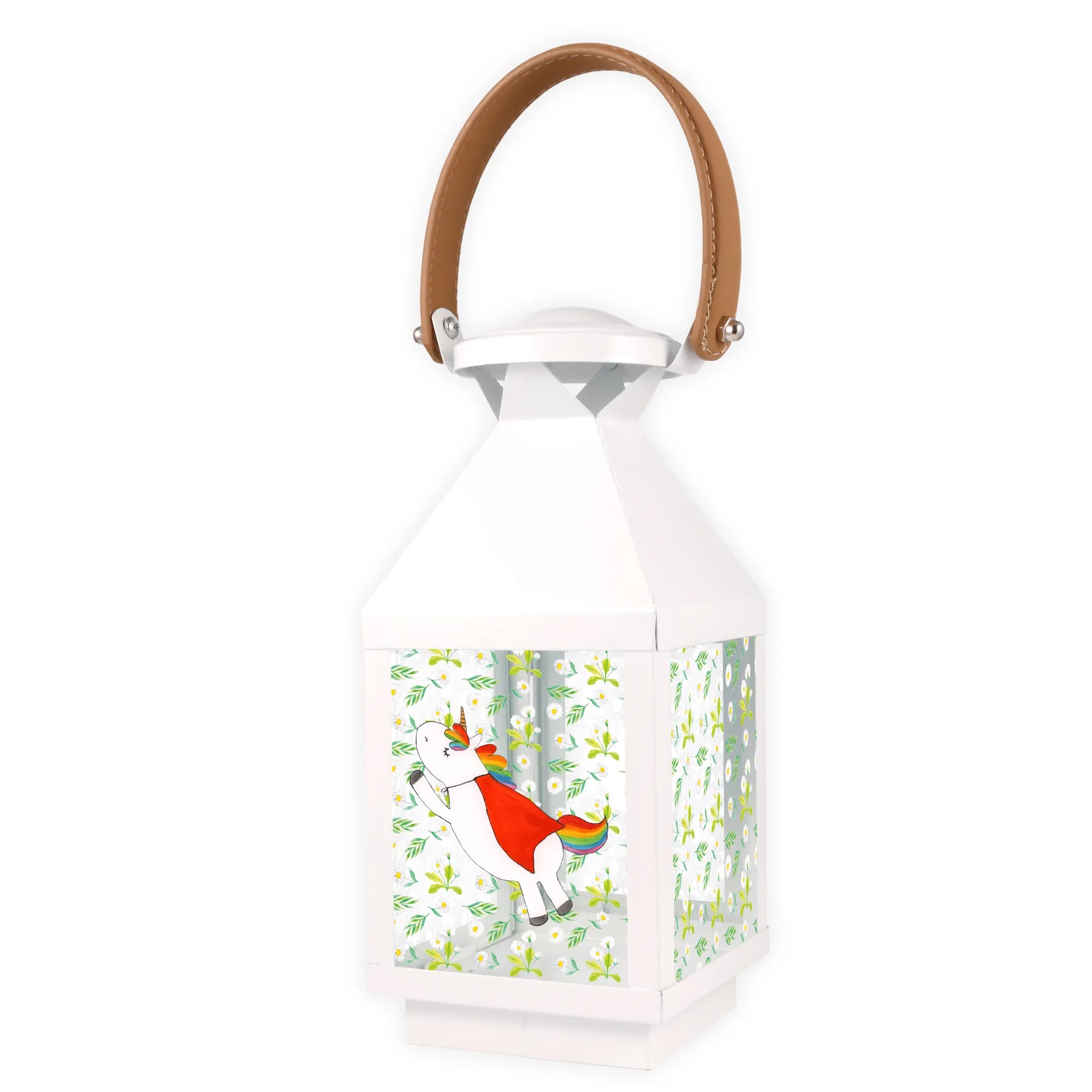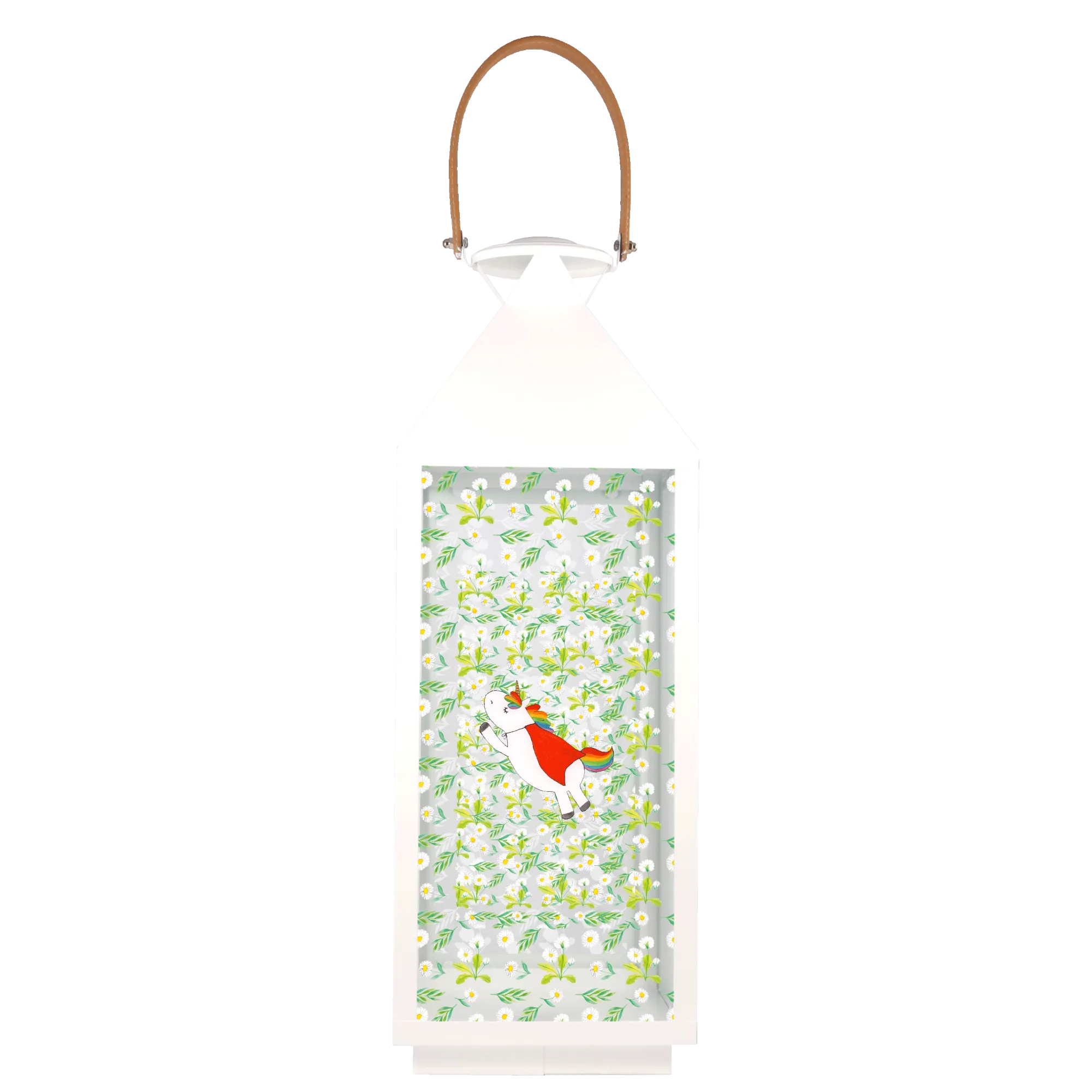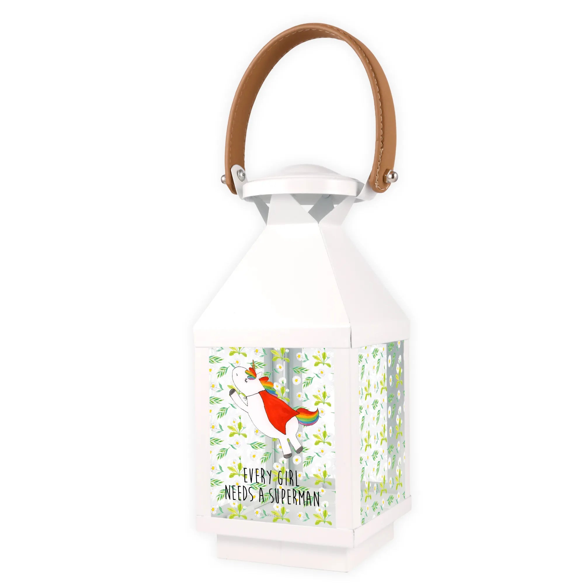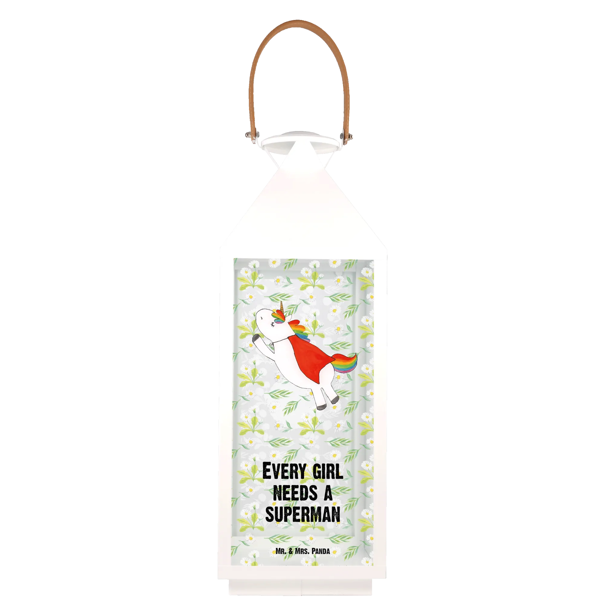 Introducing the beautiful Decorative Lantern Unicorn Superhero from the exclusive Unicorn Collection by Mr. & Mrs. Panda! This charming lantern is not just a delightful decoration for your garden, but also an enchanting piece that brings a whimsical touch to any setting. Crafted from premium metal and high-quality glass, it ensures durability while radiating charm.