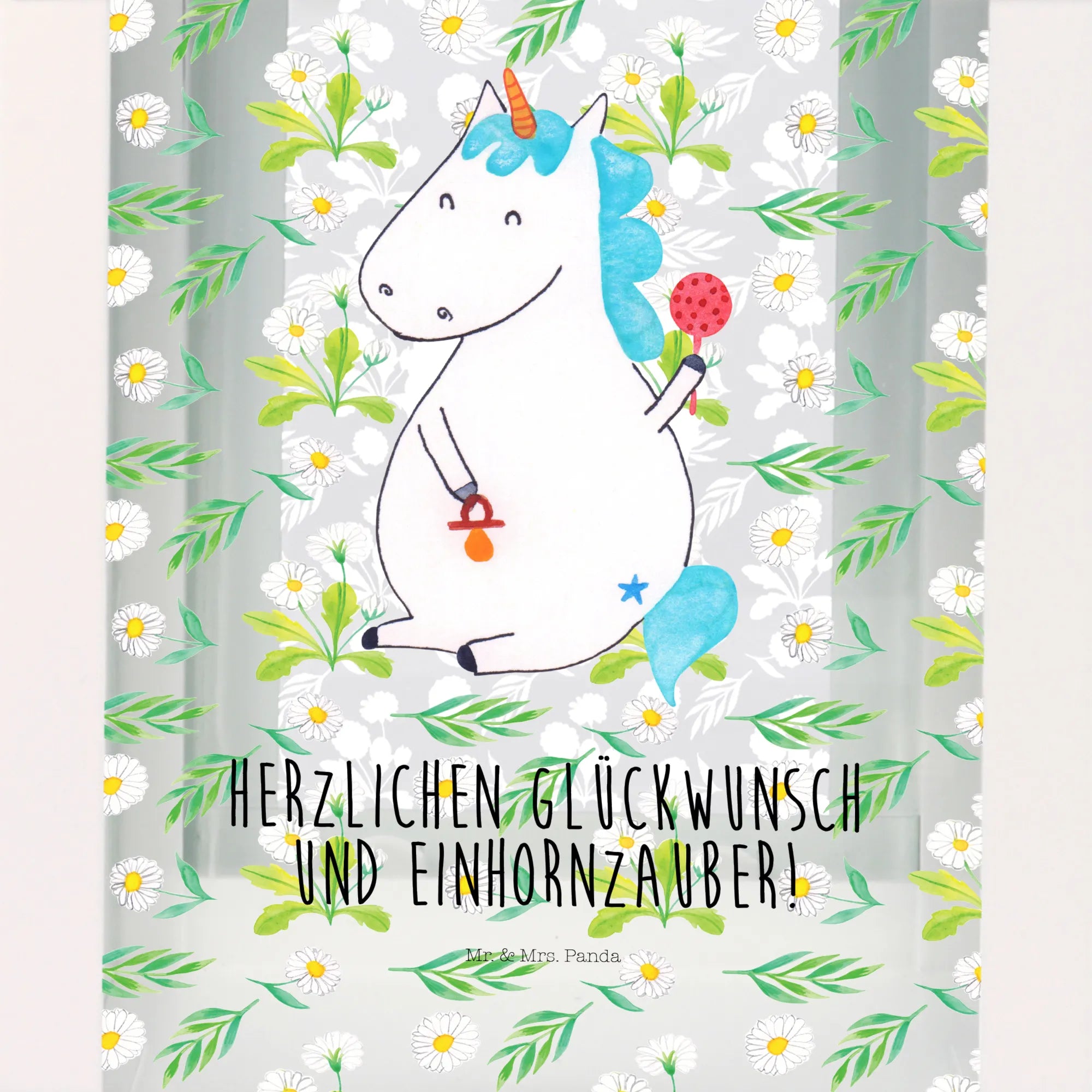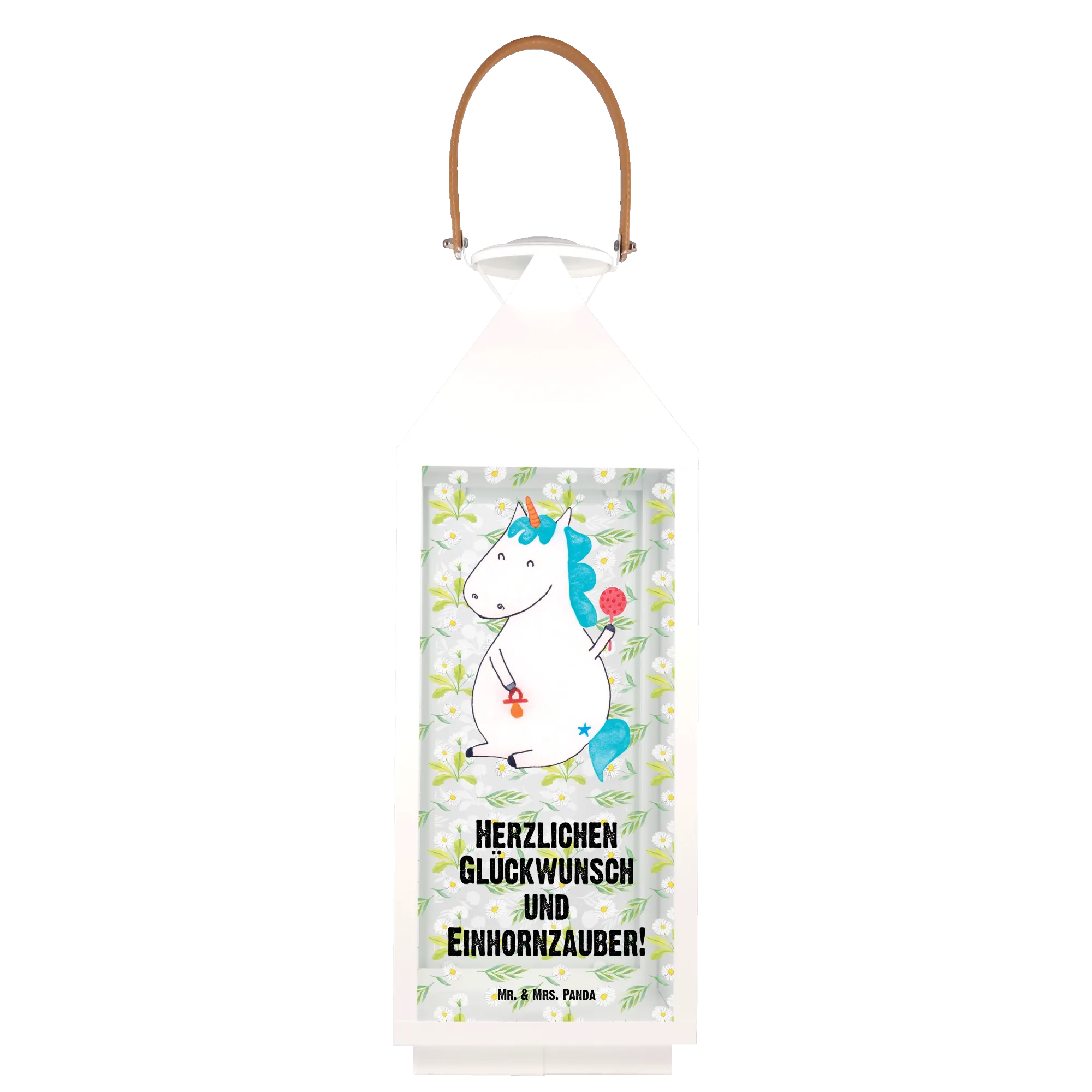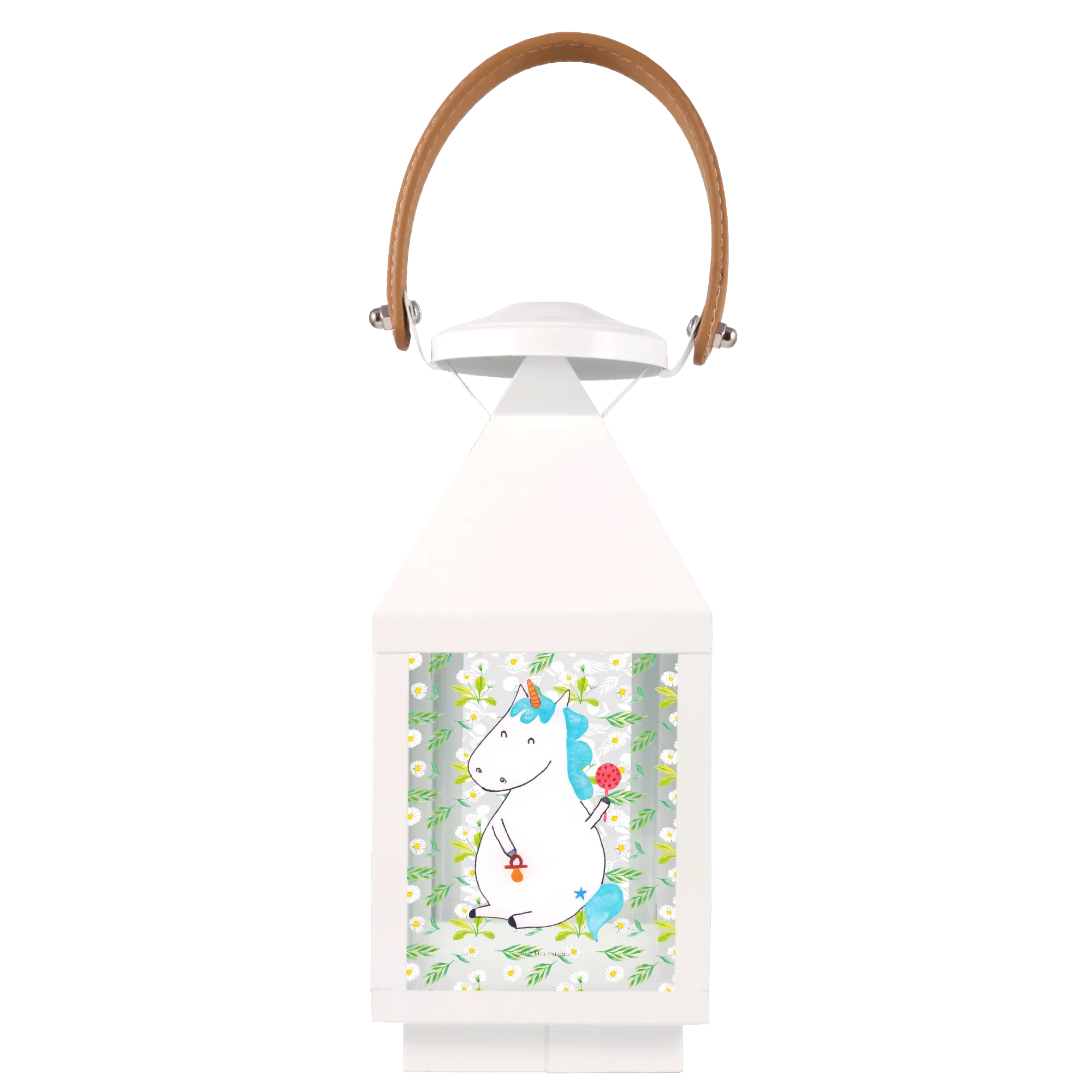 Introducing the charming Decorative Lantern Unicorn Baby from the delightful Unicorn Collection by Mr. & Mrs. Panda! This mesmerizing garden light is not just a simple decoration—it's a magical addition that radiates warmth and joy in any setting. Crafted from premium metal and high-quality glass, its sturdy yet whimsical design makes it perfect for both indoor and outdoor use. Embellished with the heartwarming motif of an adorable baby unicorn, complete with a pacifier and bib, this lantern is the ideal gift for new parents and anyone celebrating a first birthday.