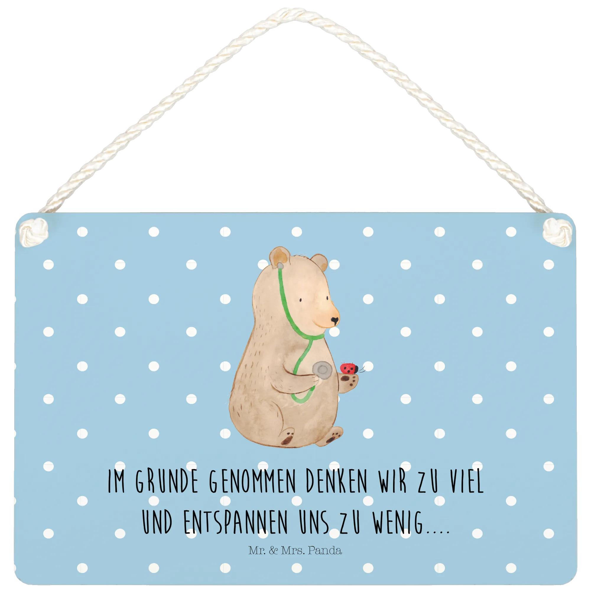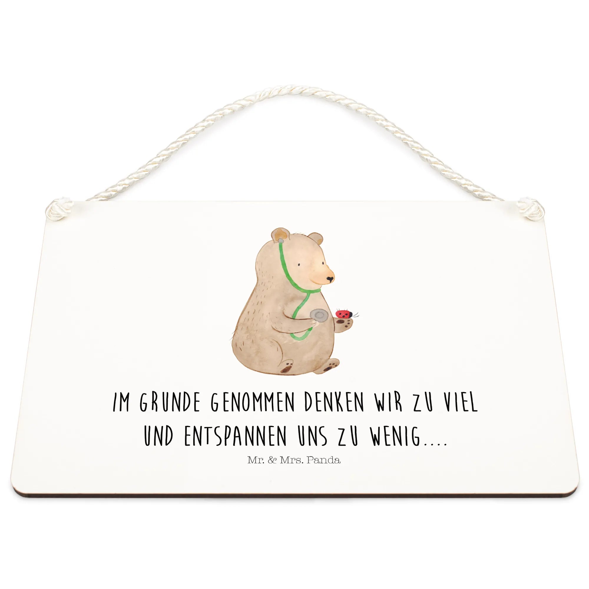 Introducing the delightful Decorative Sign featuring our adorable Bear Doctor from the charming Bear collection by Mr. & Mrs. Panda! This beautifully designed wooden sign showcases a heartwarming illustration of a teddy bear dressed as a doctor, taking care of a little ladybug. It's a perfect statement piece for any room, adding a touch of whimsy and cheer, while serving as a gentle reminder to take things easy!
