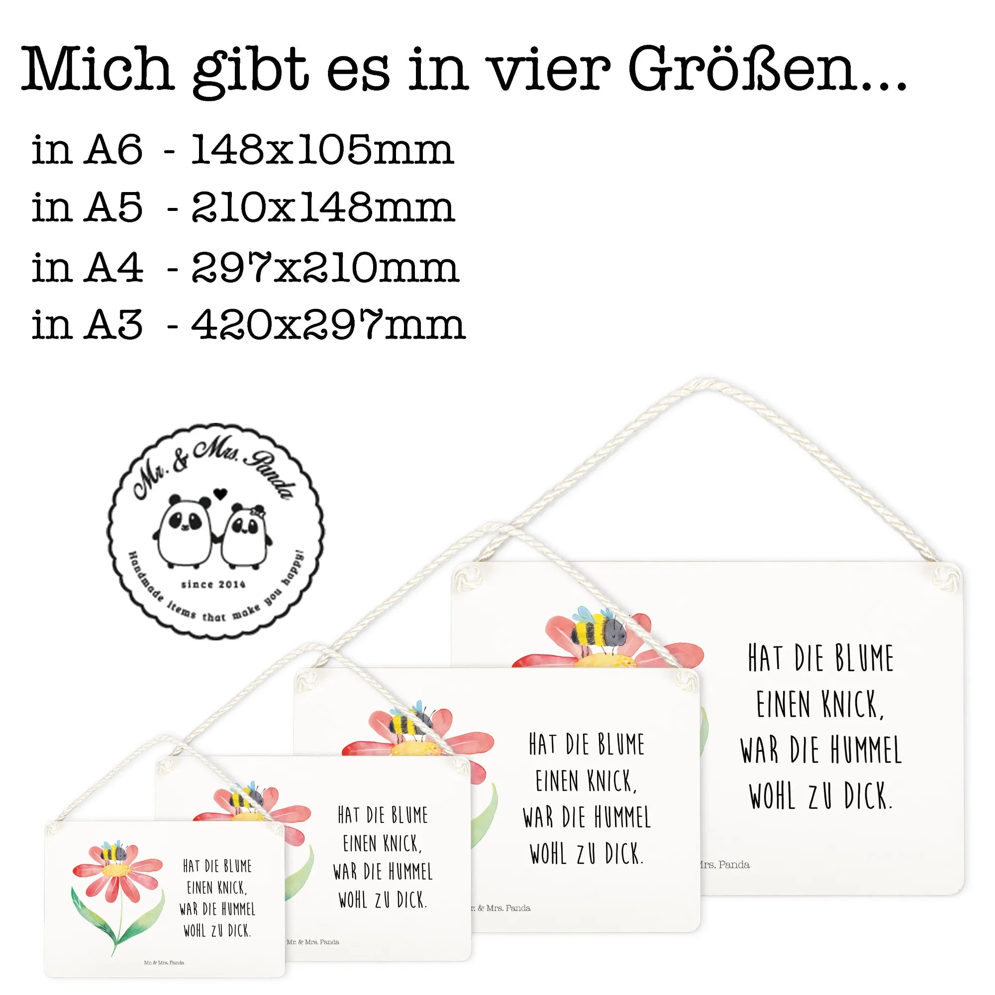 Zeige deine Liebe zur Natur und bringe Freude und Farbe in dein Leben mit diesem einzigartigen Deko Schild. Mit Mr. & Mrs. Panda holen sich Naturliebhaber und kreative Geister ein Stück Glück nach Hause, das das Herz berührt und die Wände zum Lächeln bringt! Lass dich von Hummel Blume verzaubern und verwandle dein Zuhause in eine Wohlfühloase.