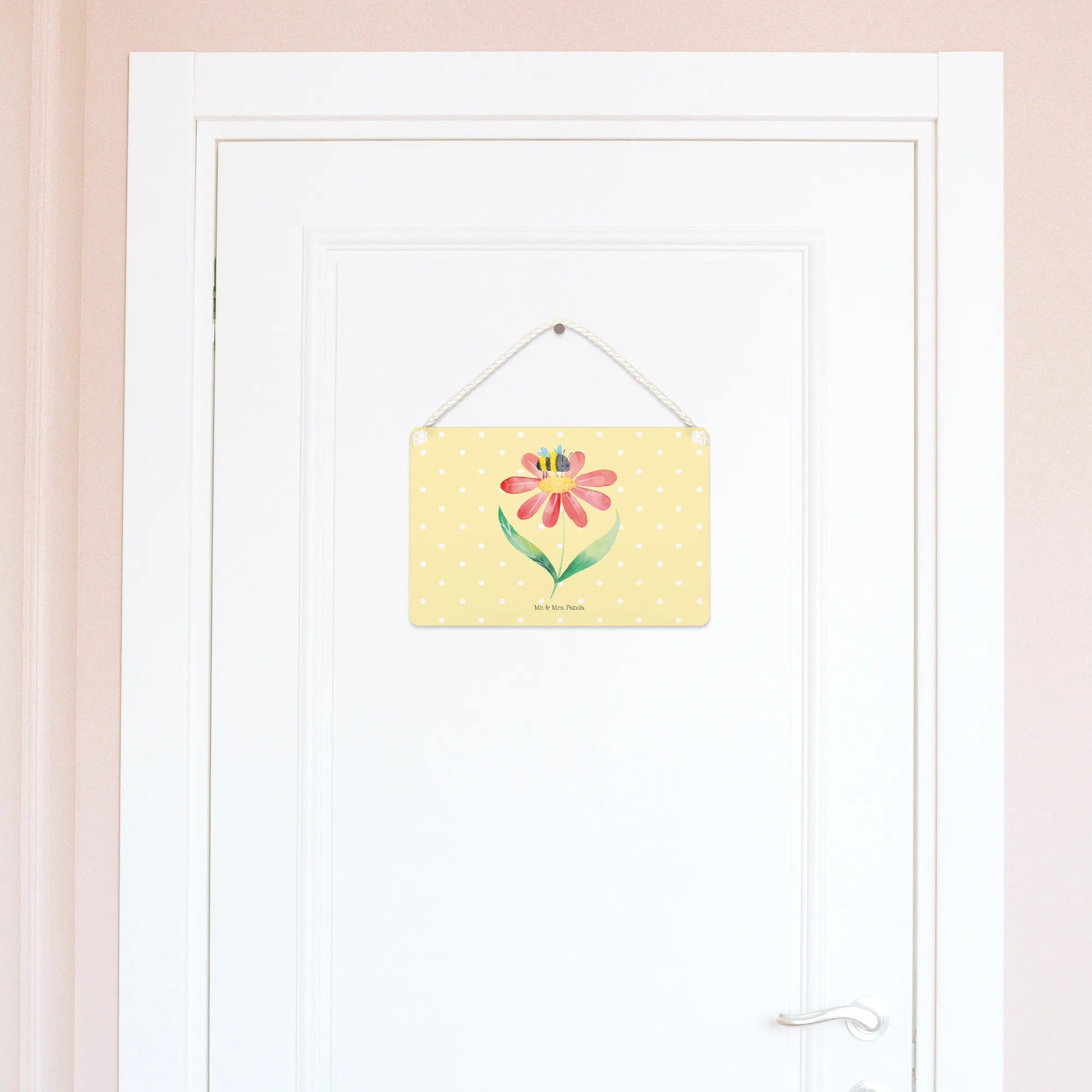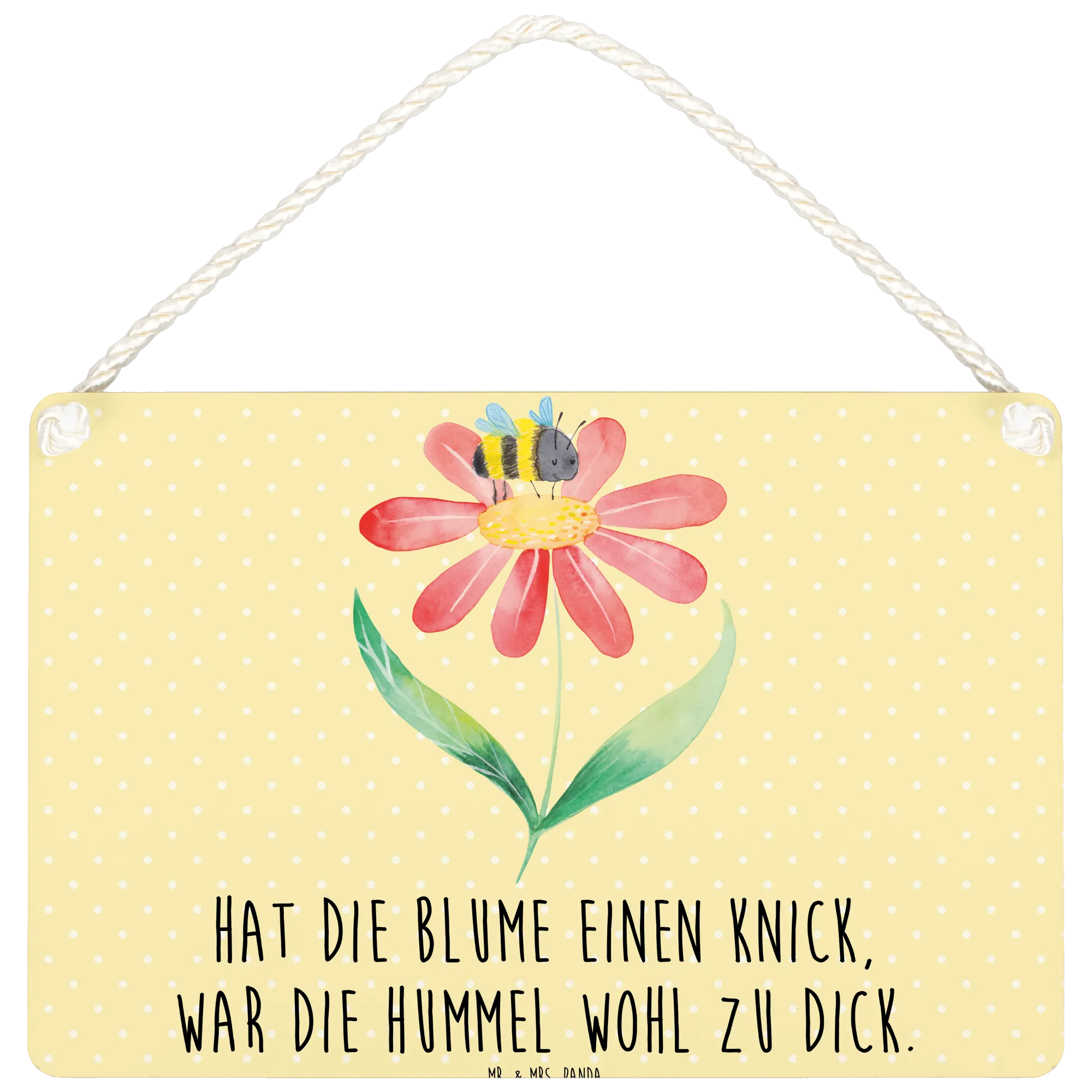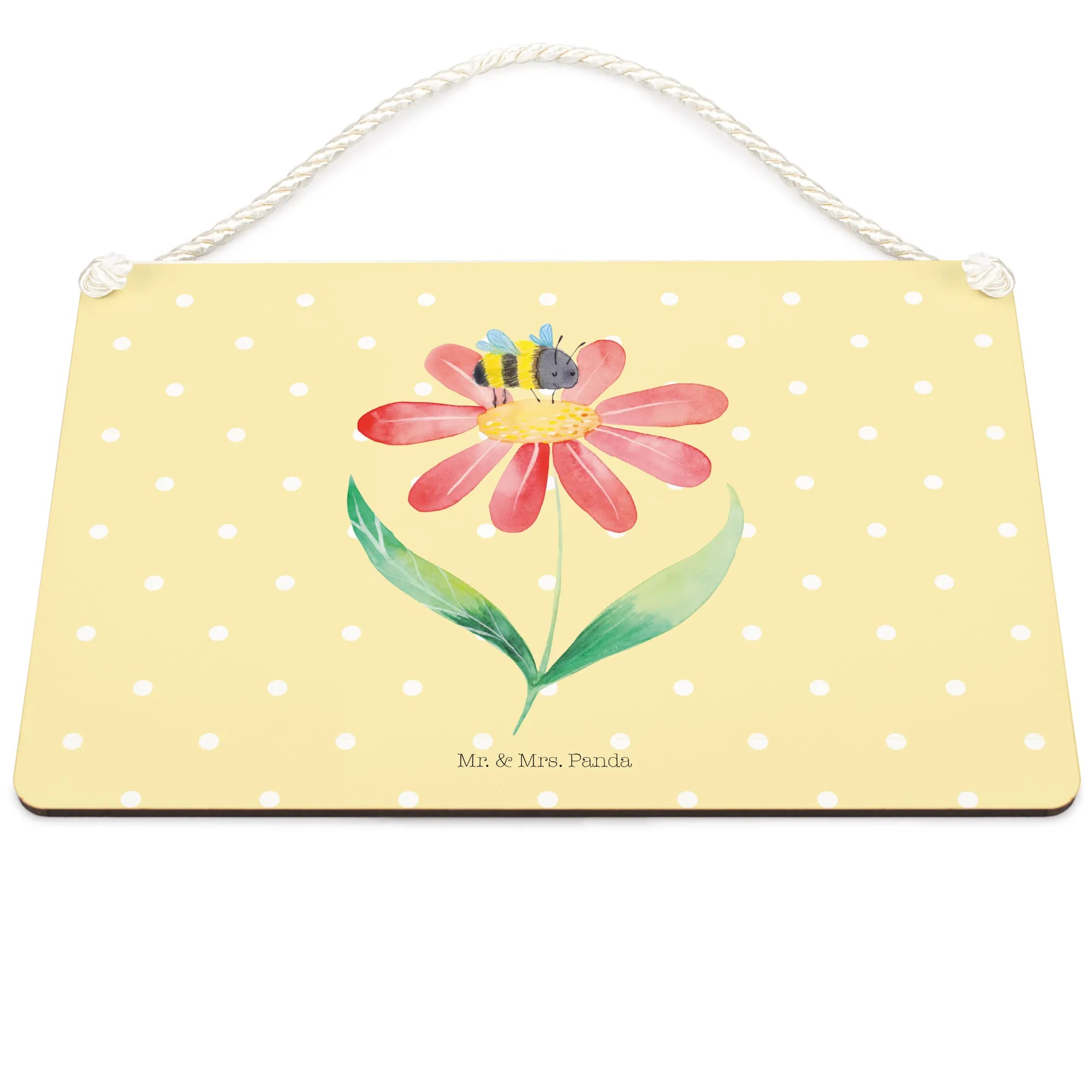Ein wunderschönes und edles Deko Schild von Mr. & Mrs. Panda, das dein Zuhause mit Freude und Farben bereichern wird. Besonders die hübsche Hummel auf einer Blüte wird dich begeistern! Dieses Deko Schild ist nicht nur eine herrliche Wanddeko, sondern auch ein Blickfang an jeder Tür.