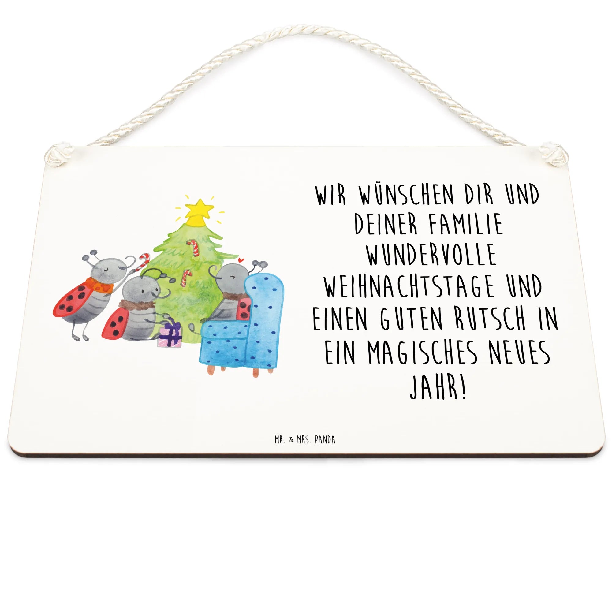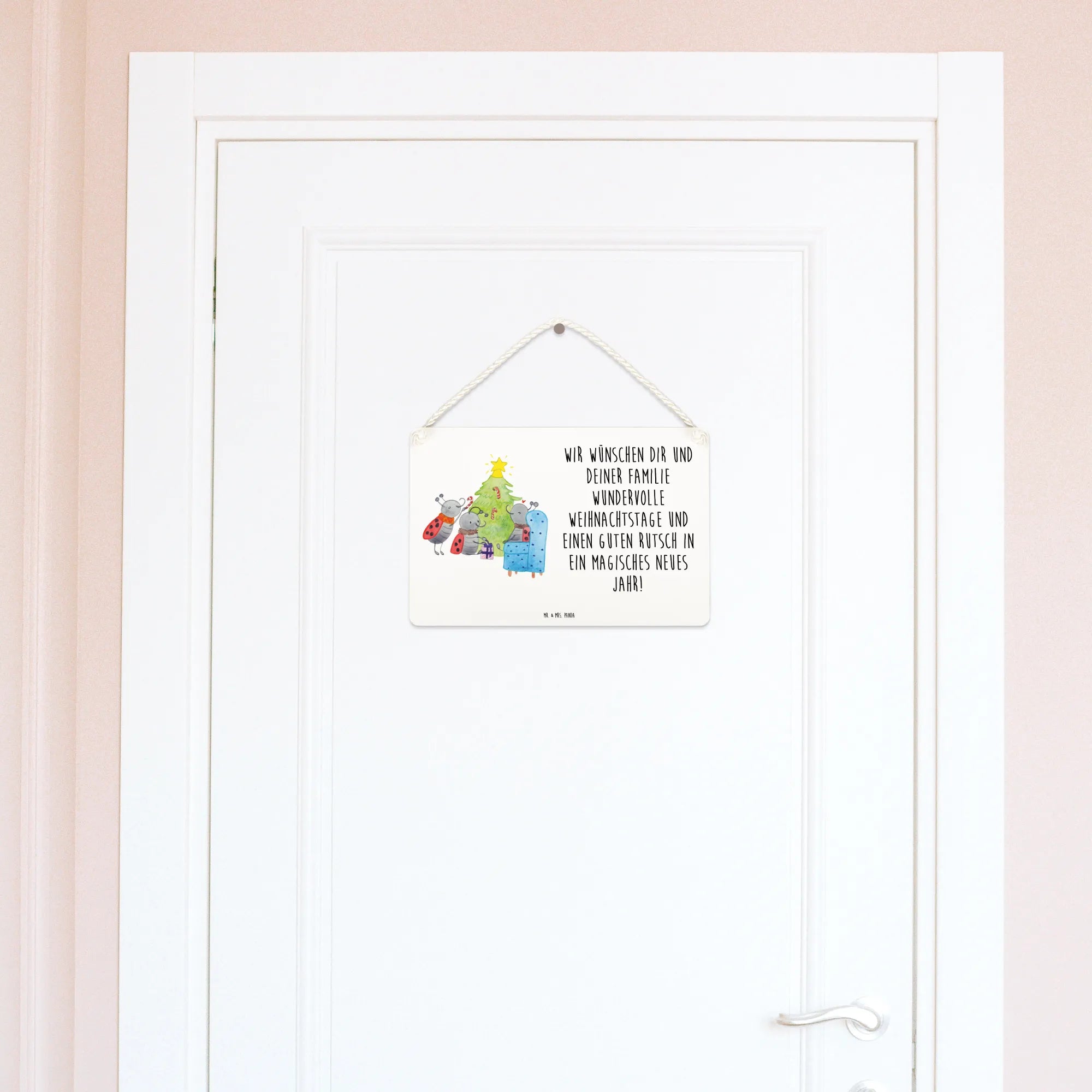 Mit den drei fröhlichen Marienkäfern, die um einen festlich geschmückten Weihnachtsbaum tummeln, bringt das Schild sofort eine weihnachtliche Stimmung in dein Zuhause. Die Marienkäfer sind dabei, Geschenke auszupacken, den Baum zu dekorieren und sich zusammen in einem gemütlichen Ohrensessel zu entspannen. Es ist, als könnte man den Duft von frisch gebackenem Plätzchen und Tannennadeln förmlich riechen!