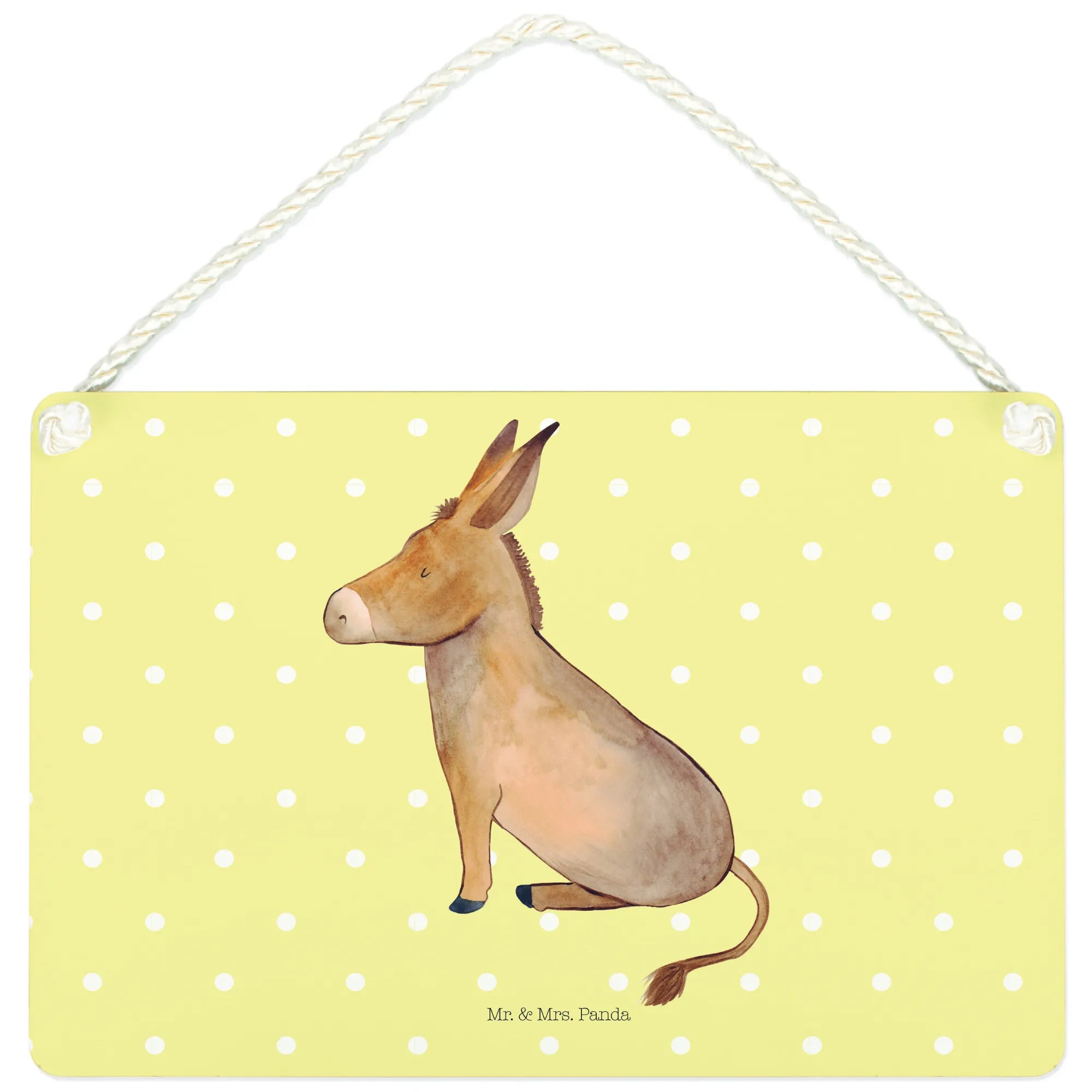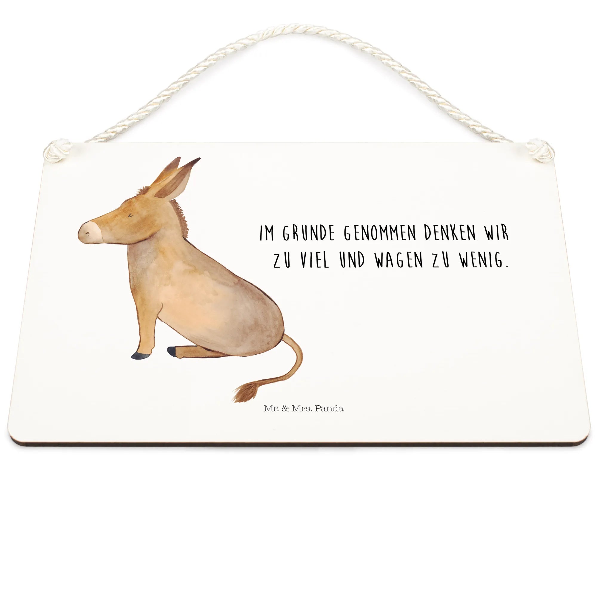 Crafted with meticulous attention to detail, this decorative sign showcases a hand-drawn donkey, characterized by its soft brown-beige hues, lovable large ears, and those gentle, inviting eyes. The donkey, which is portrayed in a cozy sitting position, exudes a sense of serenity that reminds us to appreciate the little things in life. The detailed illustration, complete with shading and texture, brings this delightful creature to life, creating a warm atmosphere that feels inviting and comforting.