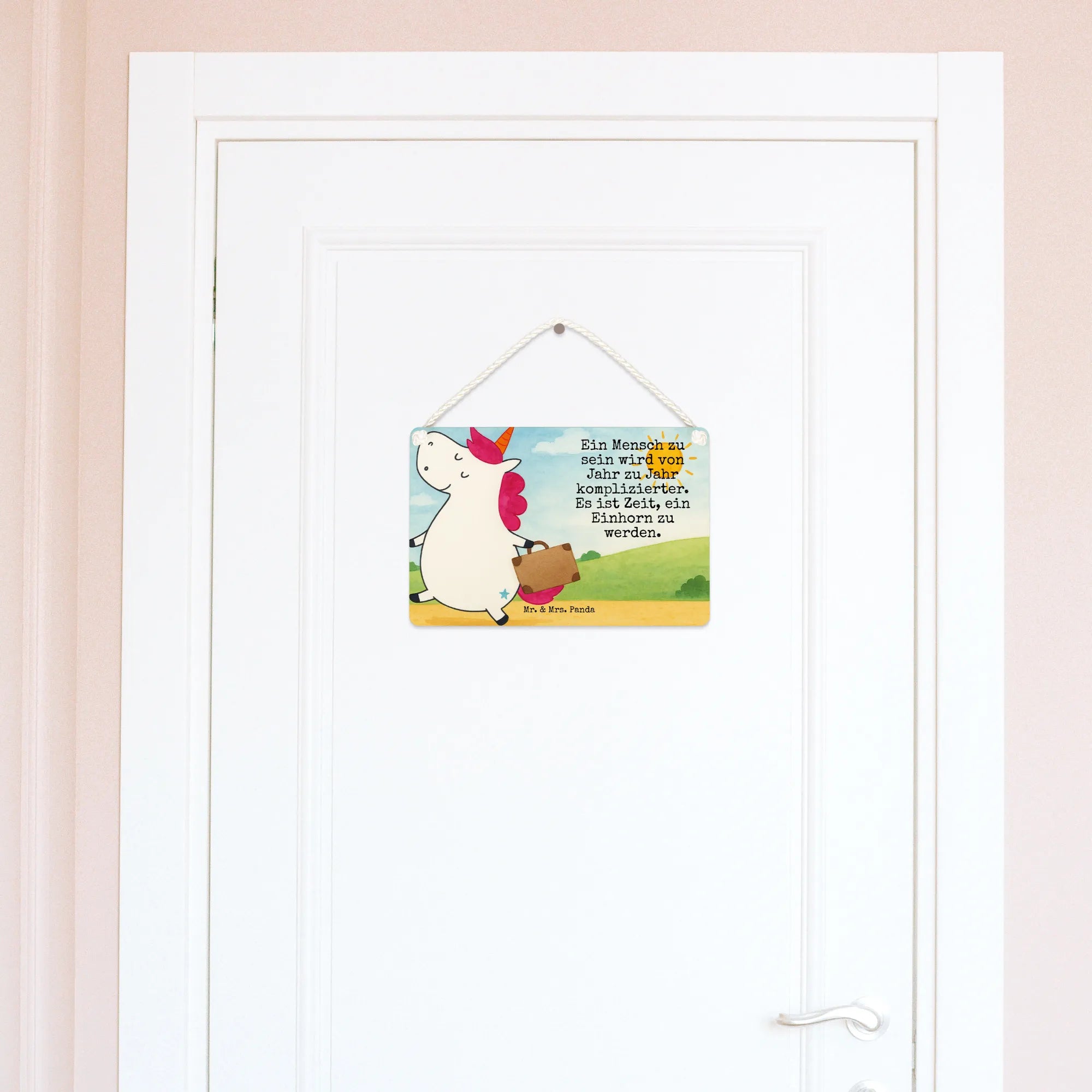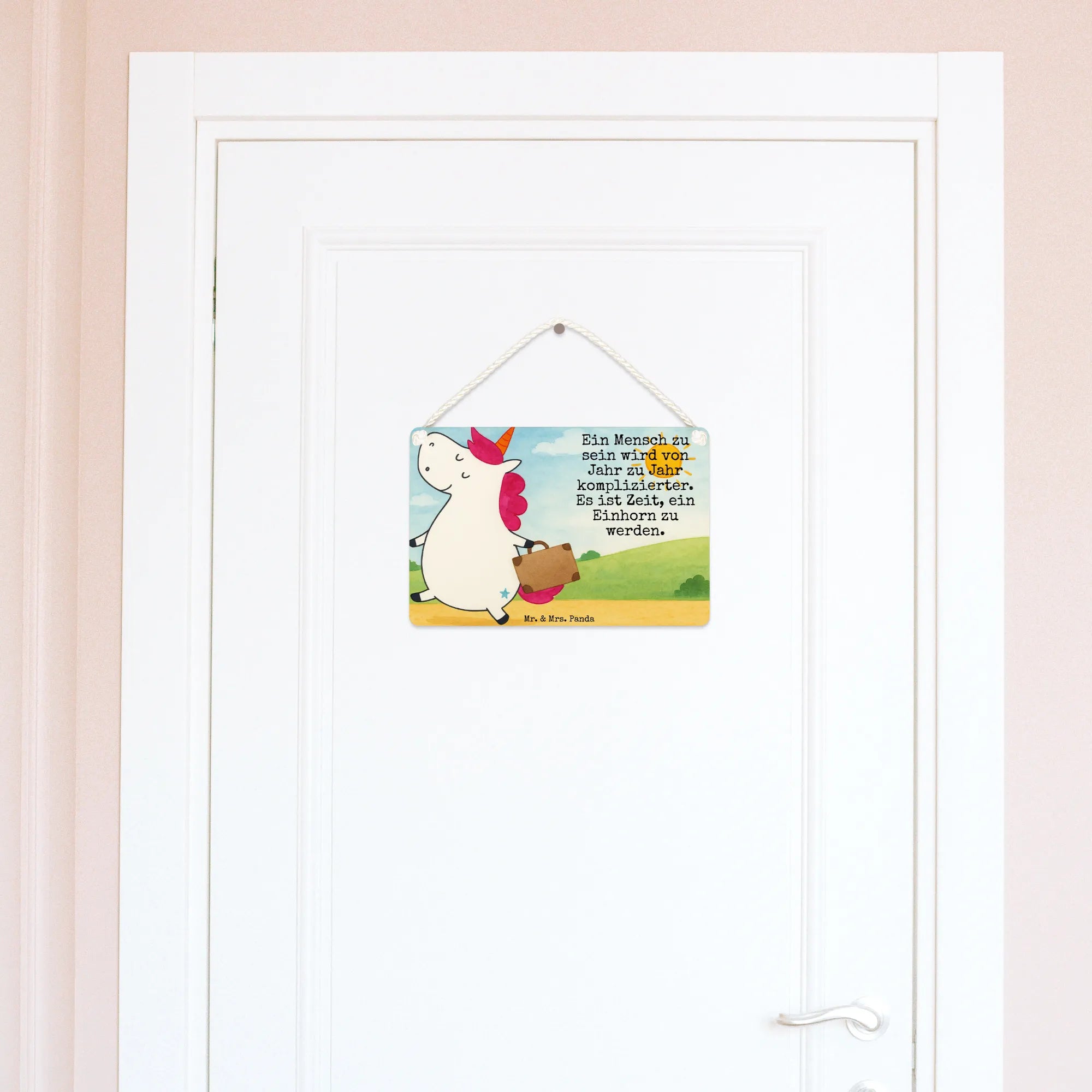Deko Schild Einhorn Koffer Design - DIN A6 - mit Spruch