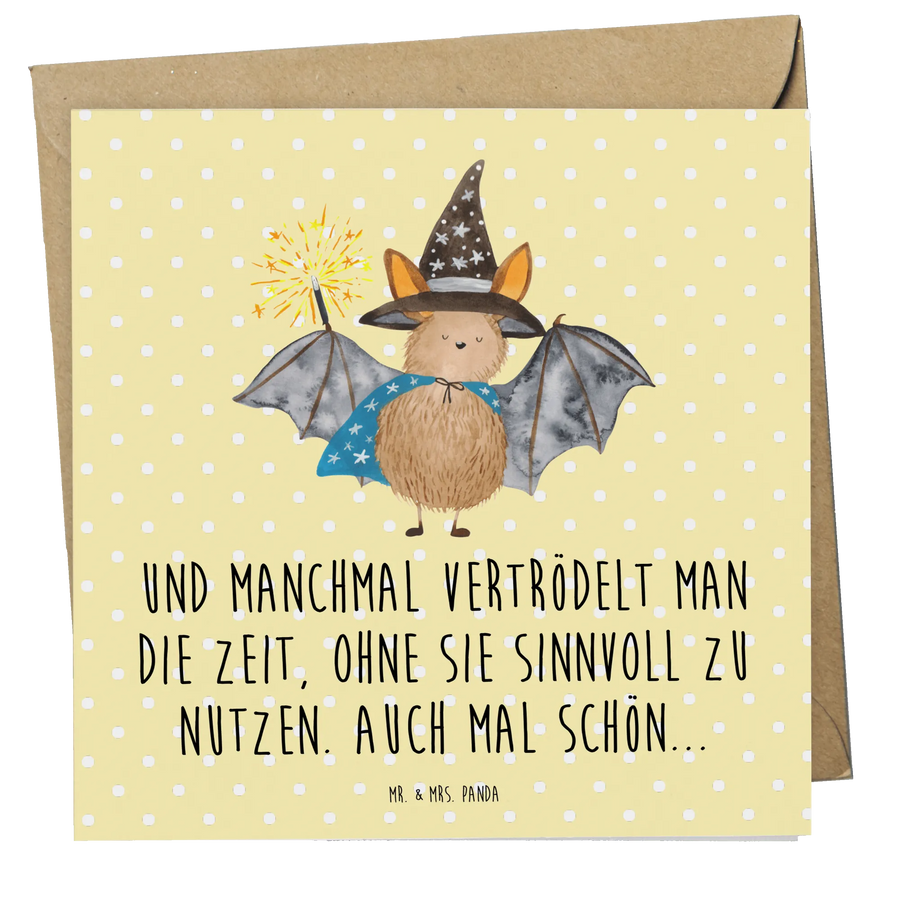 Deluxe Card bat wizard - with a saying - Yellow Pastel