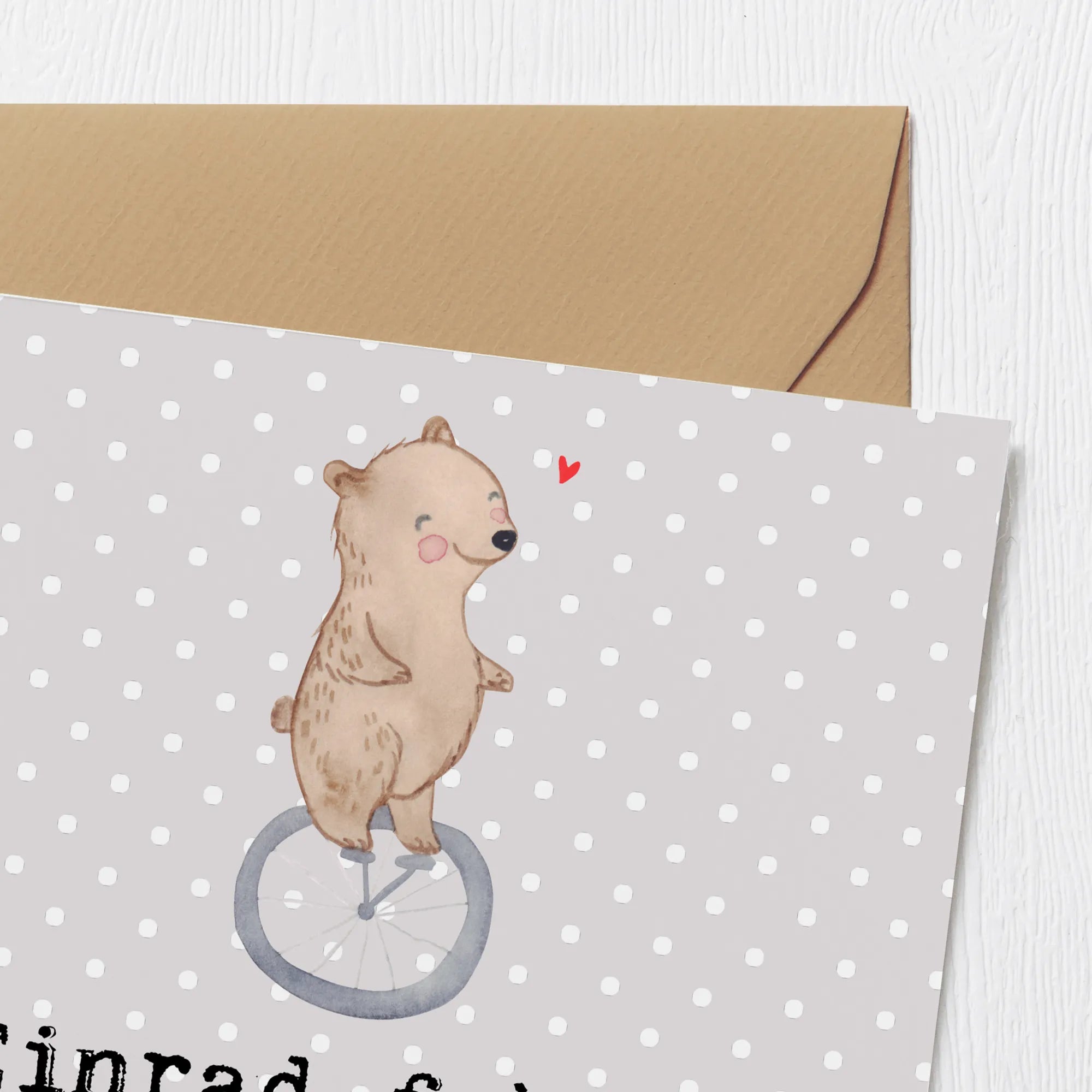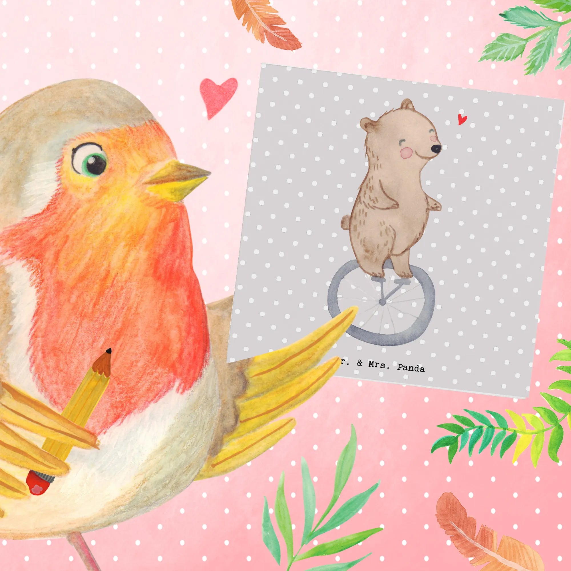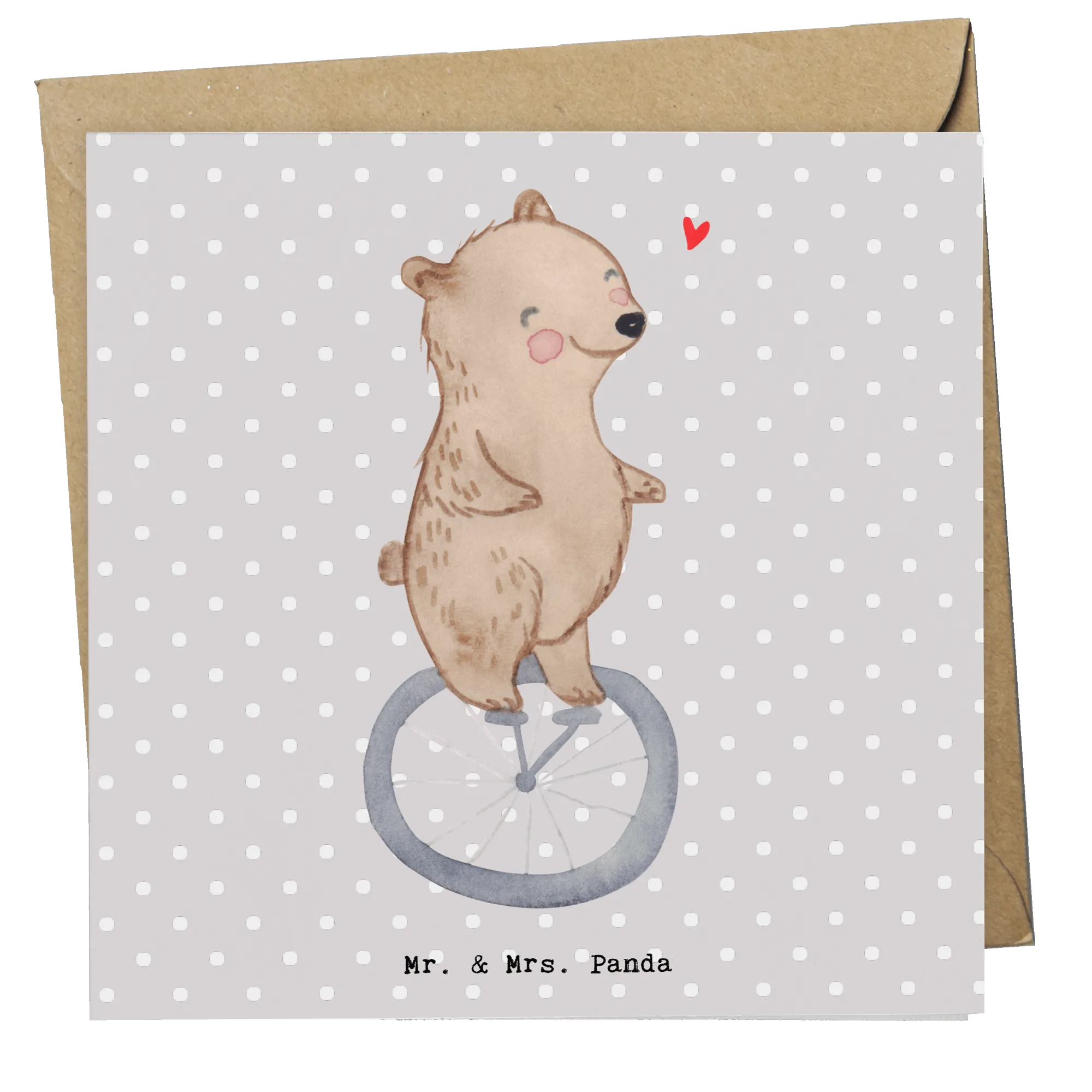 Deluxe Card bear ride a unicycle - with a saying - Grey Pastel