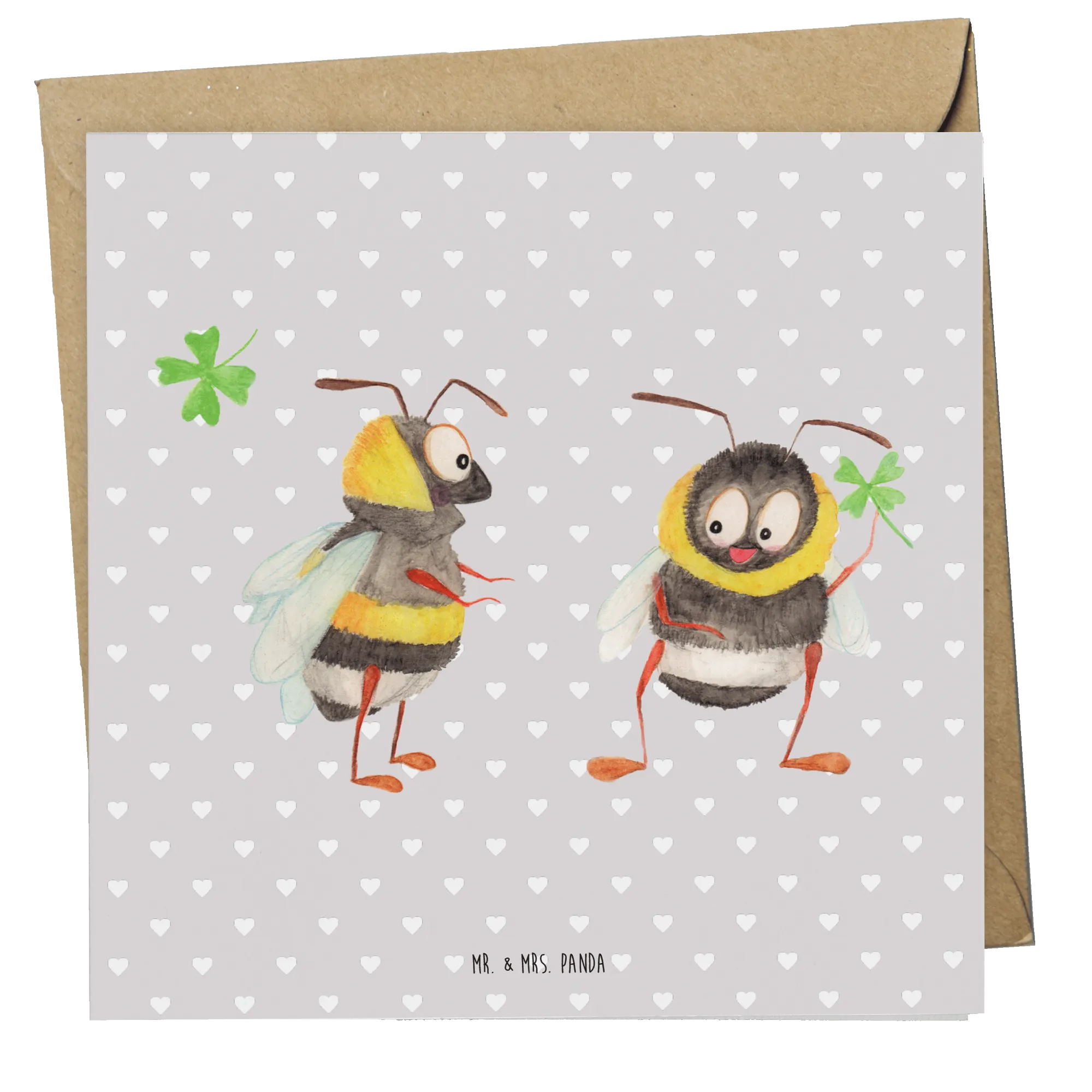 Deluxe Card bees Pair - with a saying - Grey Pastel