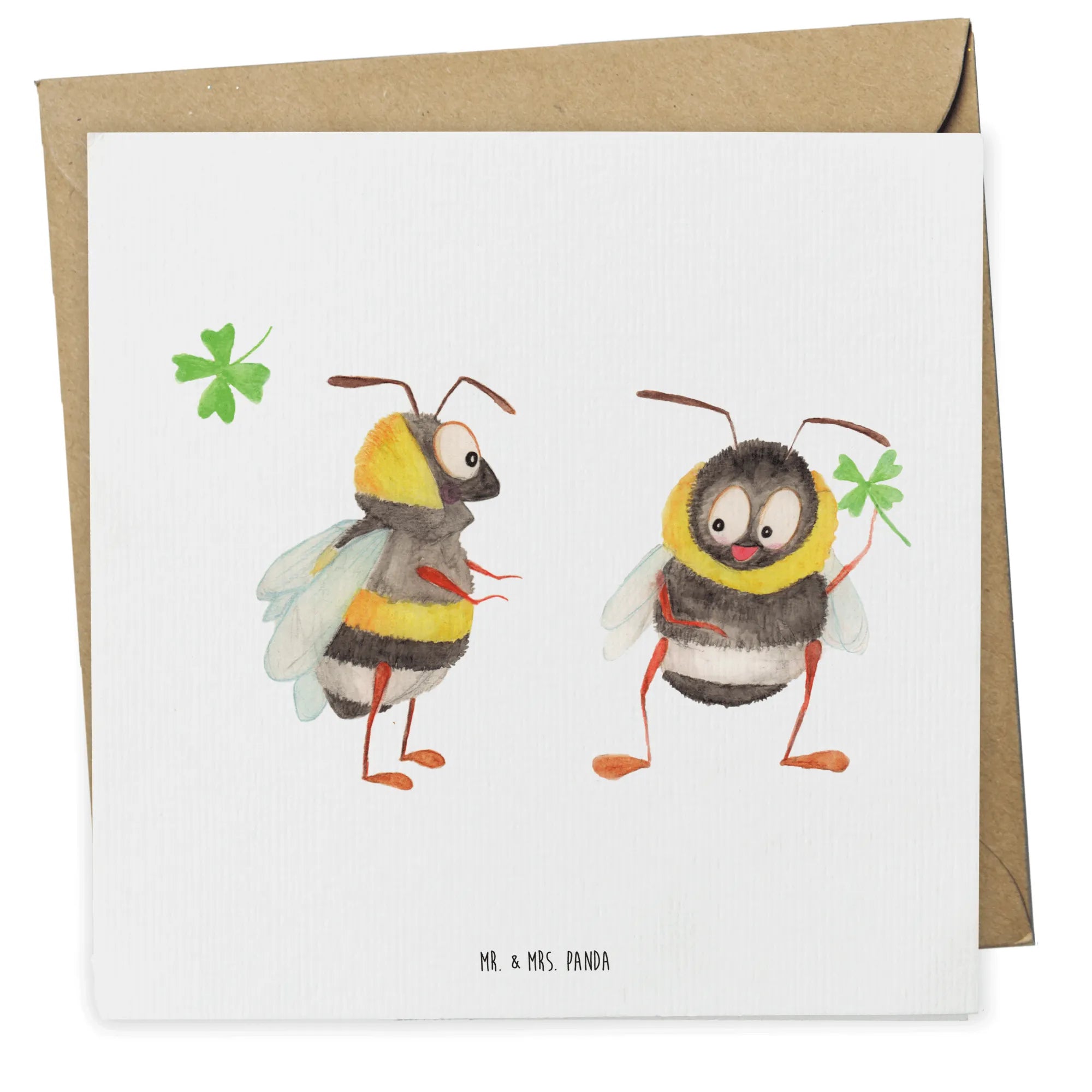The front of the card showcases an enchanting illustration of two adorable, anthropomorphic bees. One bee joyfully holding a four-leaf clover exudes happiness, while the other bee showcases a warm and inviting expression. Designed with lively colors, these bees embody the essence of love and togetherness, making this card a token of love that your partner or friend will cherish forever.
