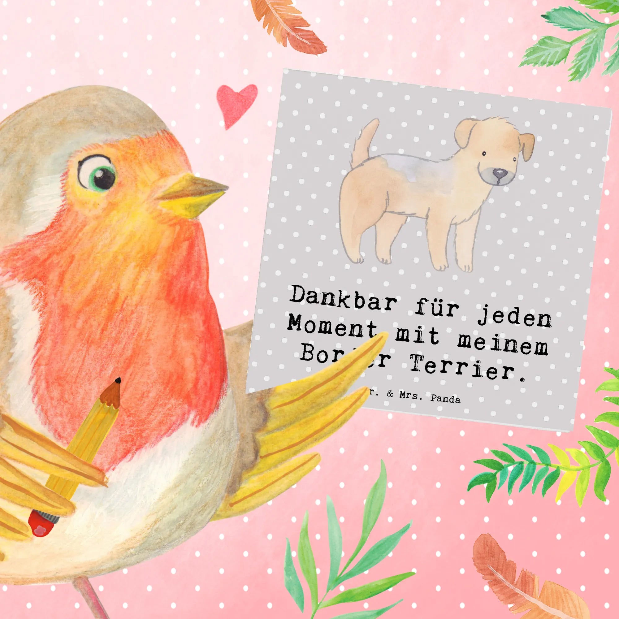 Capturing the spirit of companionship, our delightful Border Terrier stands ready to inspire love and joy in the hearts of all. With his textured, light brown coat and bright, eager eyes, he radiates warmth that fills our days with happiness. The slogan 'Dankbar für jeden Moment mit meinem Border Terrier' perfectly sums up how every paw-sitive moment contributes to a life filled with joy. The way he playfully interacts with the world reminds us to be present and cherish time spent together. Be it a soft nuzzle or a spirited game of fetch, these moments are what make life truly beautiful. Let this gorgeous Border Terrier remind you of the magic of friendship, where love transcends words. Together, let’s delight in every adventure, laugh through every mishap, and be thankful for the love we share. This charming motif is not just an image; it is a celebration of every shared giggle and every warm embrace.