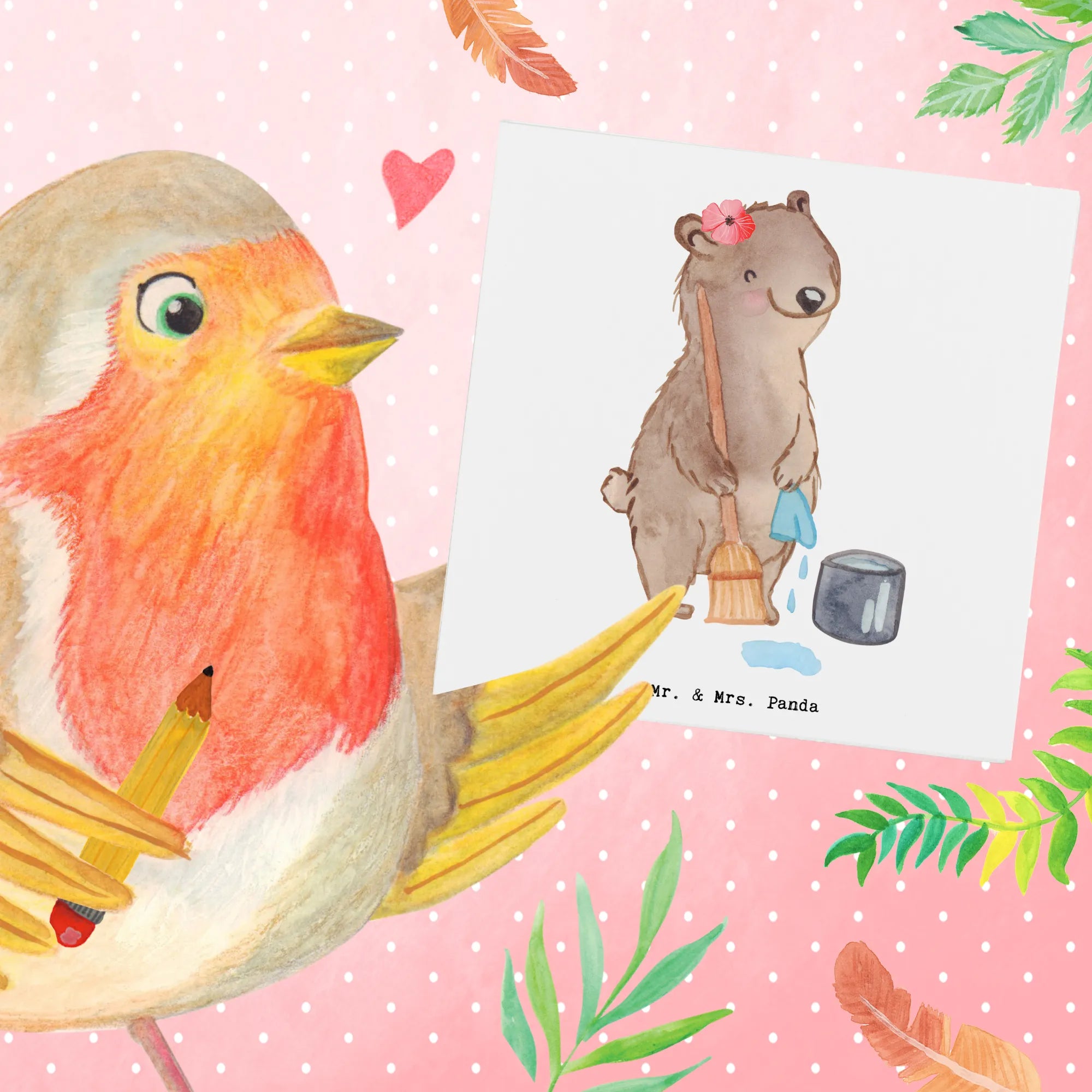 Deluxe Card Cleaning Staff Heart - with a saying - White