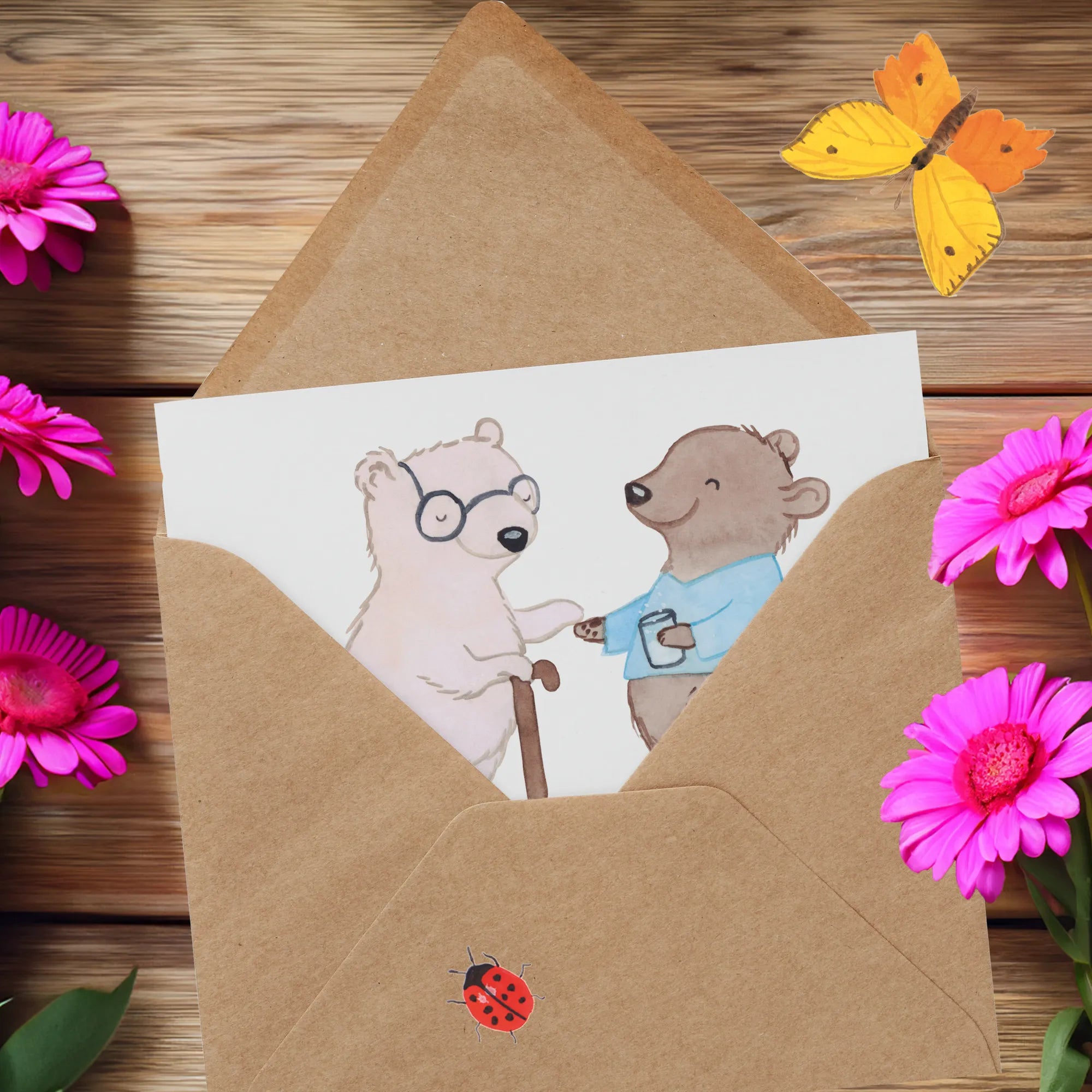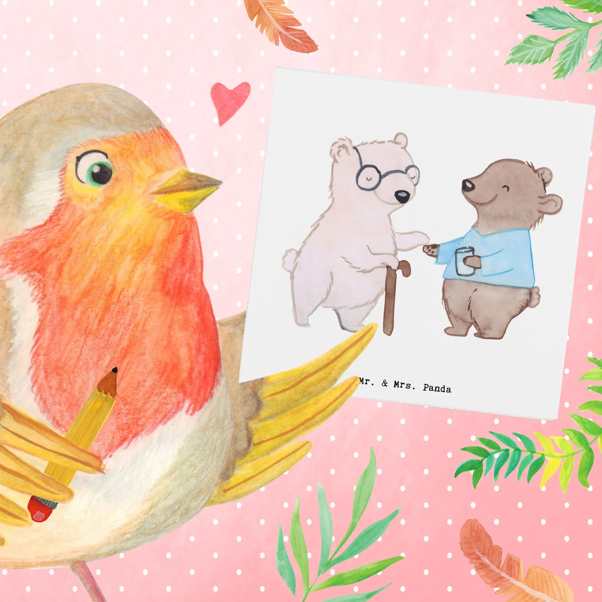 Are you on the lookout for that perfect card to express your heartfelt thanks to an amazing caregiver for the elderly? Look no further! Our Deluxe Card from Mr. & Mrs. Panda, specially designed with a charming caregiver motif, is here to earn a spot in your gift collection. This stunning card is not just any card; it’s a beautiful expression of appreciation for those who selflessly care for our elders. The exquisite design features a delightful bear holding a tablet while reaching out to an older bear with a cane, capturing the essence of compassion and kindness that caregivers exemplify every day.