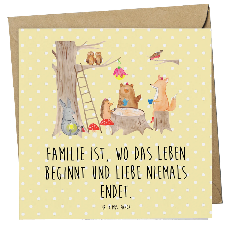 Deluxe Card forest animals picnic - with a saying - Yellow Pastel