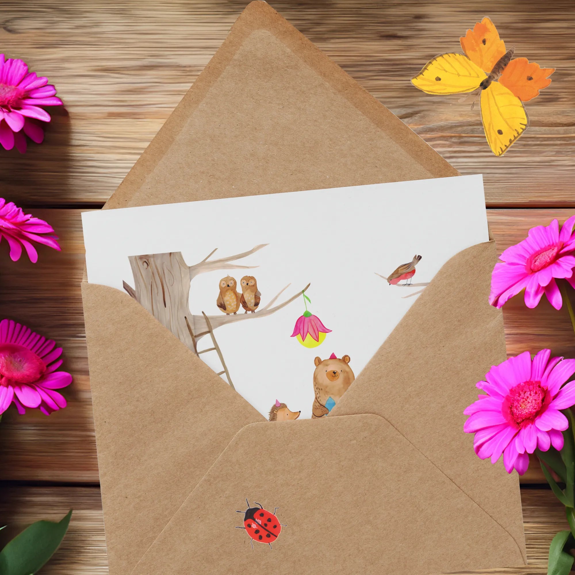 Ob du die Karte als Einladung zu einem Picknick mit Freunden oder als Glückwunschkarte für einen besonderen Geburtstag nutzen möchtest – sie ist vielseitig einsetzbar. Ihre matte Innenseite bietet genügend Platz für deine persönlichen Grüße und Wünsche, während die hochglänzend veredelte Vorderseite nicht nur ein echter Hingucker ist, sondern auch die bunte, fröhliche Stimmung, die wir mit unseren kleinen Freunden im Wald verbinden, perfekt einfängt. Die Karte bringt nicht nur Freude, sondern auch eine Portion gute Laune und lässt das Herz höherschlagen!