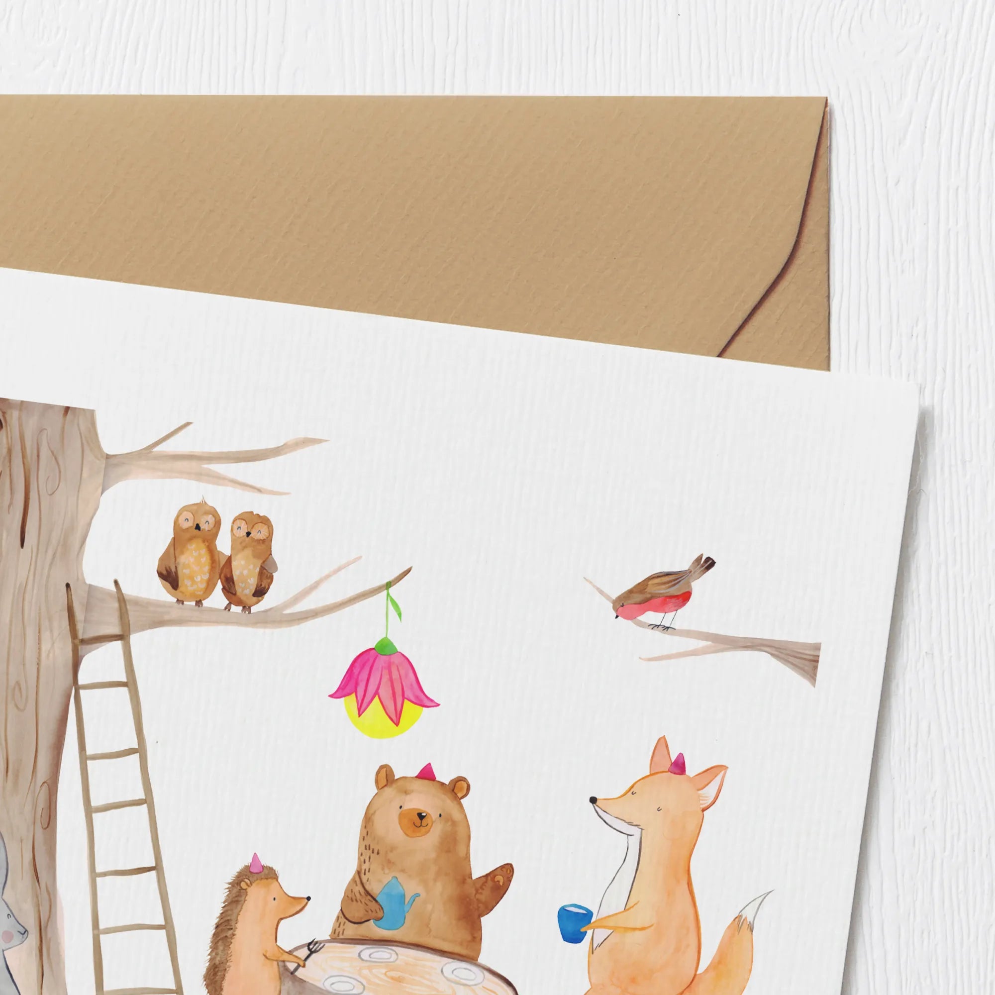 Deluxe Card forest animals picnic Klappkarte, Hochwertige Grußkarte, Hochwertige Klappkarte, Glückwunschkarte, Karte, Einladungskarte, Geburtstagskarte, Hochzeitskarte, Grußkarte, Tiermotive, Gute Laune, lustige Sprüche, Tiere, Eichhörnchen, Fuchs, Waldtiere, Wald, Maus, Hase, Igel, Picknick