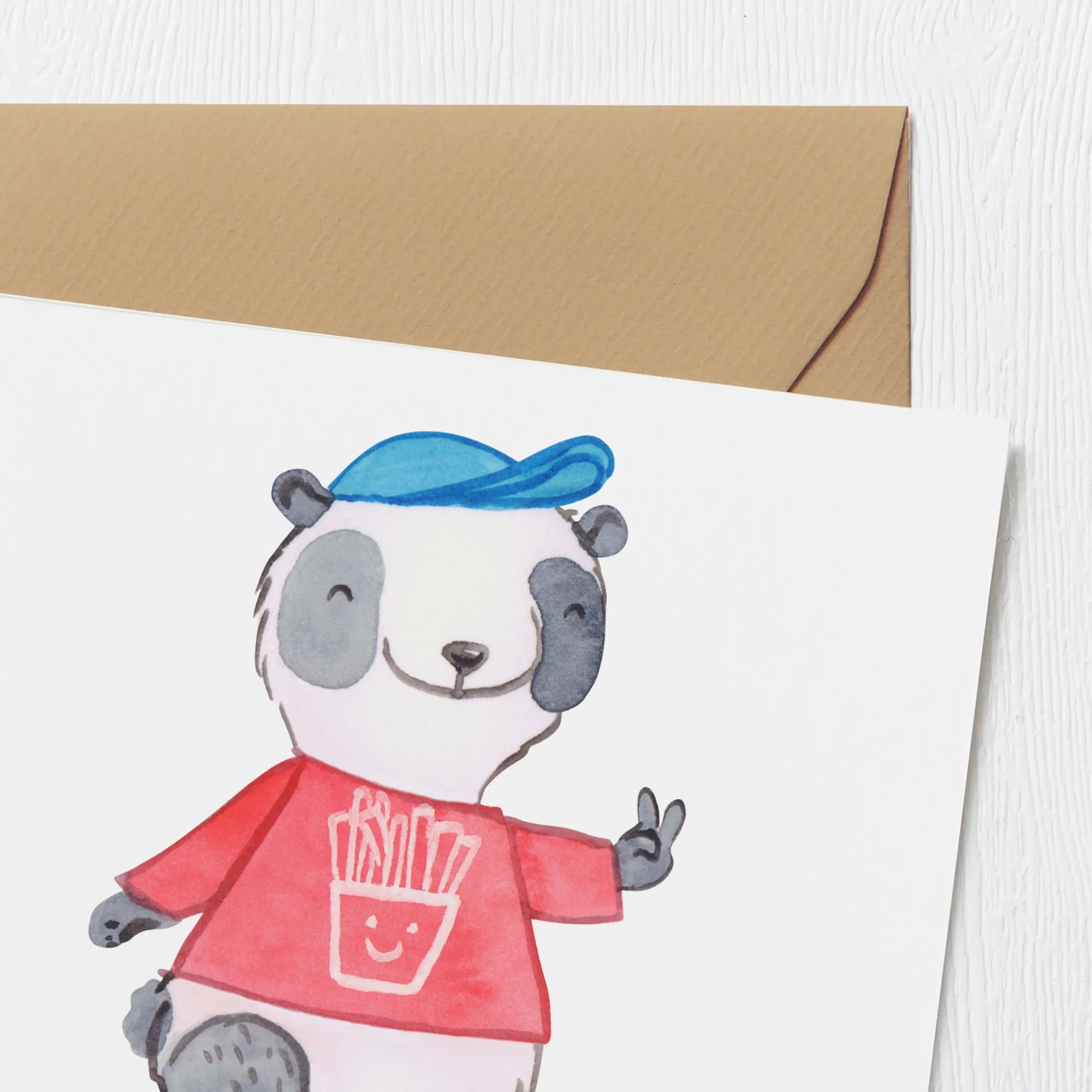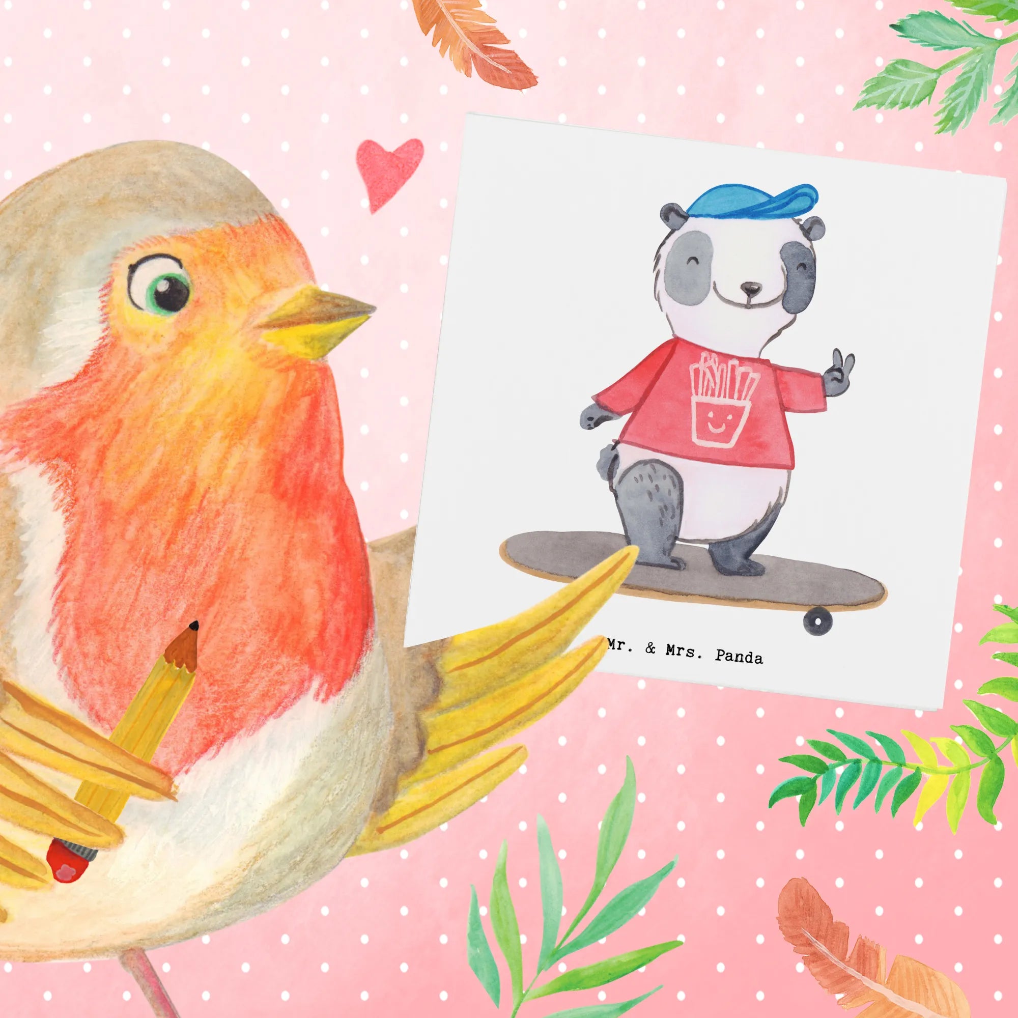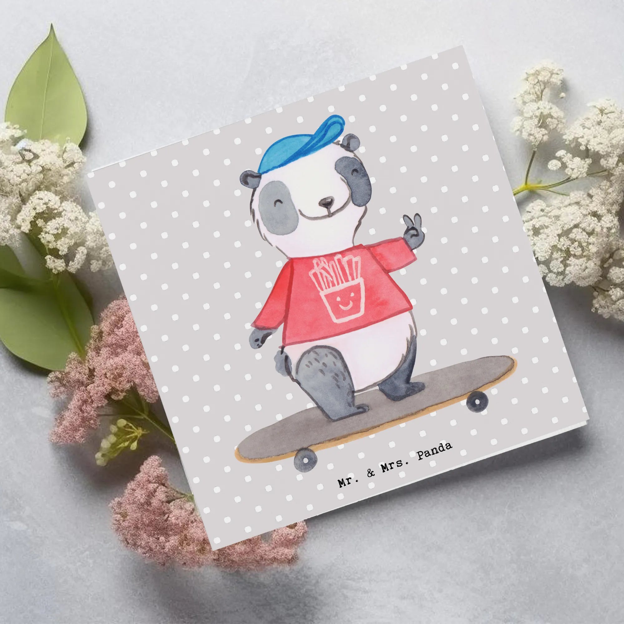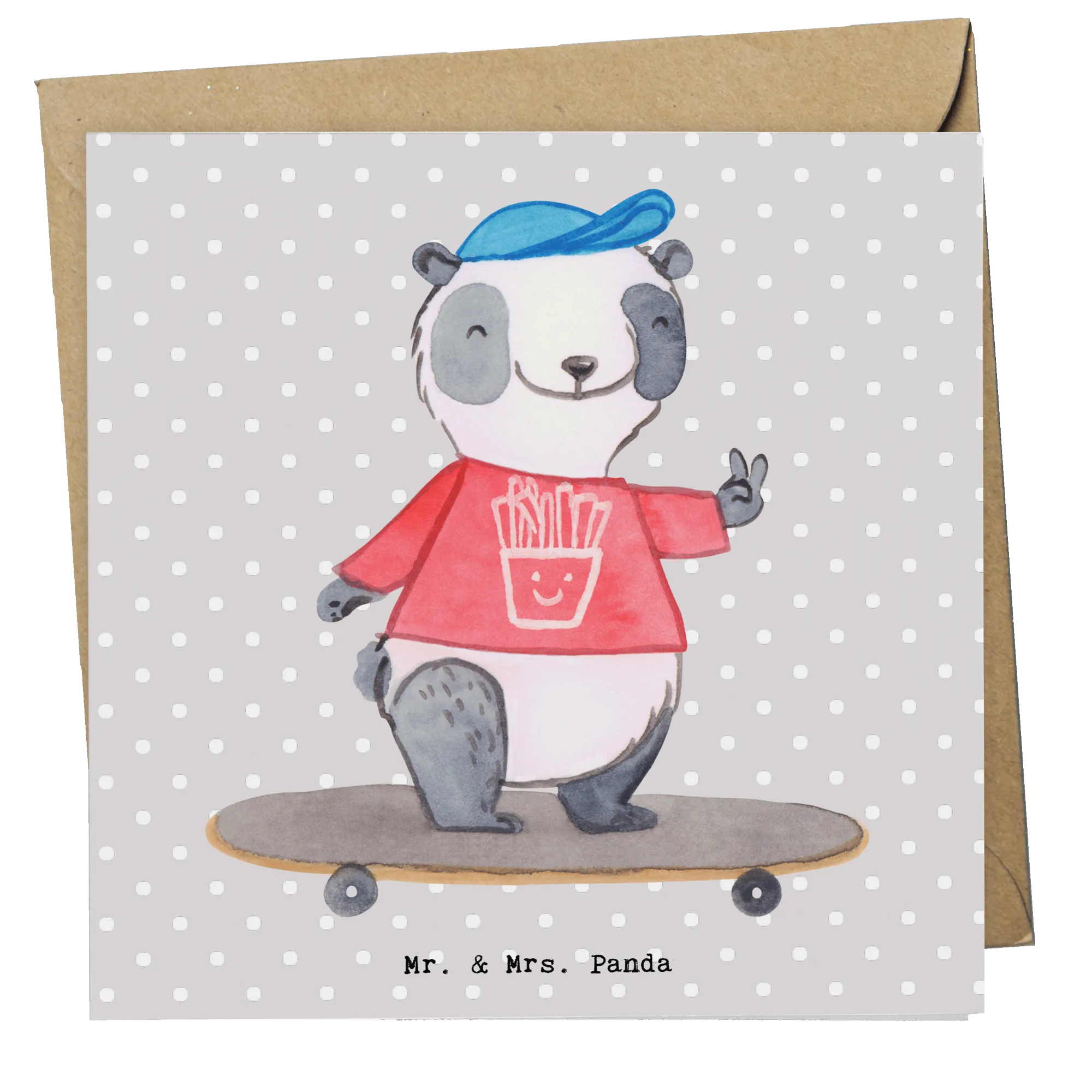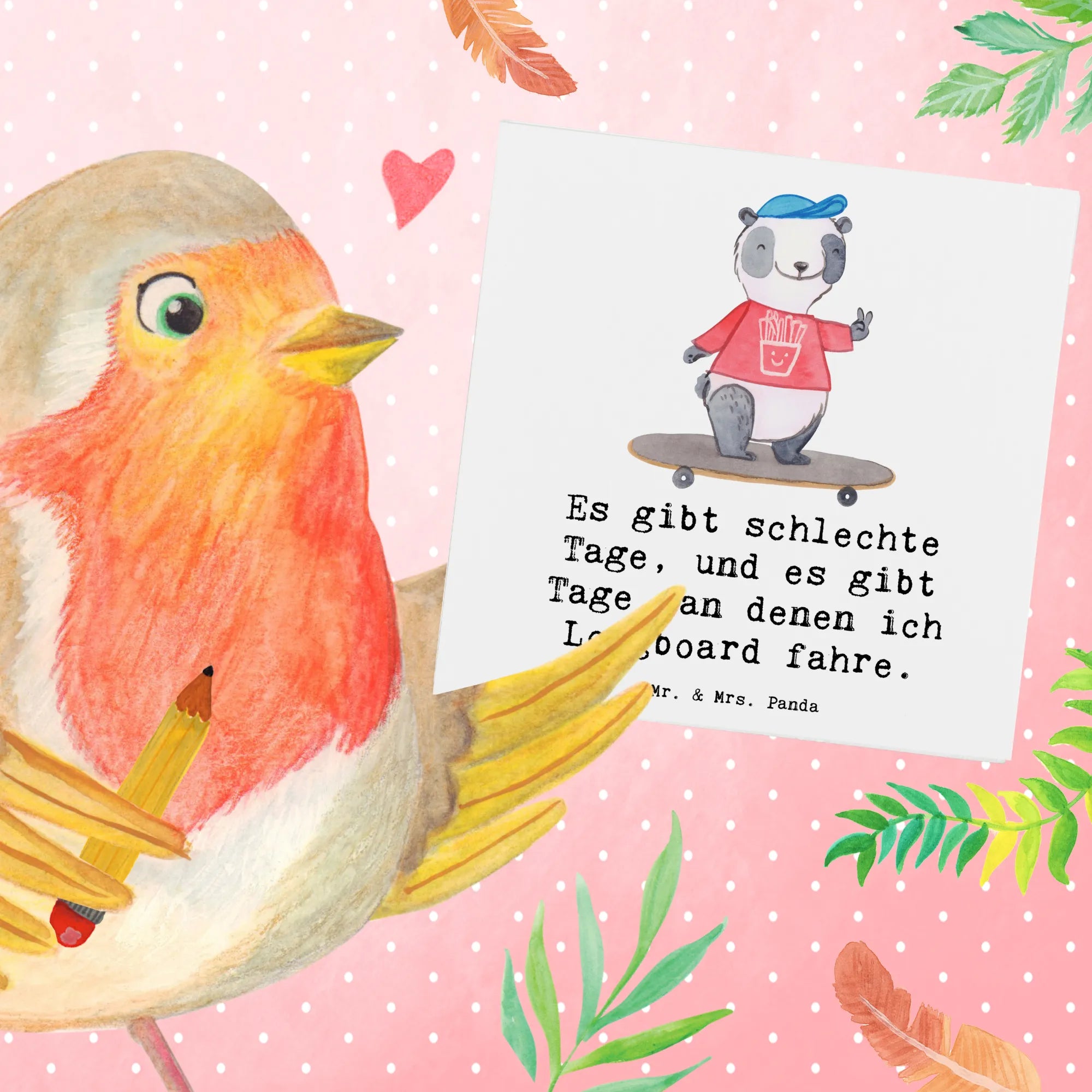 Deluxe Card panda ride a longboard - with a saying - Grey Pastel