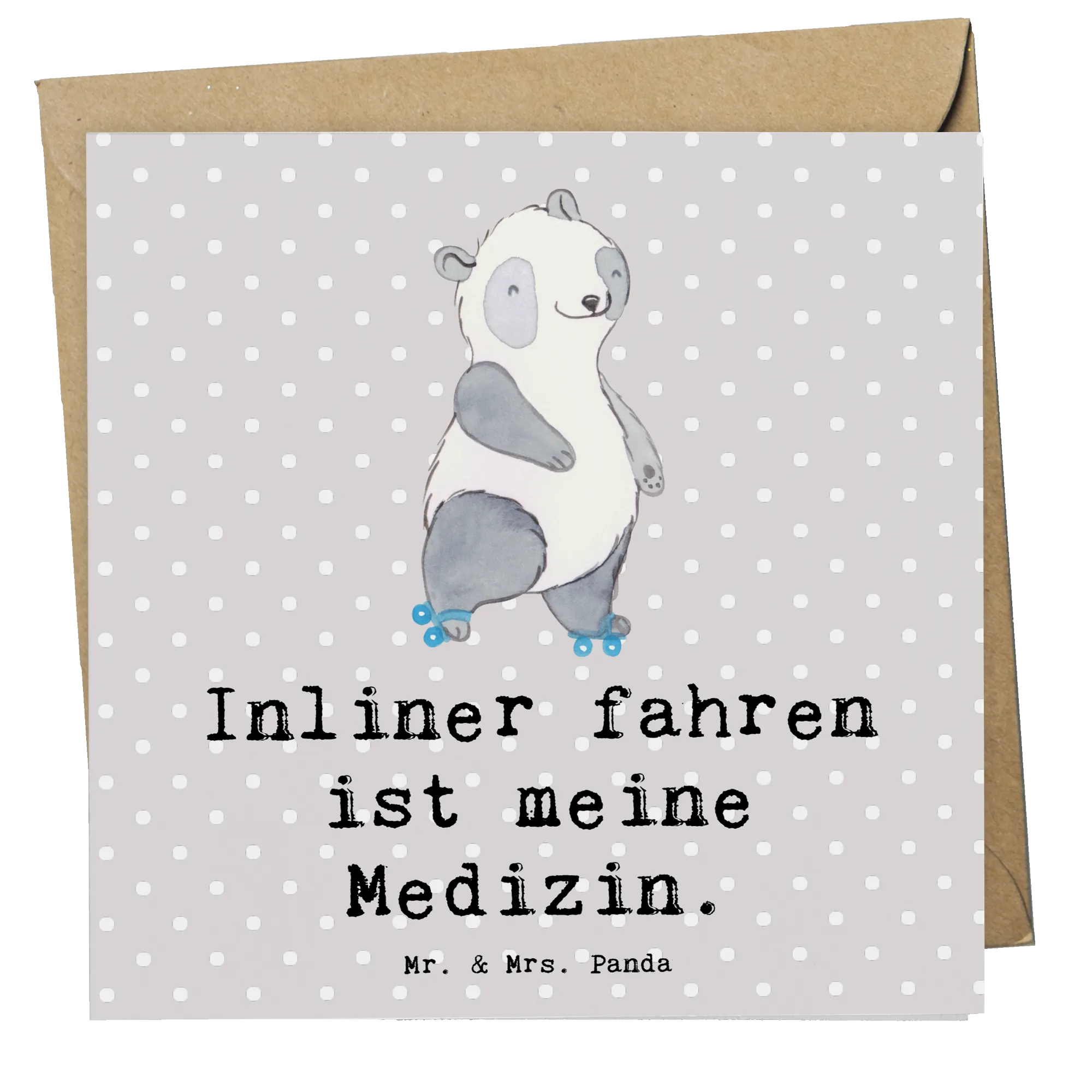 Deluxe Card panda roller blading - with a saying - Grey Pastel