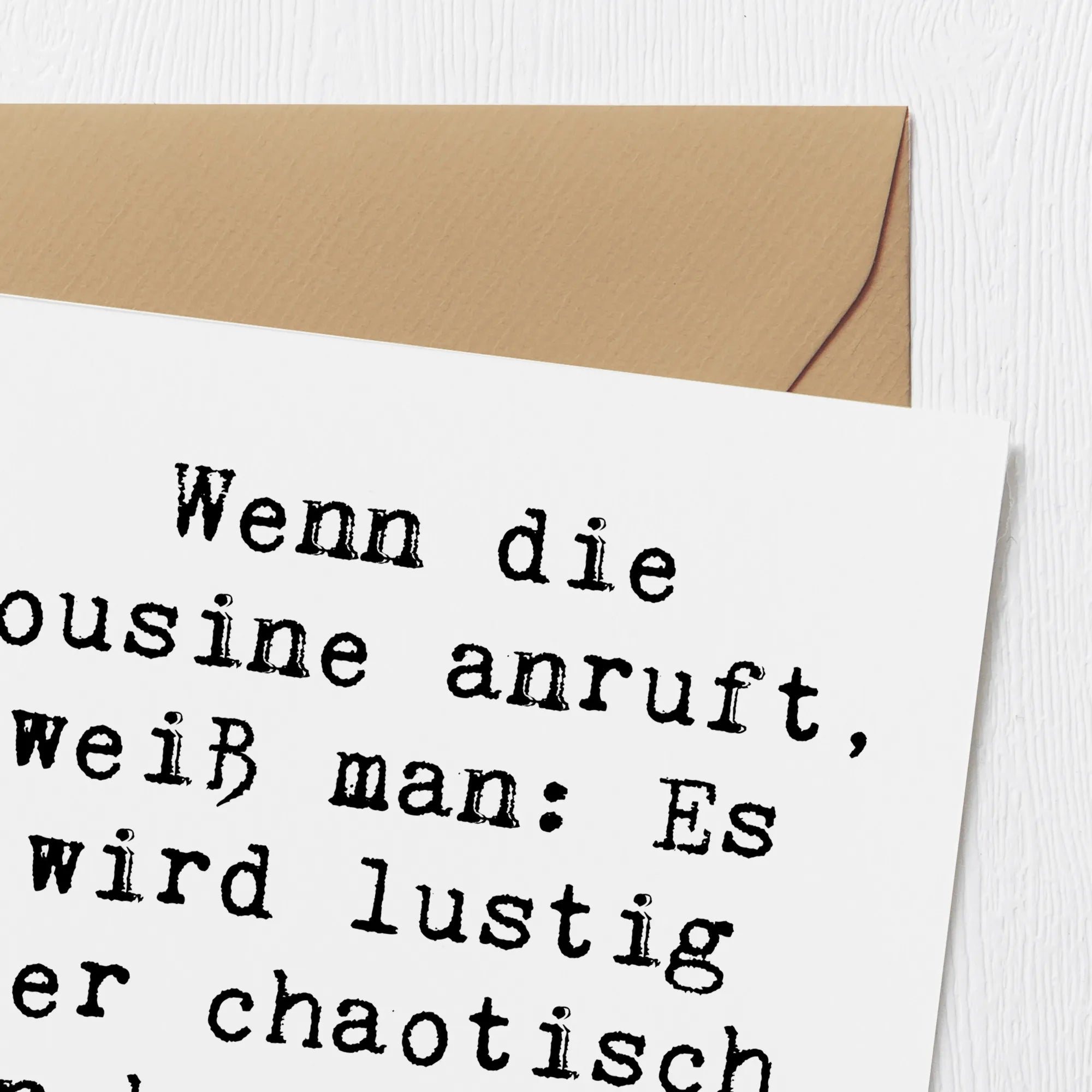 Deluxe Card Saying Wenn die Cousine anruft, weiß man: Es wird lustig oder chaotisch, manchmal beides gleichzeitig! Glückwunschkarte, Hochzeitskarte, Karte, Einladungskarte, Hochwertige Klappkarte, Hochwertige Grußkarte, Klappkarte, Geburtstagskarte, Grußkarte, Familie, Vatertag, Muttertag, Bruder, Schwester, Mama, Papa, Oma, Opa