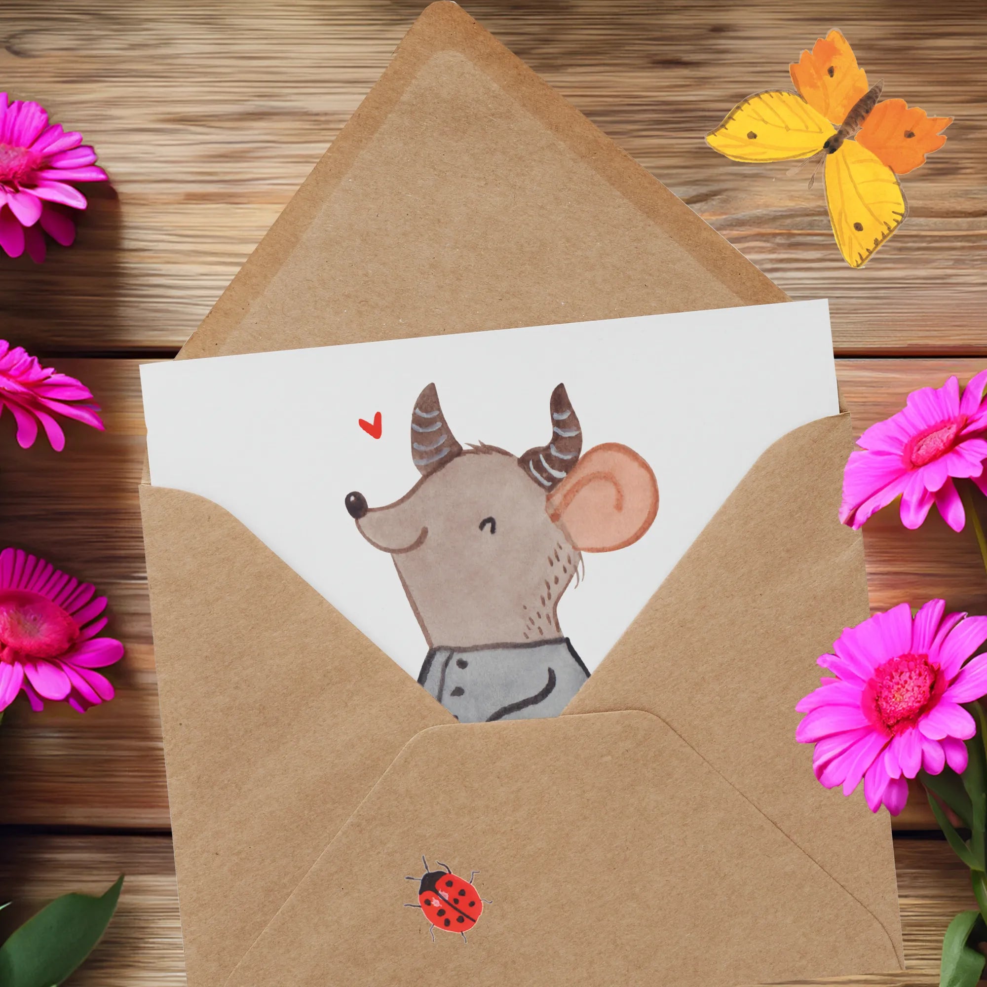 Beautifully crafted by Mr. & Mrs. Panda, this card showcases a charming illustration of a cute, anthropomorphic mouse dressed as a Taurus. With its happy curves and quirky patterned pants, this mouse embodies the dependable, practical, and unforgettable spirit of Taurus, making it an ideal gift for friends and family born under this sign.
