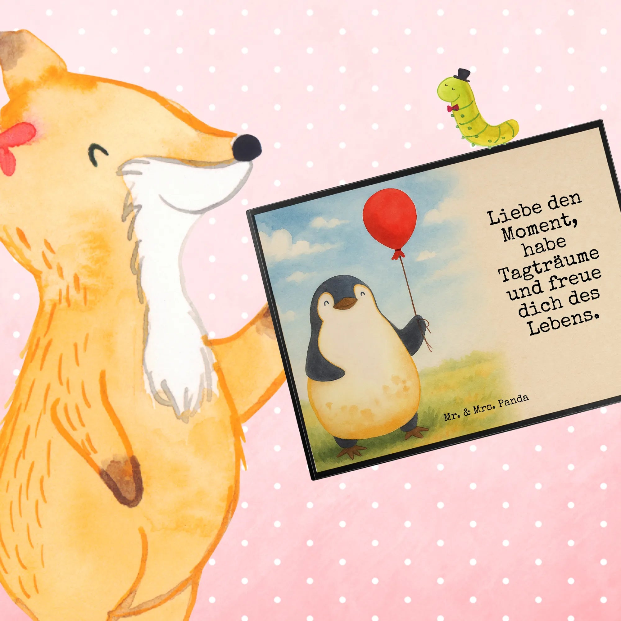 Stell dir vor, du setzt dich an deinen Schreibtisch und das Erste, was dich begrüßt, ist ein kleines, flauschiges Wesen mit einem bunten Luftballon in der Hand. Unsere Mr. & Mrs. Panda Schreibtischunterlage mit dem zauberhaften Pinguin-Luftballon-Motiv verwandelt deinen Arbeitsplatz in einen Ort voller Lebenslust und Inspiration. 🐧🎈