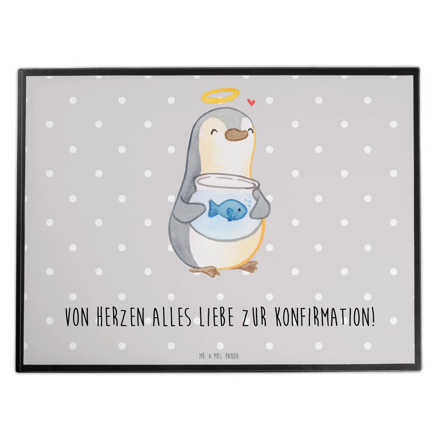 Die Schreibtischmatte von Mr. & Mrs. Panda zeigt einen süßen Pinguin mit einer Schale voller Wasser und einem Fisch, ergänzt durch den liebevollen Spruch „Von Herzen alles Liebe zur Konfirmation!“. Dieses Motiv strahlt Vertrauen, Zuversicht und eine warme, handgezeichnete Ästhetik aus – ideal für Konfirmation, Kommunion und Jugendweihe.