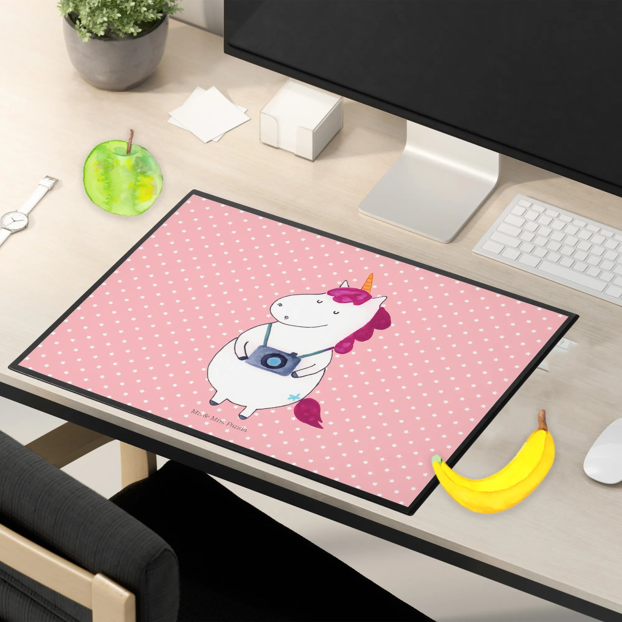 Desk pad unicorn photographer - with saying - Pastel Red