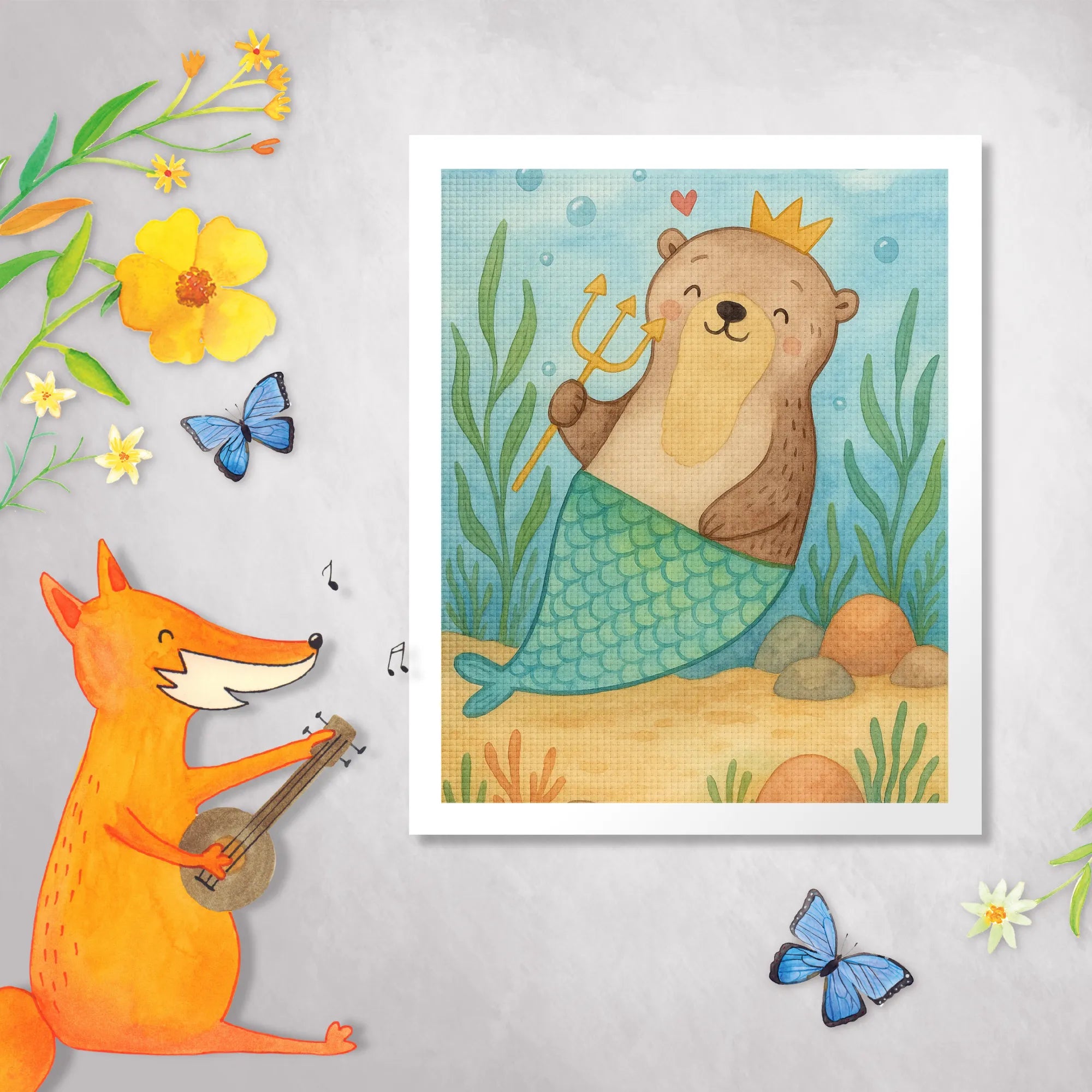 Step into the vibrant world of our Aquarius design, where fantasy blends with playful charm! Our featured otter, with its golden crown and gentle smile, is a delightful nod to the intuitive and free-spirited nature of this zodiac sign. The magical transition to a splendid mermaid tail, radiating blues and greens, further emphasizes the aquatic essence of Aquarius. Floating above is a soft heart, underscoring the loving vibe of the artwork. Ideal as a birthday present or a decorative touch for your home, this motif speaks volumes about individuality and positive energy. Delight your friends or family with a gift that not only brings joy but also acts as a daily reminder to embrace their uniqueness – together, let's celebrate the wonderful world of astrology!
