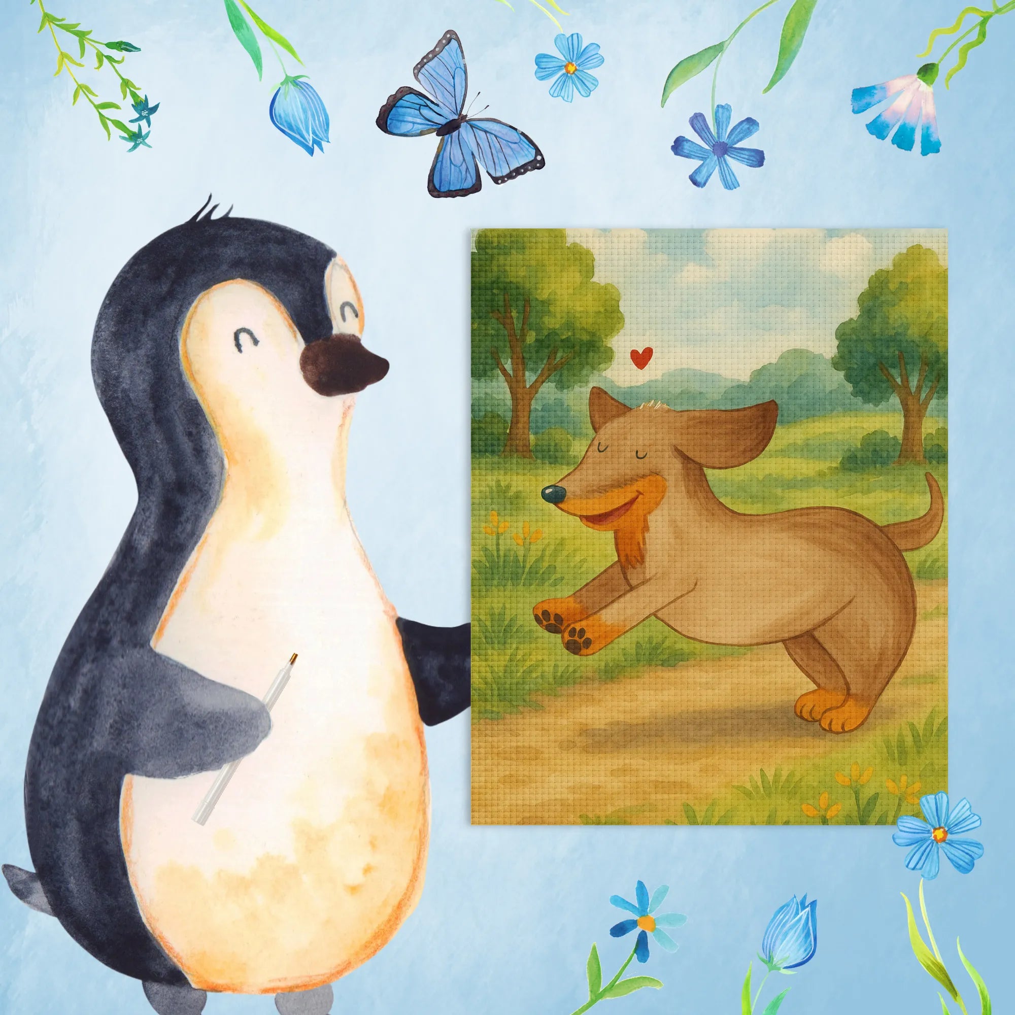 Dieser fröhliche Hund verkörpert Freude und Freiheit in jedem Sprung. Mit seinem langen Körper und den lebhaften Bewegungen begeistert er jeden, der ihn sieht. Wenn der Dackel fröhlich über die Wiese rast, fühlst du, wie sich auch dein Herz öffnet und du in seine beschwingte Welt eintauchst. Er erinnert uns daran, den Stress des Alltags hinter uns zu lassen und uns auf das Wesentliche zu besinnen – zu lachen, zu spielen und einfach nur da zu sein. Die Lebendigkeit und der Charme dieses Dackels sind unvergleichlich und inspirieren uns, das Leben in vollen Zügen zu genießen. Ob zu Hause oder unterwegs – sein fröhliches Wesen gibt dir Kraft und lässt dich positiv in die Zukunft blicken. Lass den kleinen Dackel in deinem Leben eine Quelle der Freude sein und schau, wie viel Farbe er in deinen Alltag bringt.