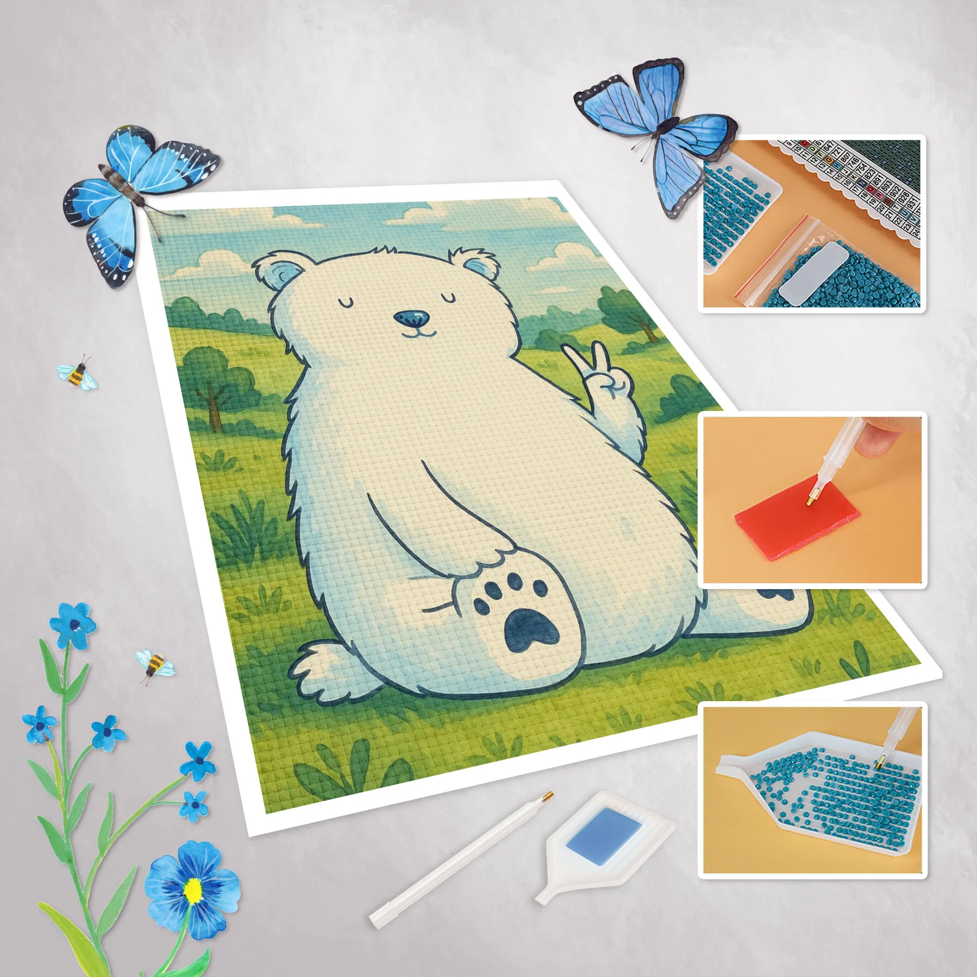 Ein wunderschönes Diamond Painting Set von Mr. & Mrs. Panda: Eisbär „Faul“