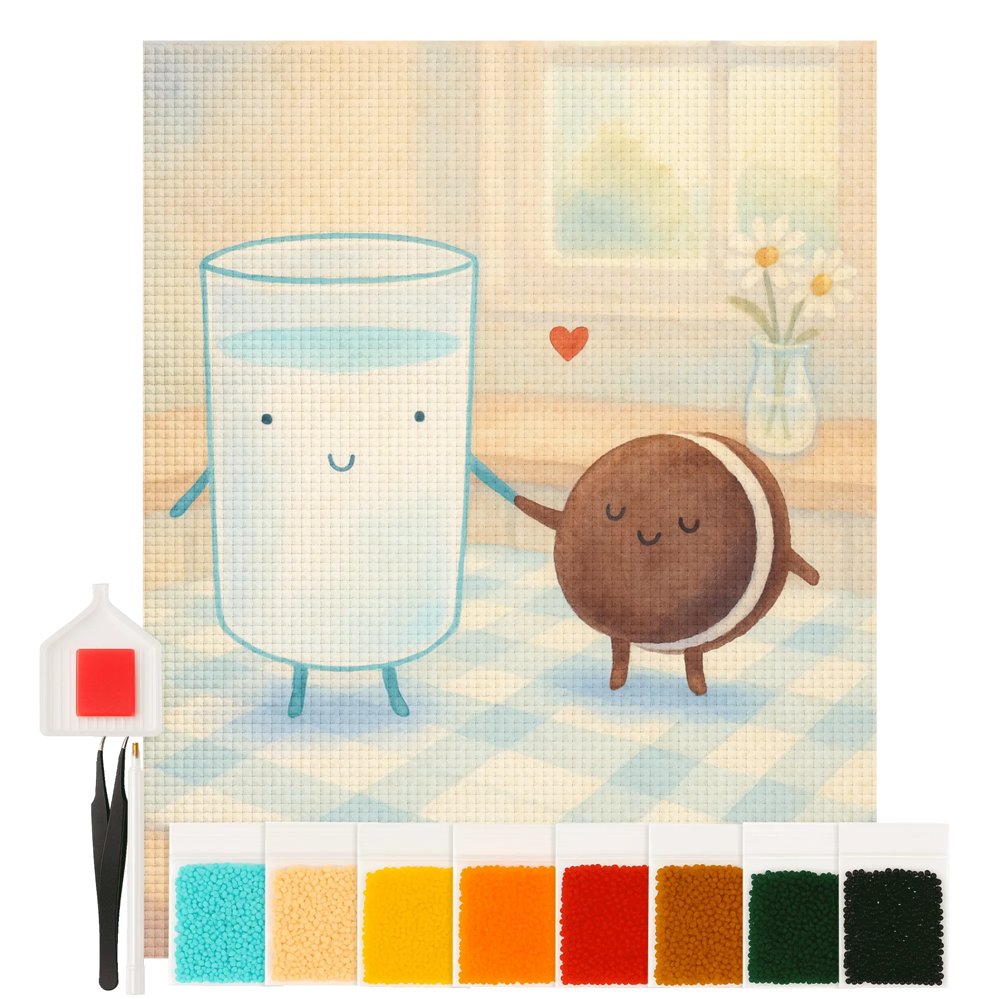 Entdecke das Diamond Painting "Milch & Keks" von Mr. & Mrs. Panda aus der zauberhaften Small World Kollektion. Ein süßes Glas Milch und ein herzhafter Keks halten Händchen — ein Motiv, das sofort gute Laune zaubert und ideal ist für Naschkatzen, Frühstücksliebhaber und romantische Seelen. Perfekt als Geschenk, Küchen-Deko oder gemeinsames DIY-Projekt.