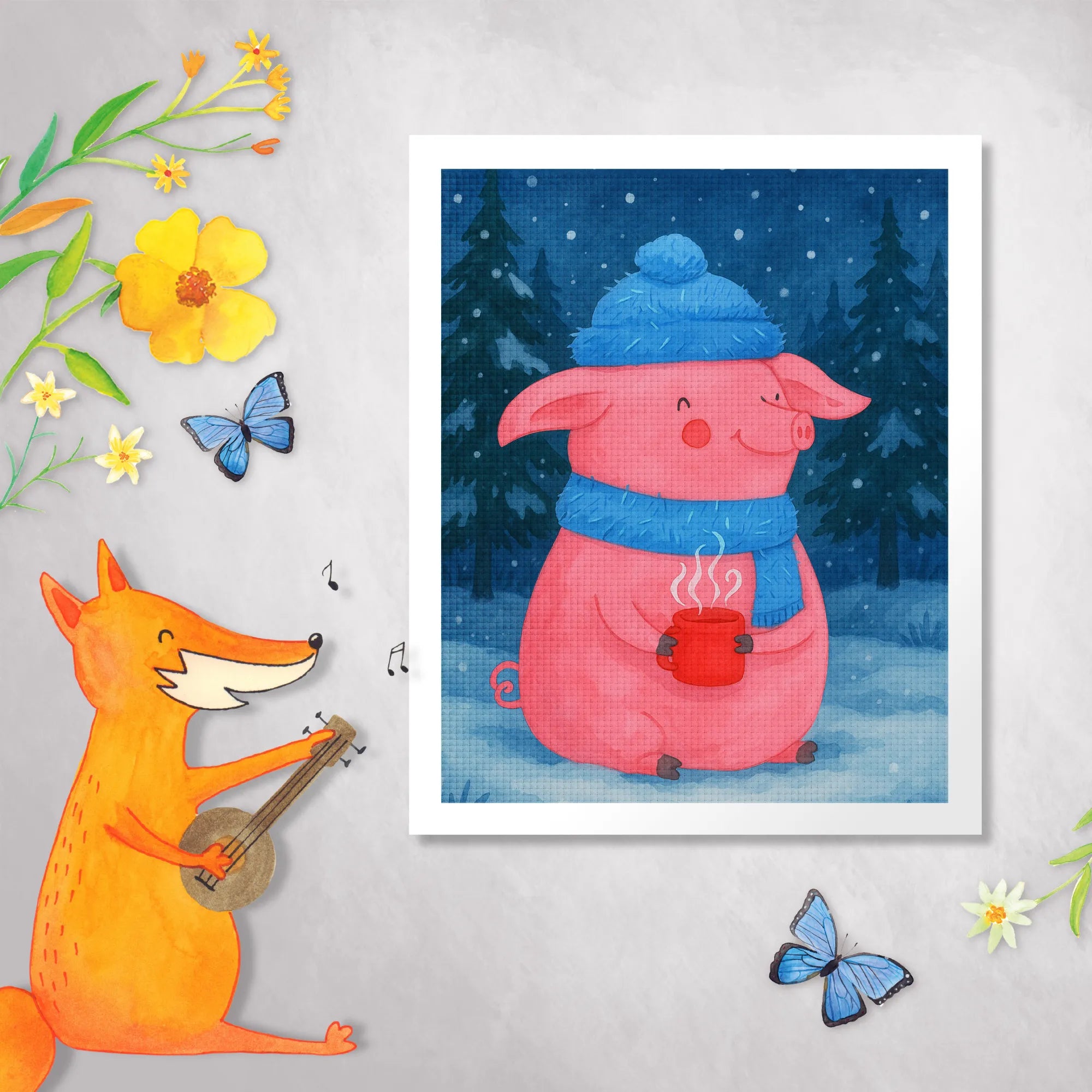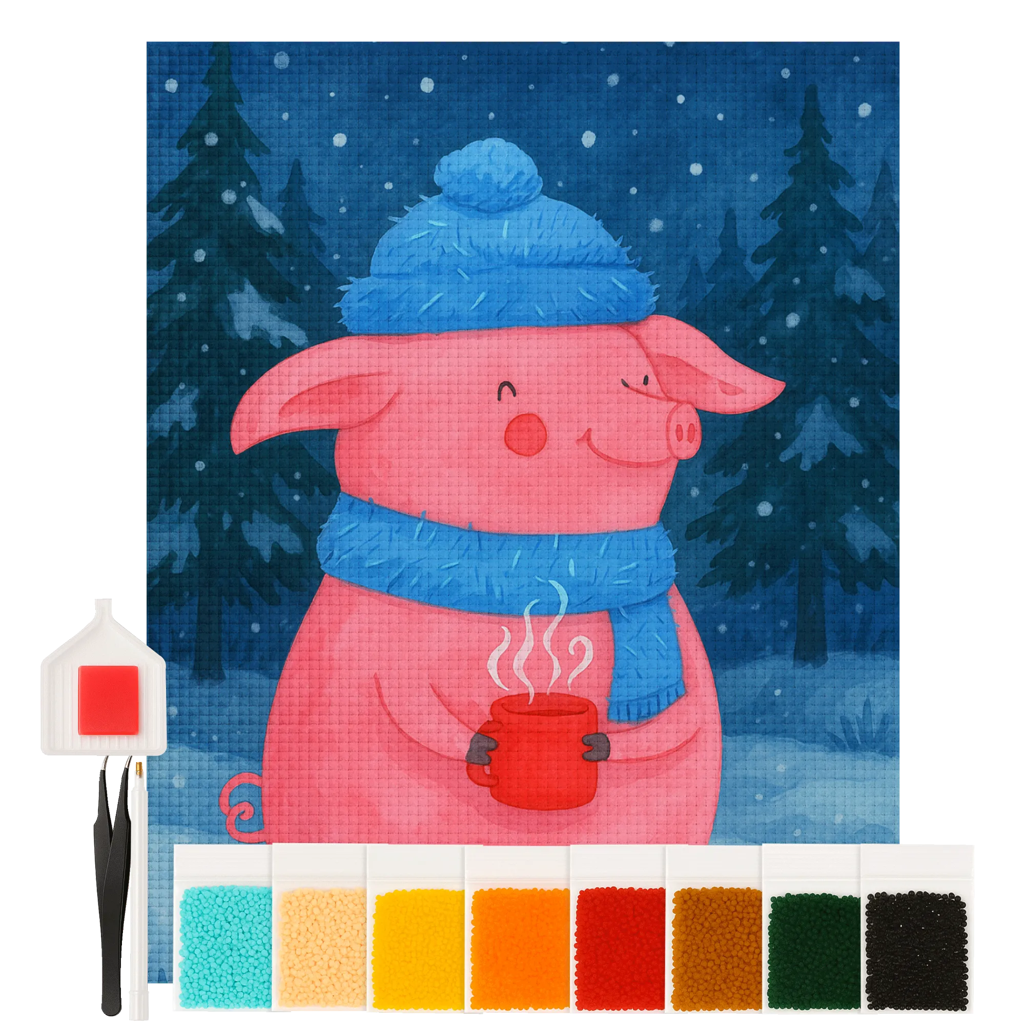 Diamond Painting piggy Mulled wine Design - Ohne Rahmen
