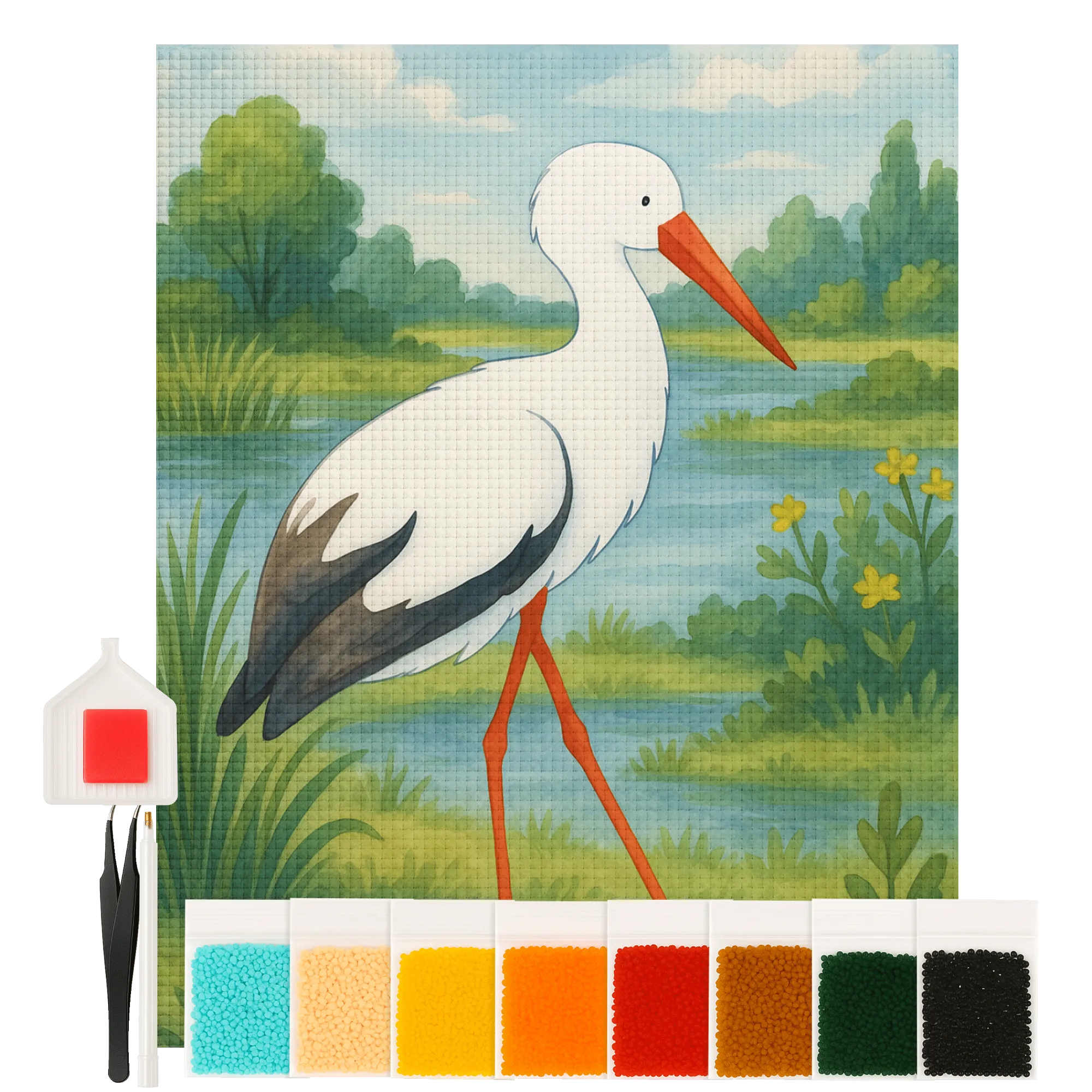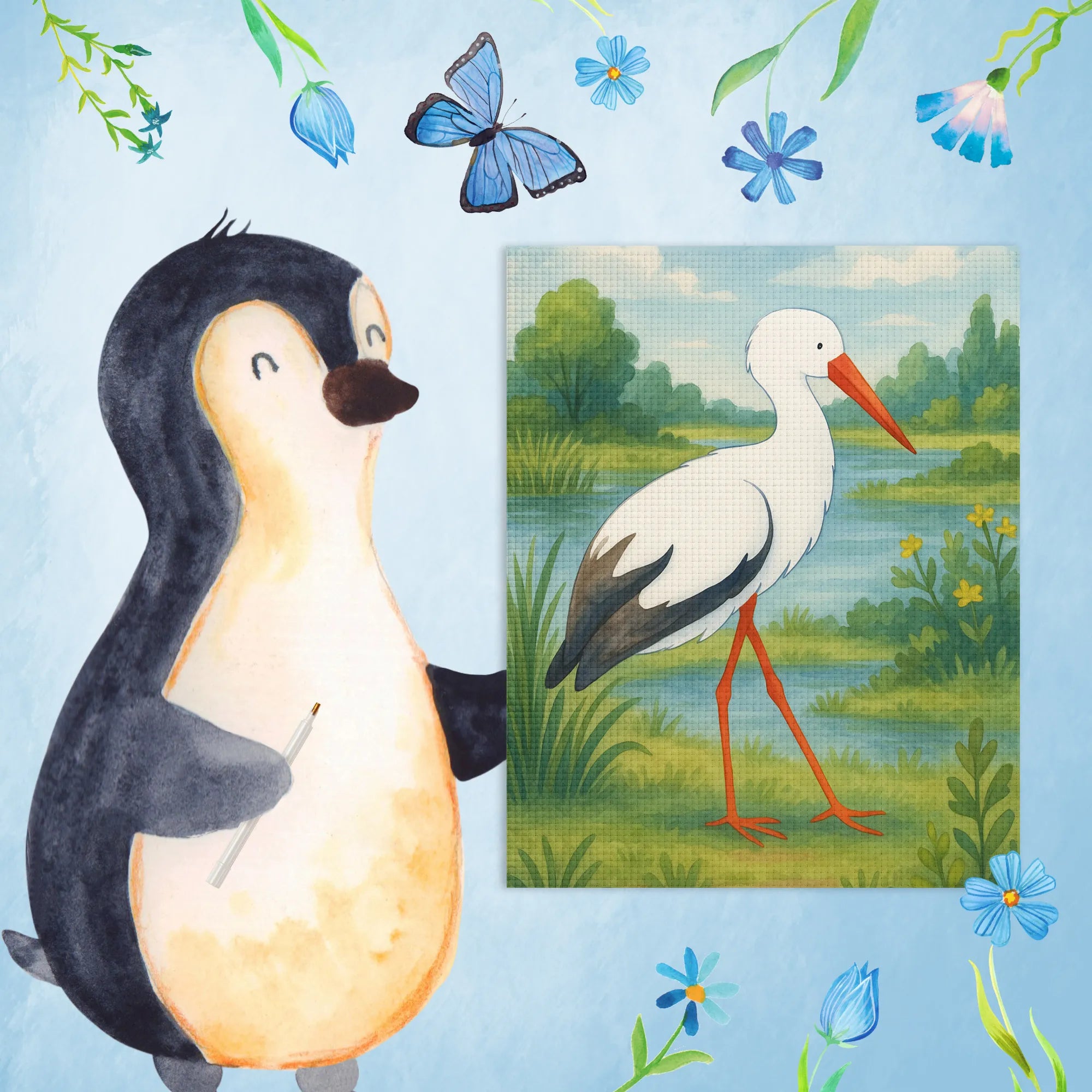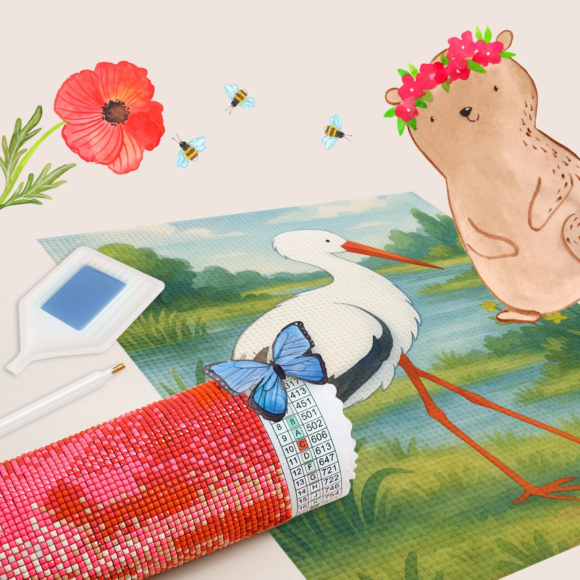 Willkommen in der Small World von Mr. & Mrs. Panda! Unser Diamond Painting „Storch" ist ein liebevolles Kristallbild-Motiv, das die Freude über Schwangerschaft und Geburt in ein kleines Kunstwerk verwandelt. Der süße Storch, der ein Baby in einem Tuch trägt, wurde von Mrs. Panda mit Aquarellzeichnungen entworfen und bringt Wärme, Humor und Niedlichkeit in jedes Zuhause. 🐦👶