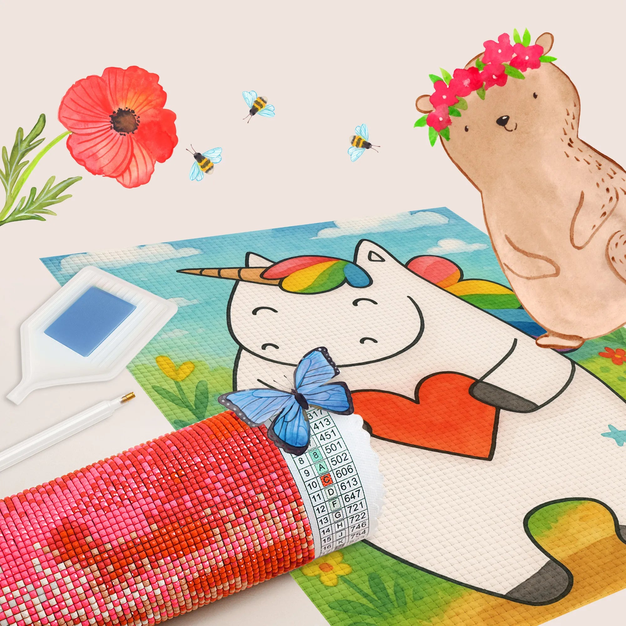 - Complete Set: Canvas (self-adhesive), colored resin diamonds (square), pen, wax, sorting tray & instructions