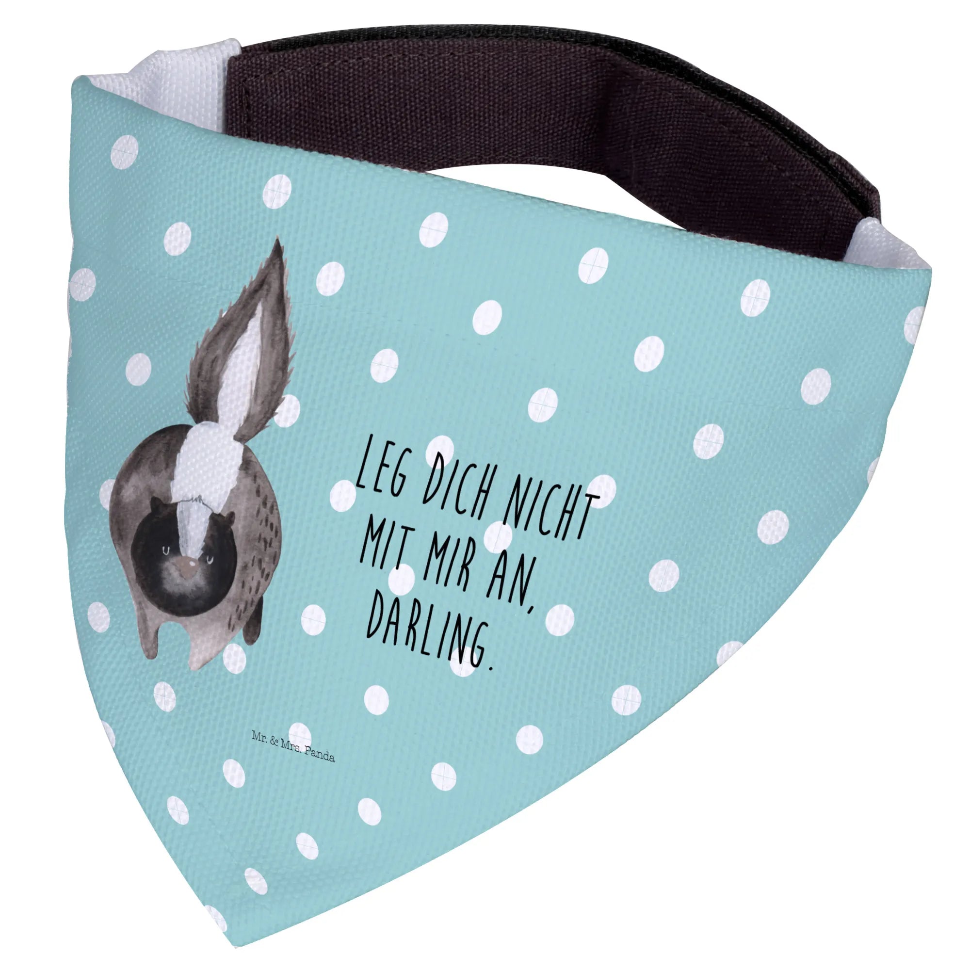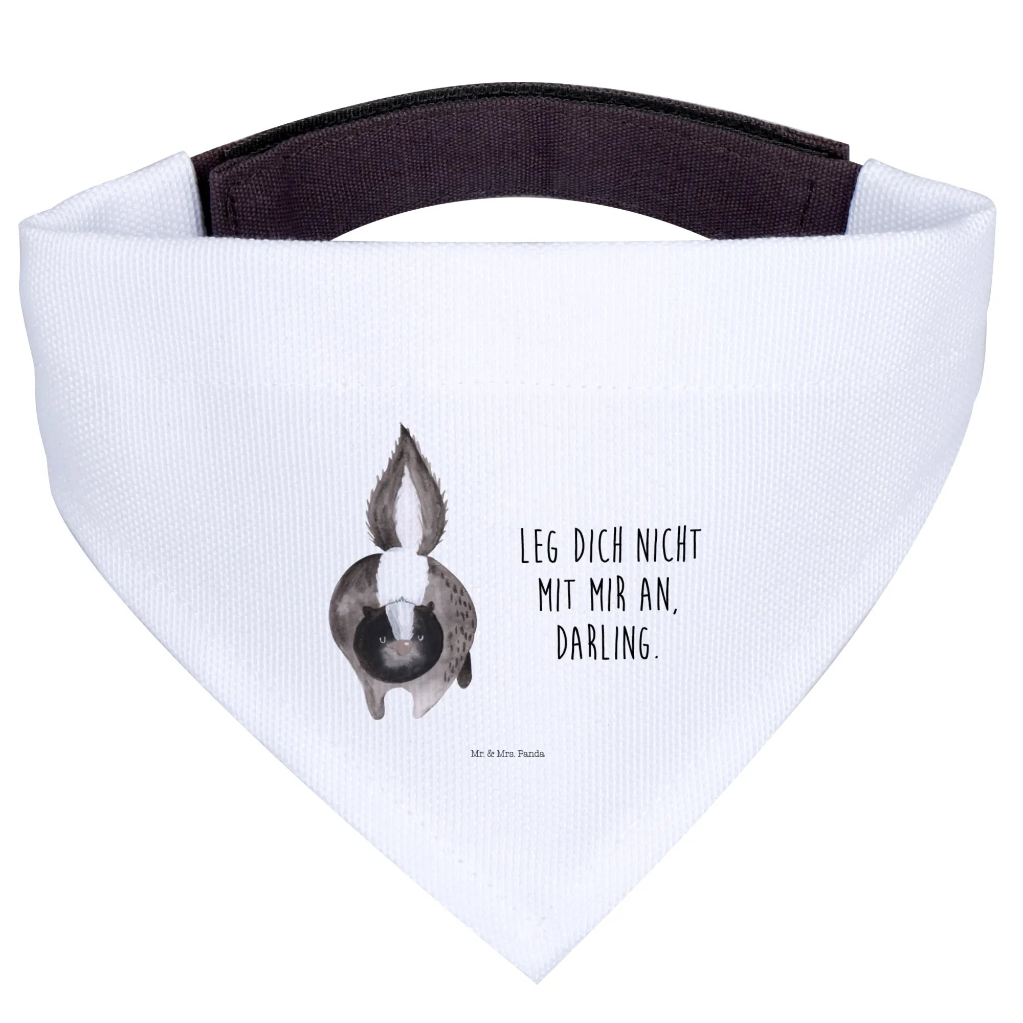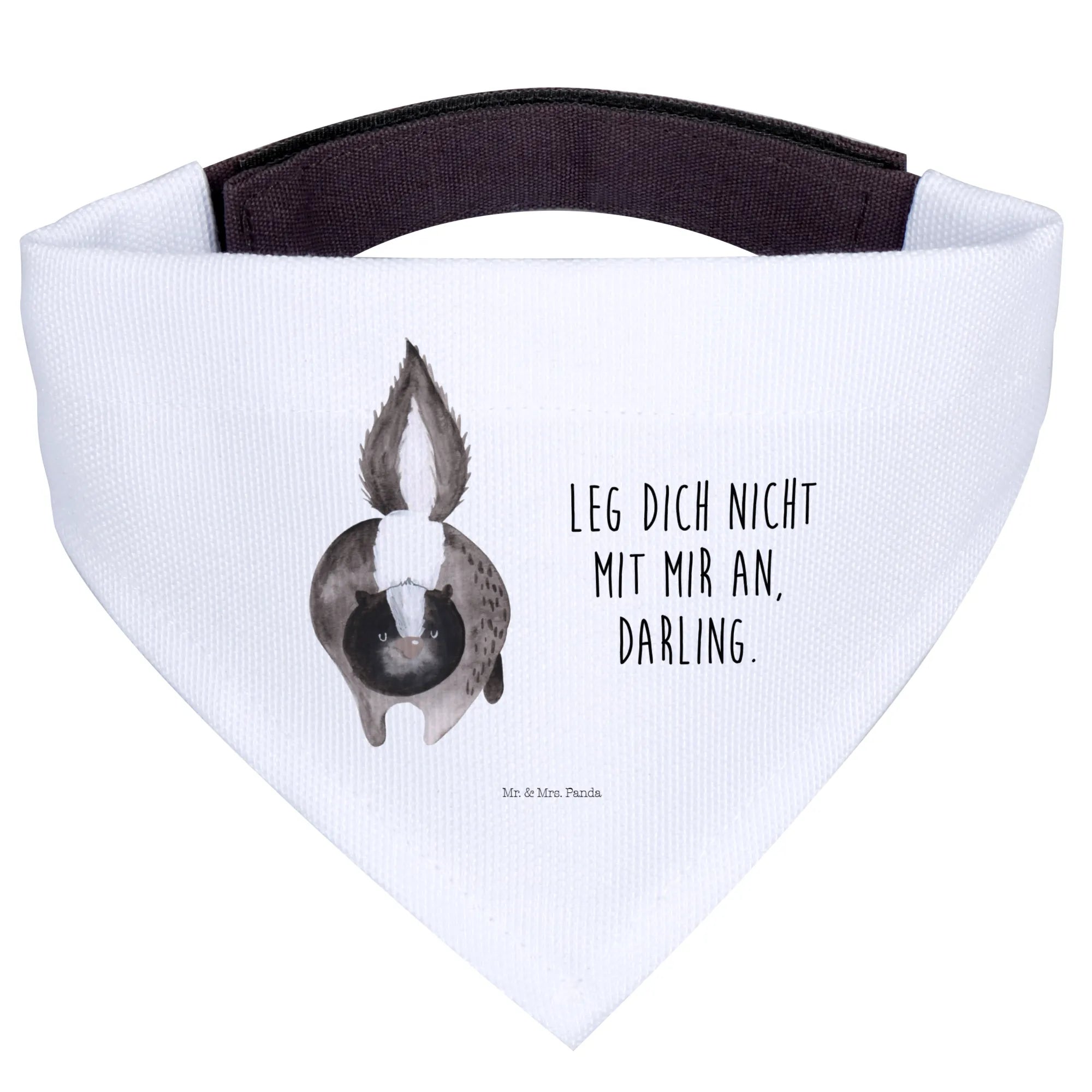 Gifting this Dog Neckerchief is a heartfelt choice for any dog lover in your life. It’s a great present for new puppy owners, dog lovers, and those who enjoy showing off their pup’s playful side! Whether you’re celebrating a birthday, a special occasion, or just want to pamper your furry friend, this neckerchief makes a lovely gift that is sure to be cherished. The sweet sentiment behind the Skunk Collection, inspired by Mrs. Panda’s beloved late companion Mr. Flower, brings a touch of love and remembrance to every purchase. Adorned with the fun slogan ‘Leg dich nicht mit mir an, Darling,’ this neckerchief adds a playful touch while reminding everyone to approach with care!