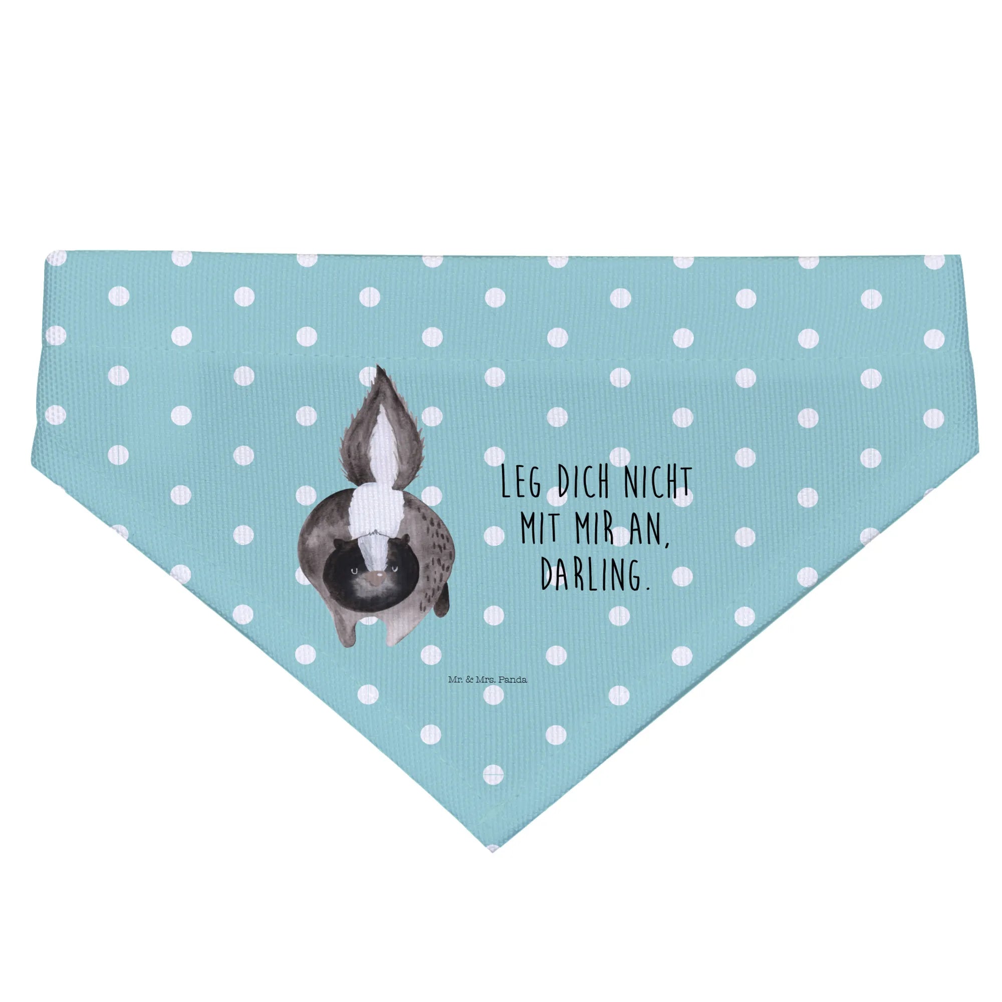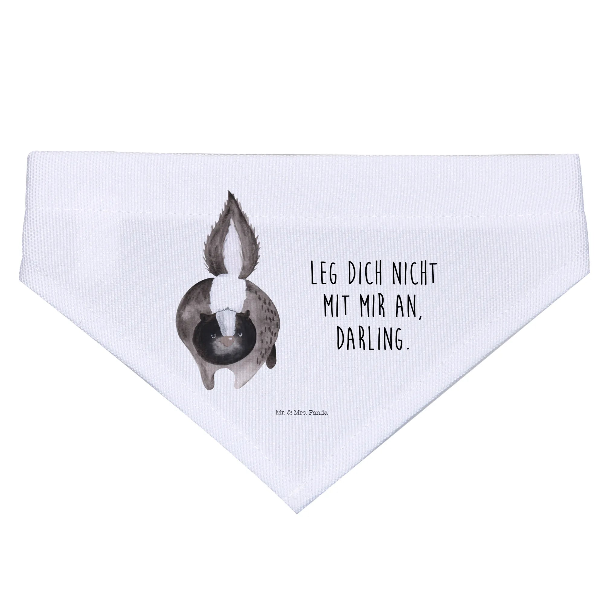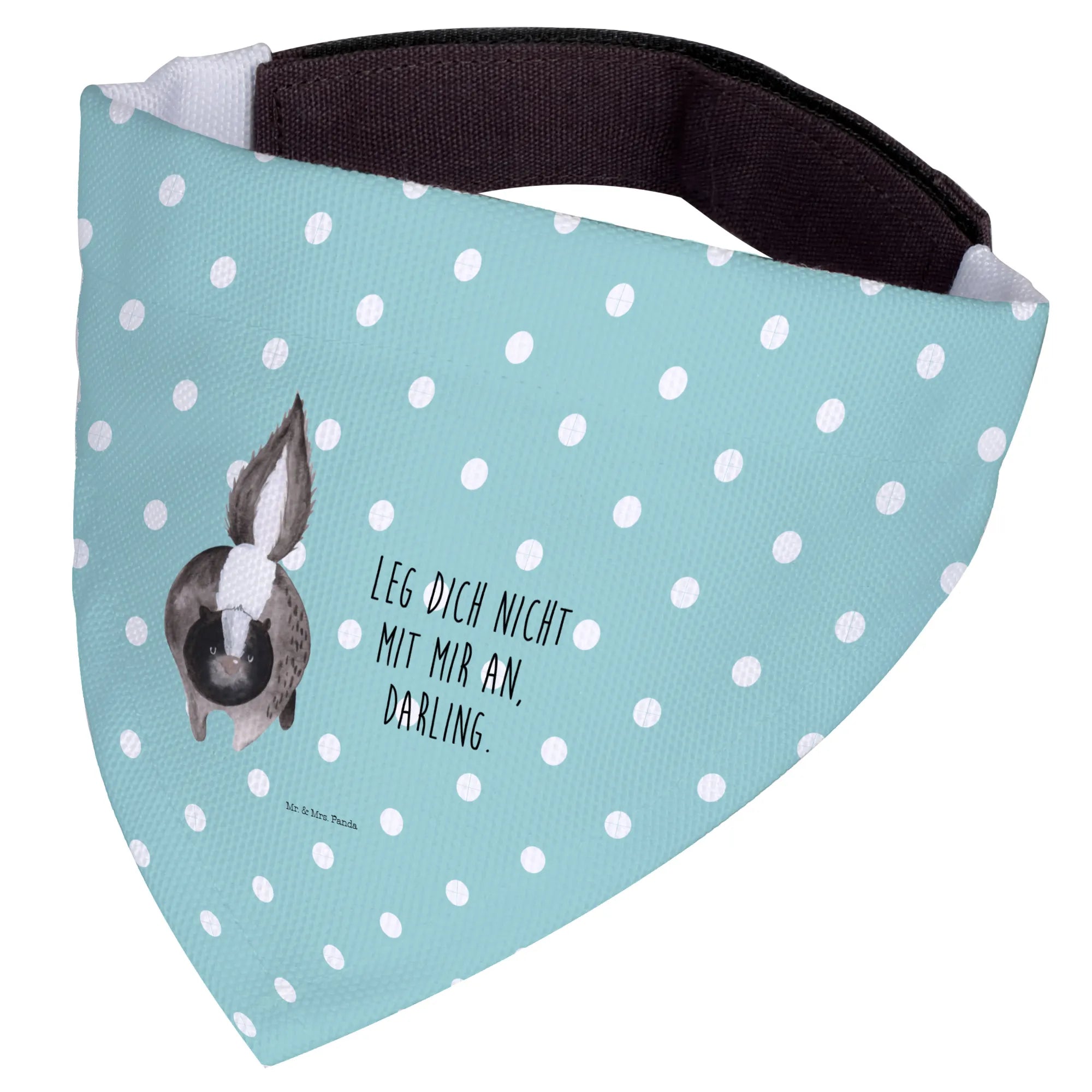 Gifting this Dog Neckerchief is a heartfelt choice for any dog lover in your life. It’s a great present for new puppy owners, dog lovers, and those who enjoy showing off their pup’s playful side! Whether you’re celebrating a birthday, a special occasion, or just want to pamper your furry friend, this neckerchief makes a lovely gift that is sure to be cherished. The sweet sentiment behind the Skunk Collection, inspired by Mrs. Panda’s beloved late companion Mr. Flower, brings a touch of love and remembrance to every purchase. Adorned with the fun slogan ‘Leg dich nicht mit mir an, Darling,’ this neckerchief adds a playful touch while reminding everyone to approach with care!