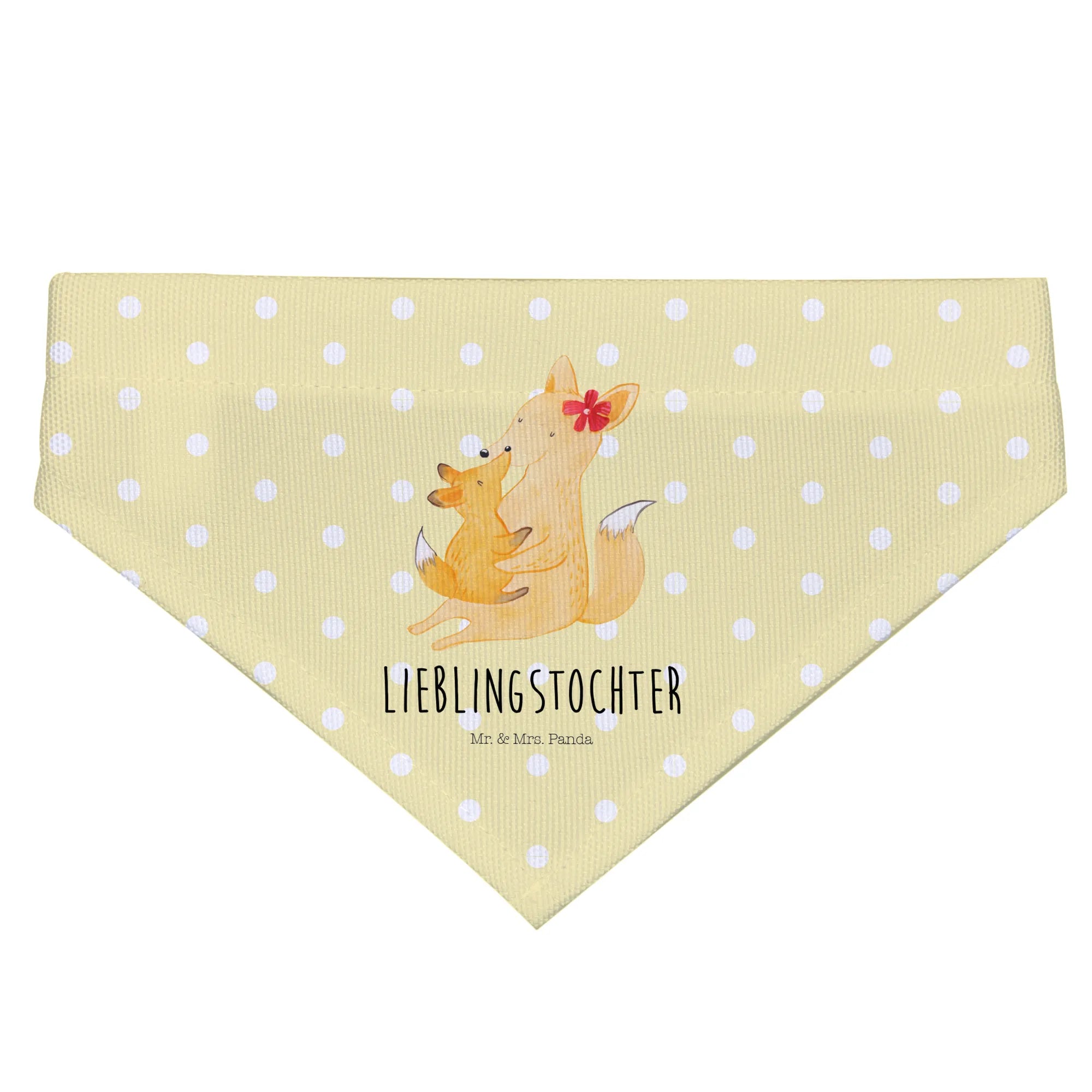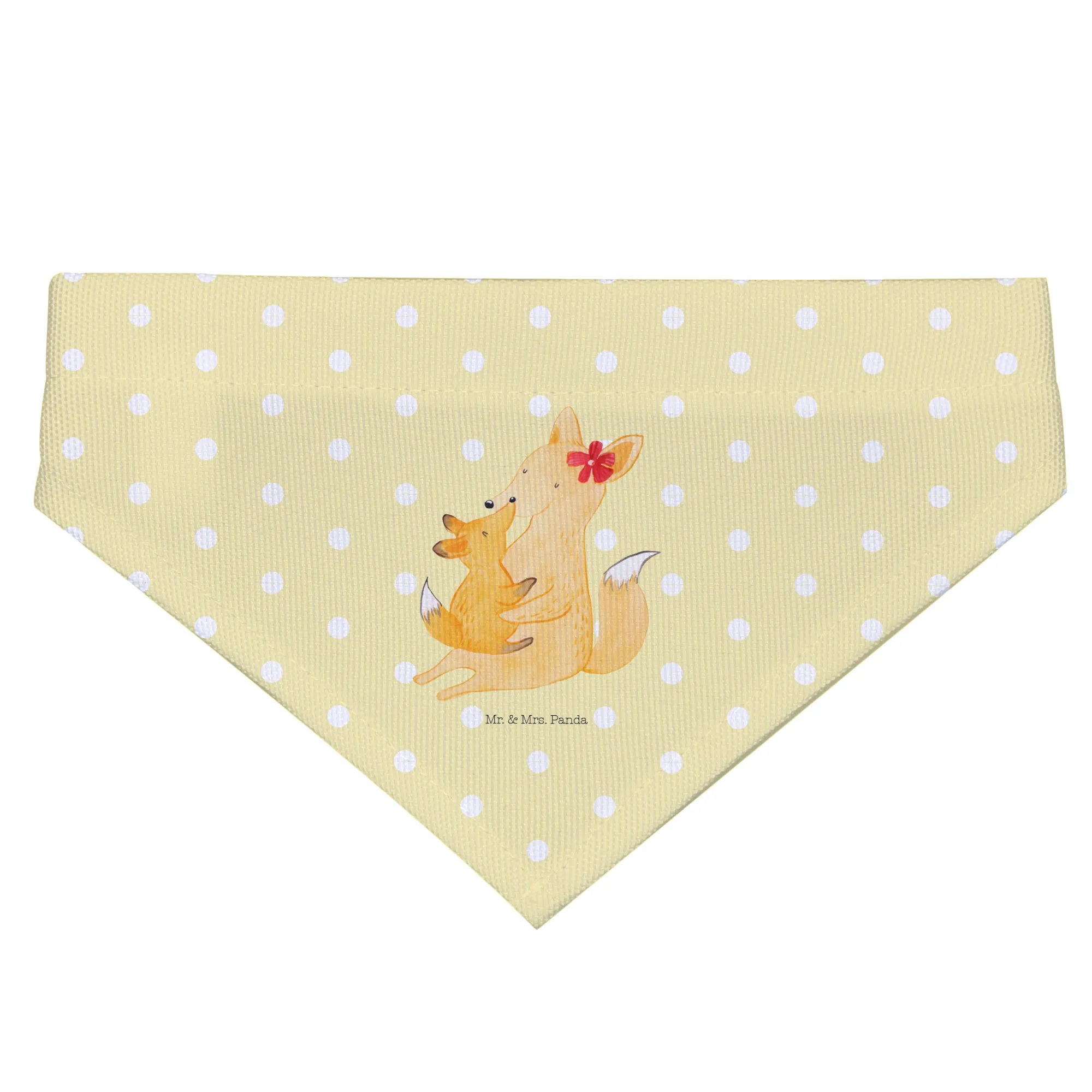 This delightful accessory not only adds a stylish flair to your furry friend's appearance but also signifies the beautiful bond shared among family. Imagine your beloved medium-sized dog wearing this super cute scarf that showcases a tender moment between a mother fox and her baby. The warm yellow-orange hues combined with white accents create an endearing image that radiates love and care.