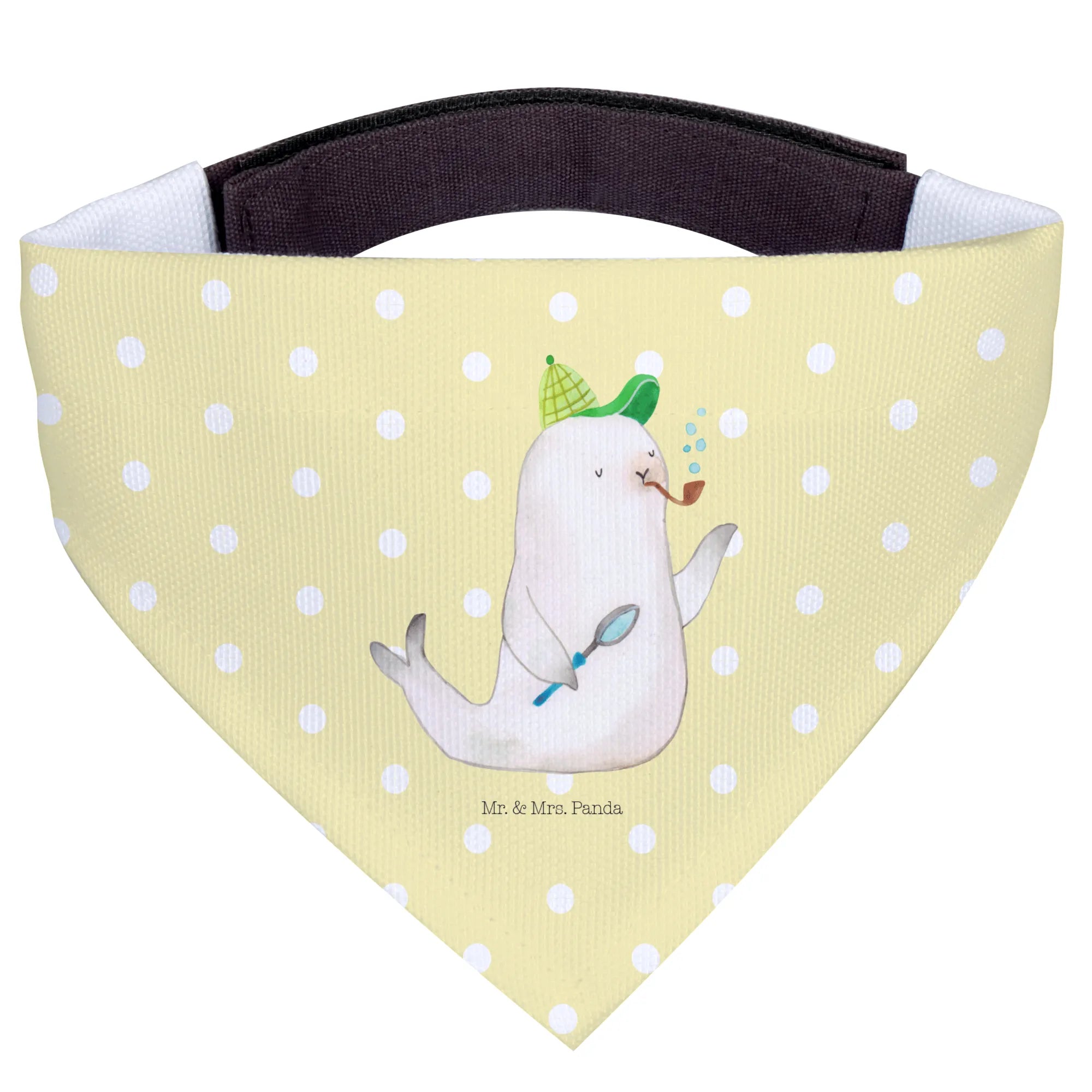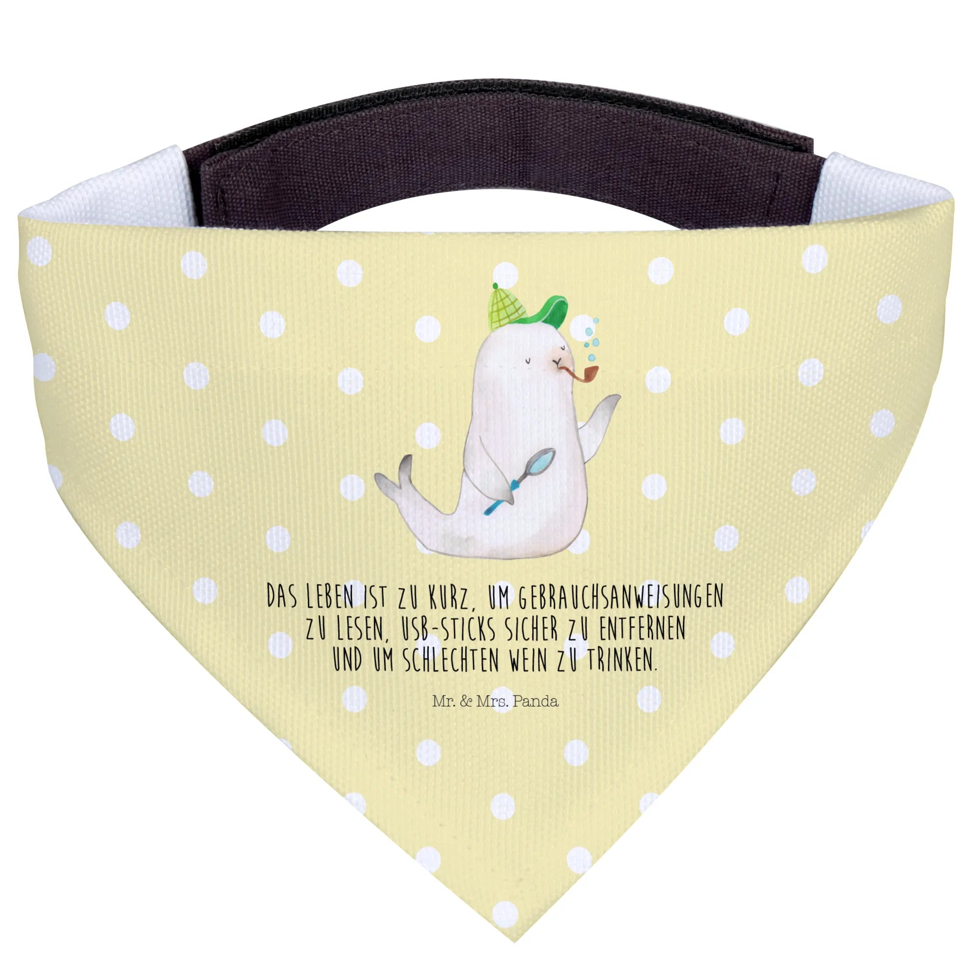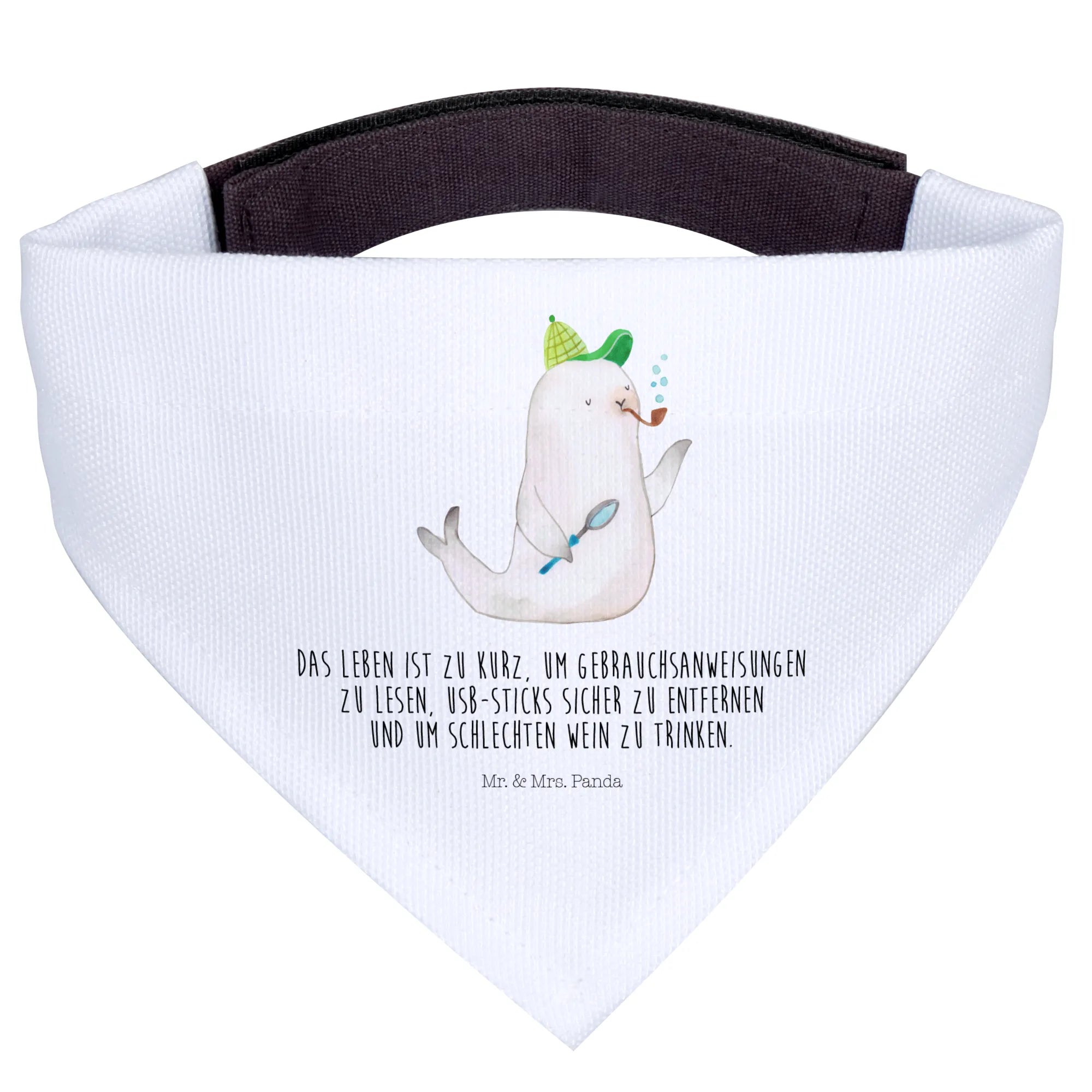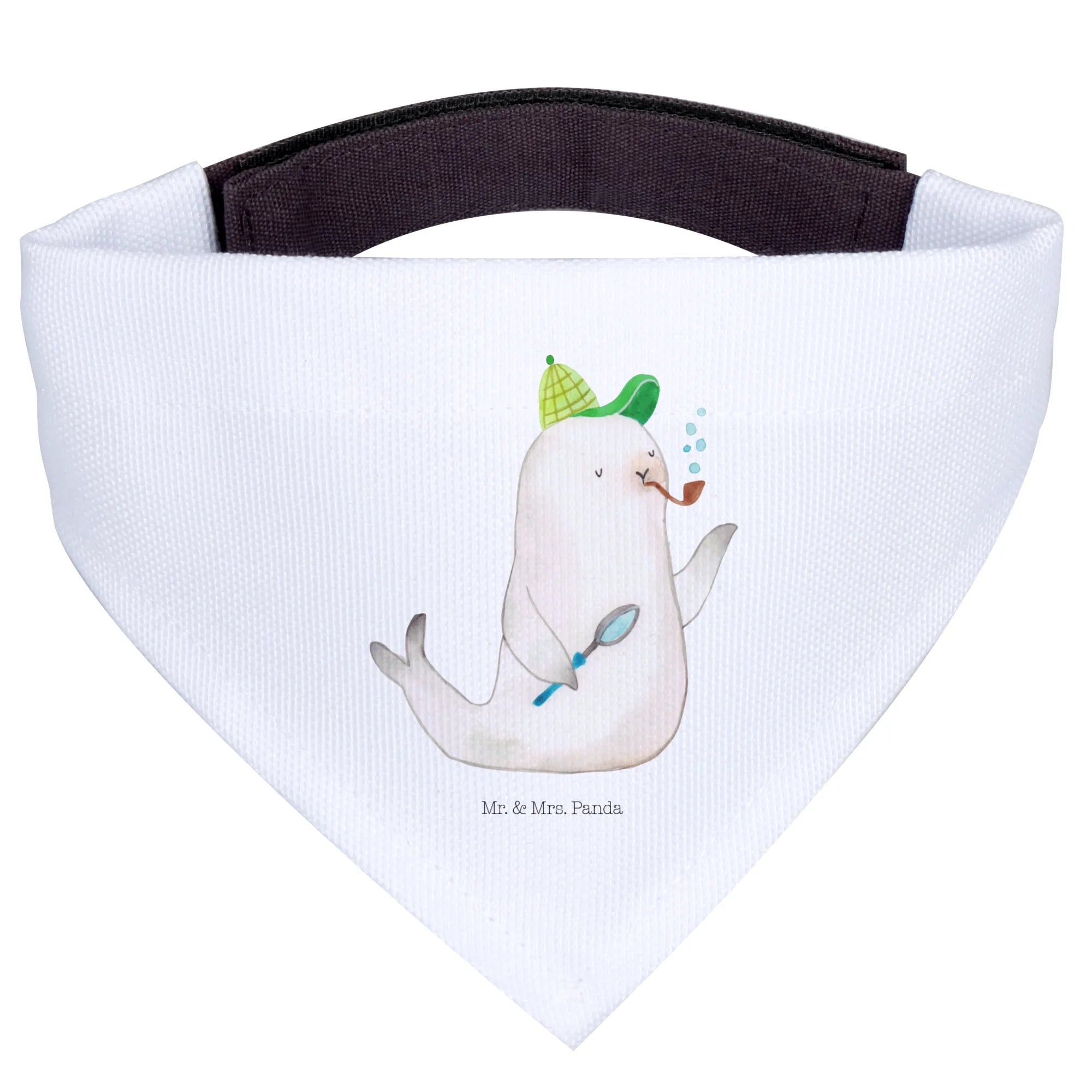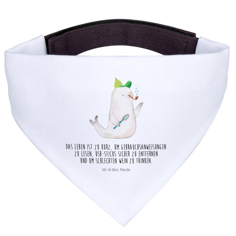 Dog neckerchief seal sherlock - Dog neck scarf M - with saying - White