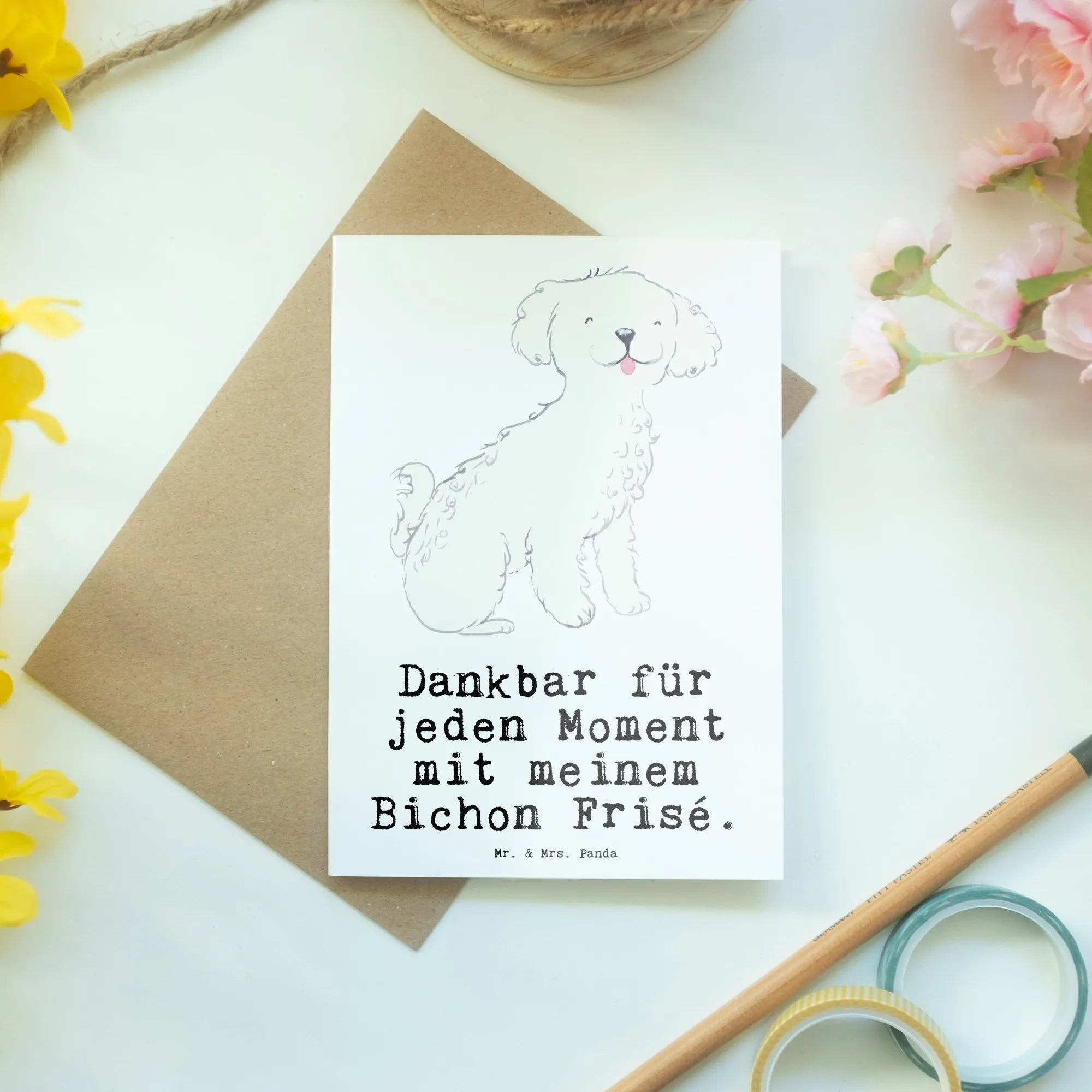 In a world filled with hustle and bustle, there’s something so special about the joy brought to us by our furry friends. Meet our adorable Bichon Frisé, with its soft, curly fur and bright, playful eyes that sparkle with happiness! This little bundle of joy looks up at us, tongue adorably lolling out, reminding us to seize every moment with gratitude and love. The saying 'Dankbar für jeden Moment mit meinem Bichon Frisé' perfectly encapsulates that feeling of appreciation we hold for these precious companions. Each glance, wag of the tail, and silly little trick they perform fills our lives with warmth and laughter. So let’s not forget the simple joys, like curling up together after a playful afternoon or the way they greet us after a long day—it's these moments that matter most. Cherish the laughter, the playful antics, and the unconditional love that our Bichon Frisé brings into our lives; they’re more than just pets, they’re family!