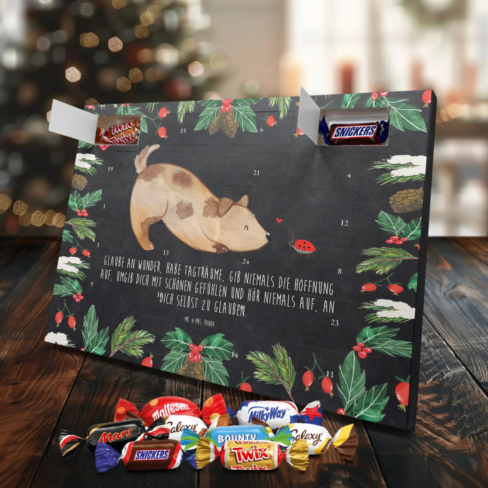 Chocolate advent calendar Dog ladybug - Lindt LINDOR - with saying - Chalkboard
