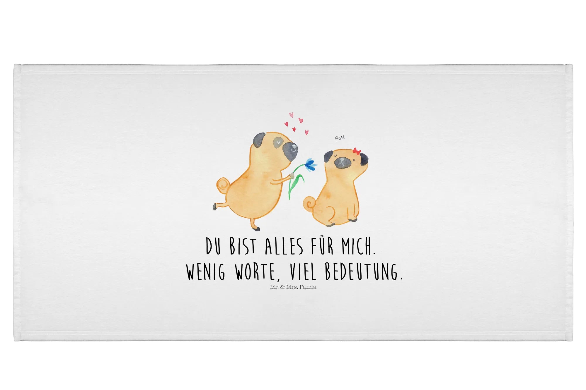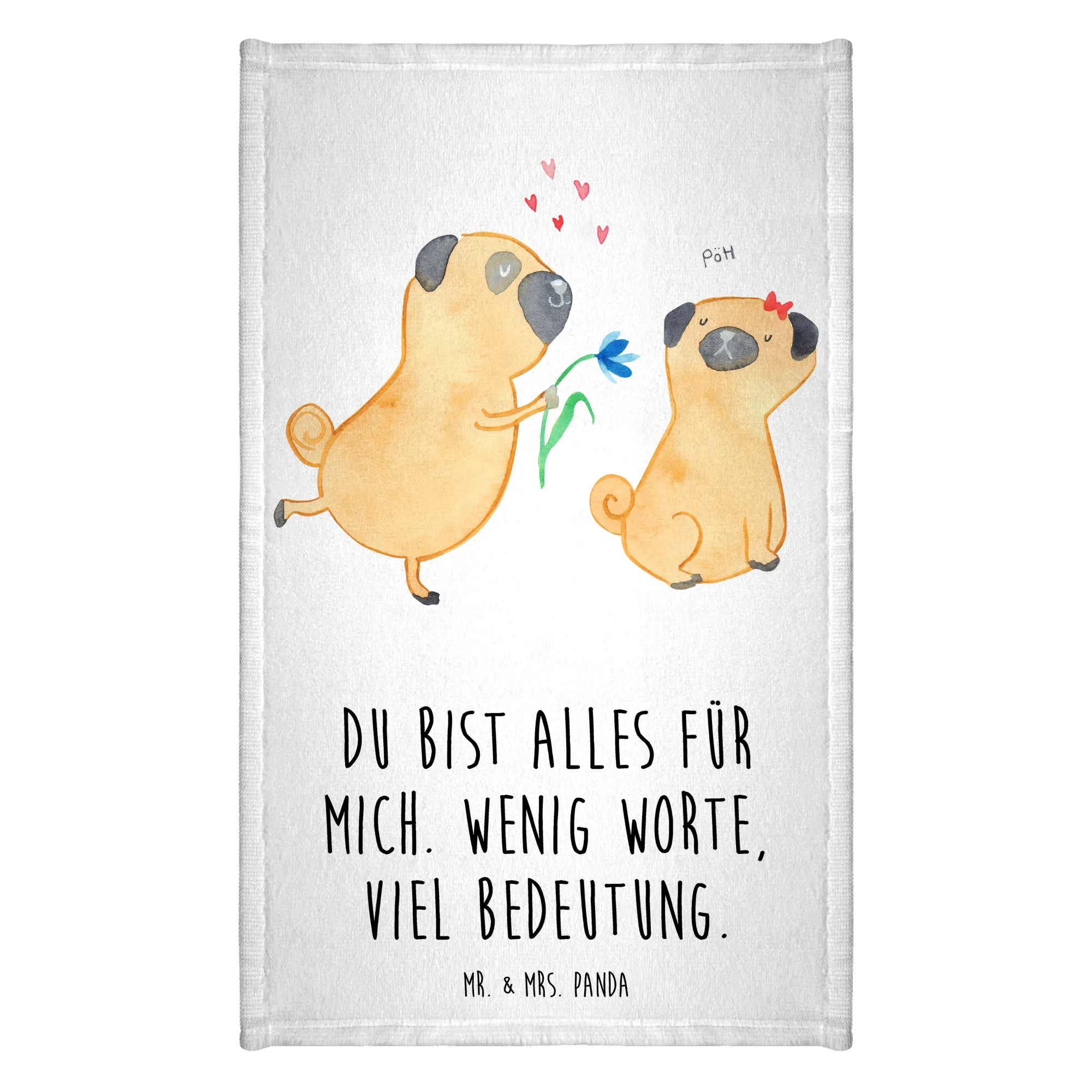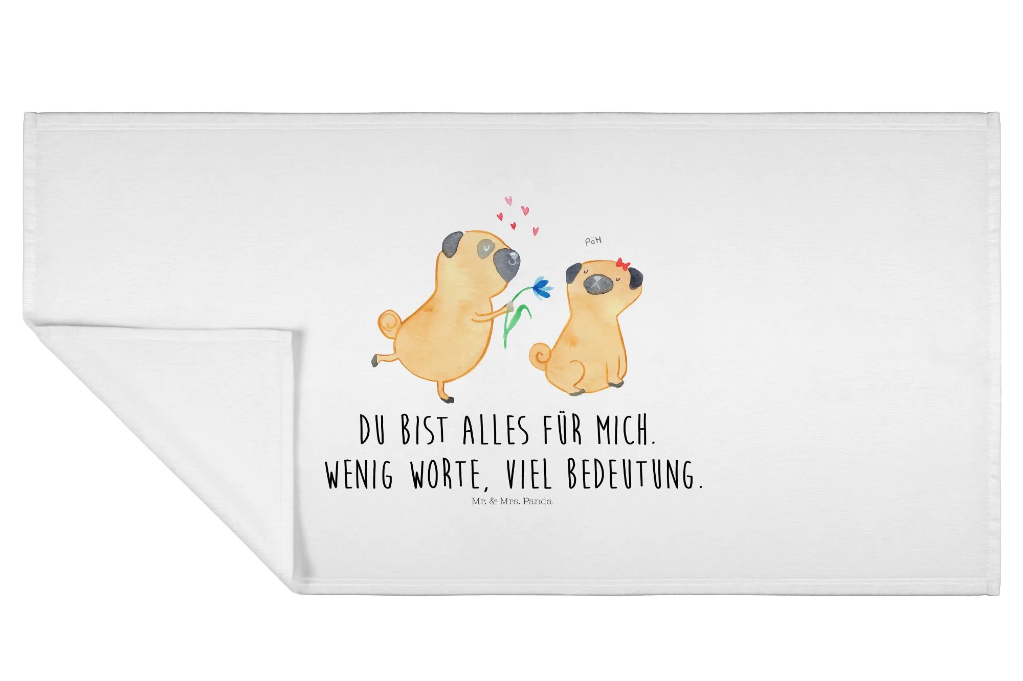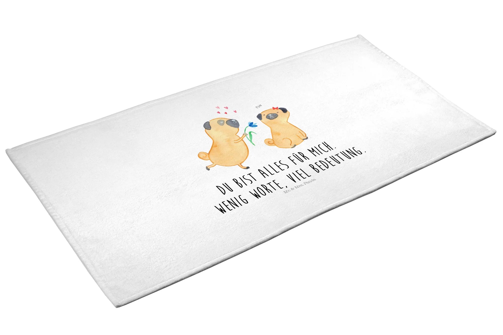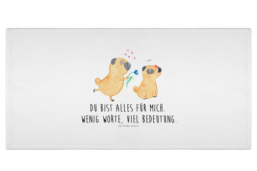 Hand towel pug In love - 50 x 100 Towel - with a saying - White