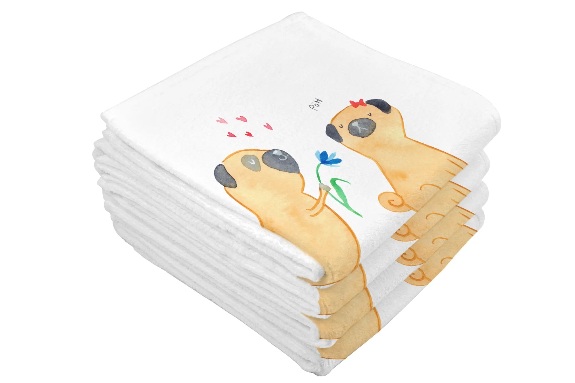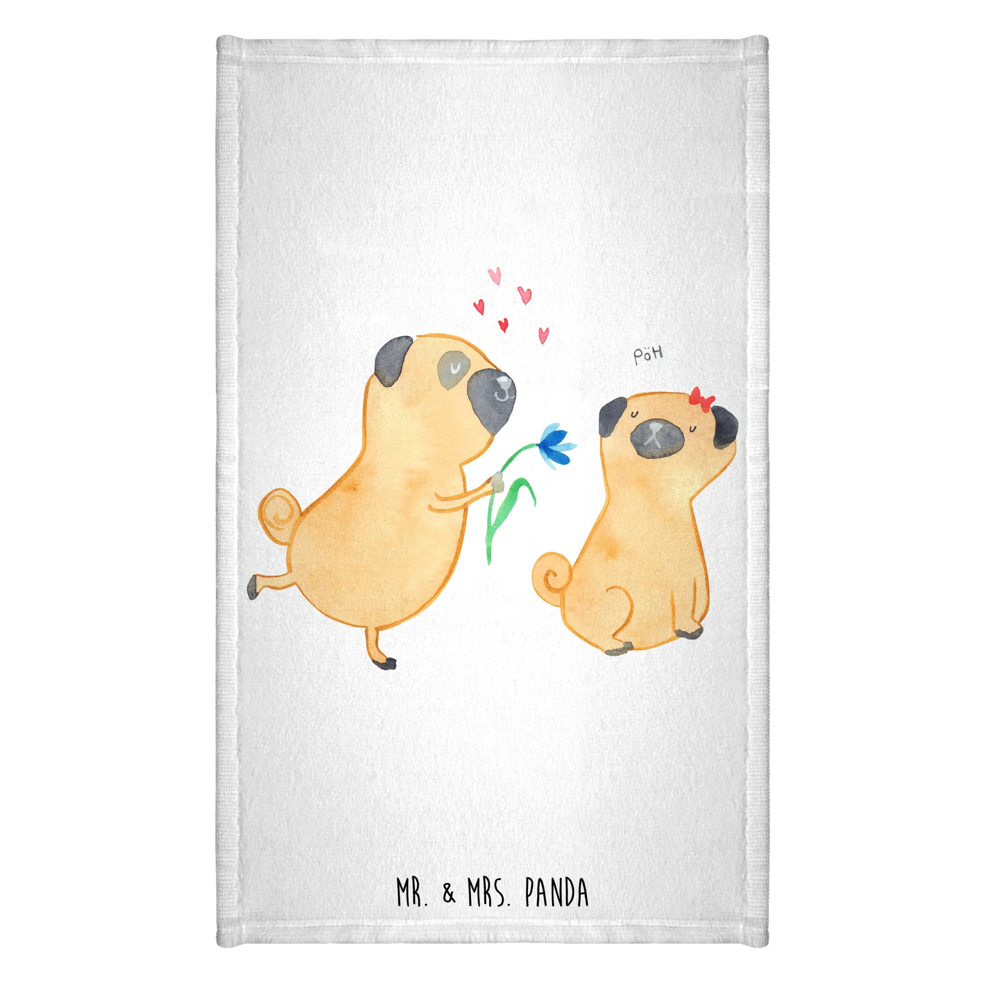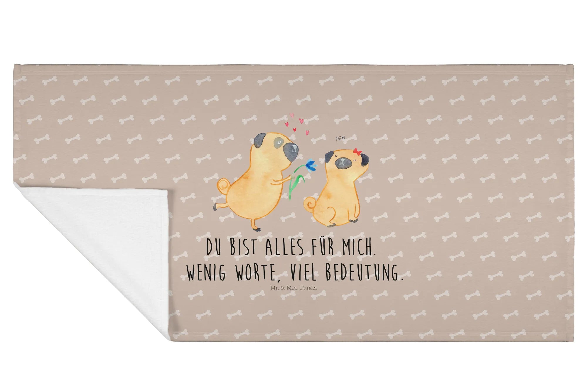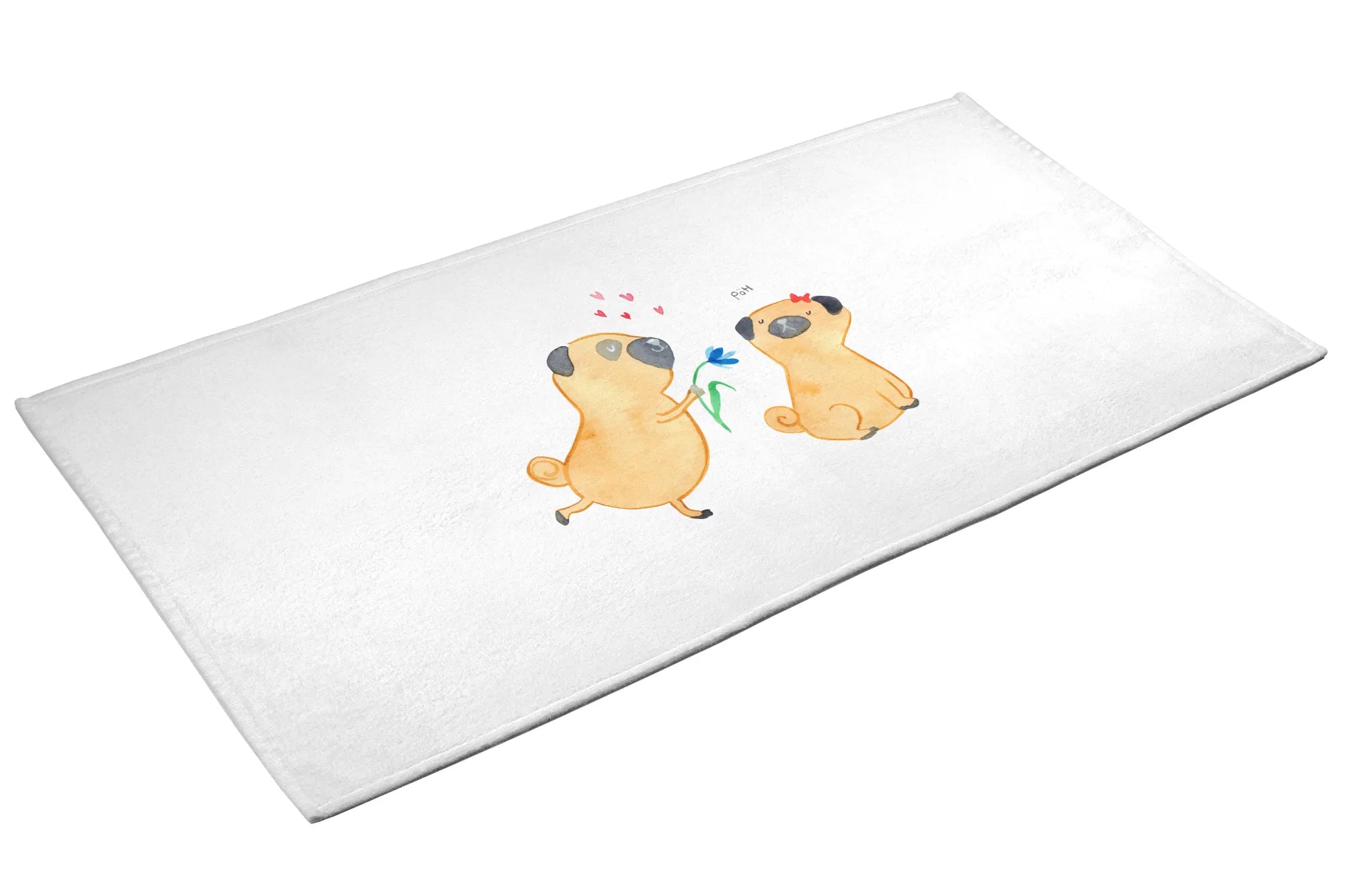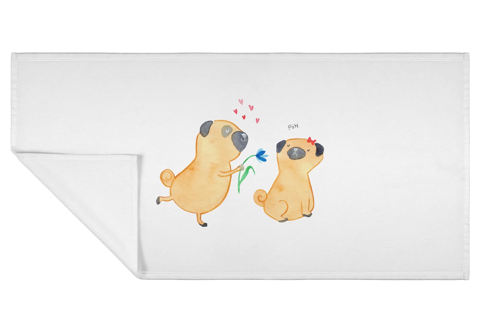 Hand towel pug In love - 50 x 100 Towel - with a saying - White