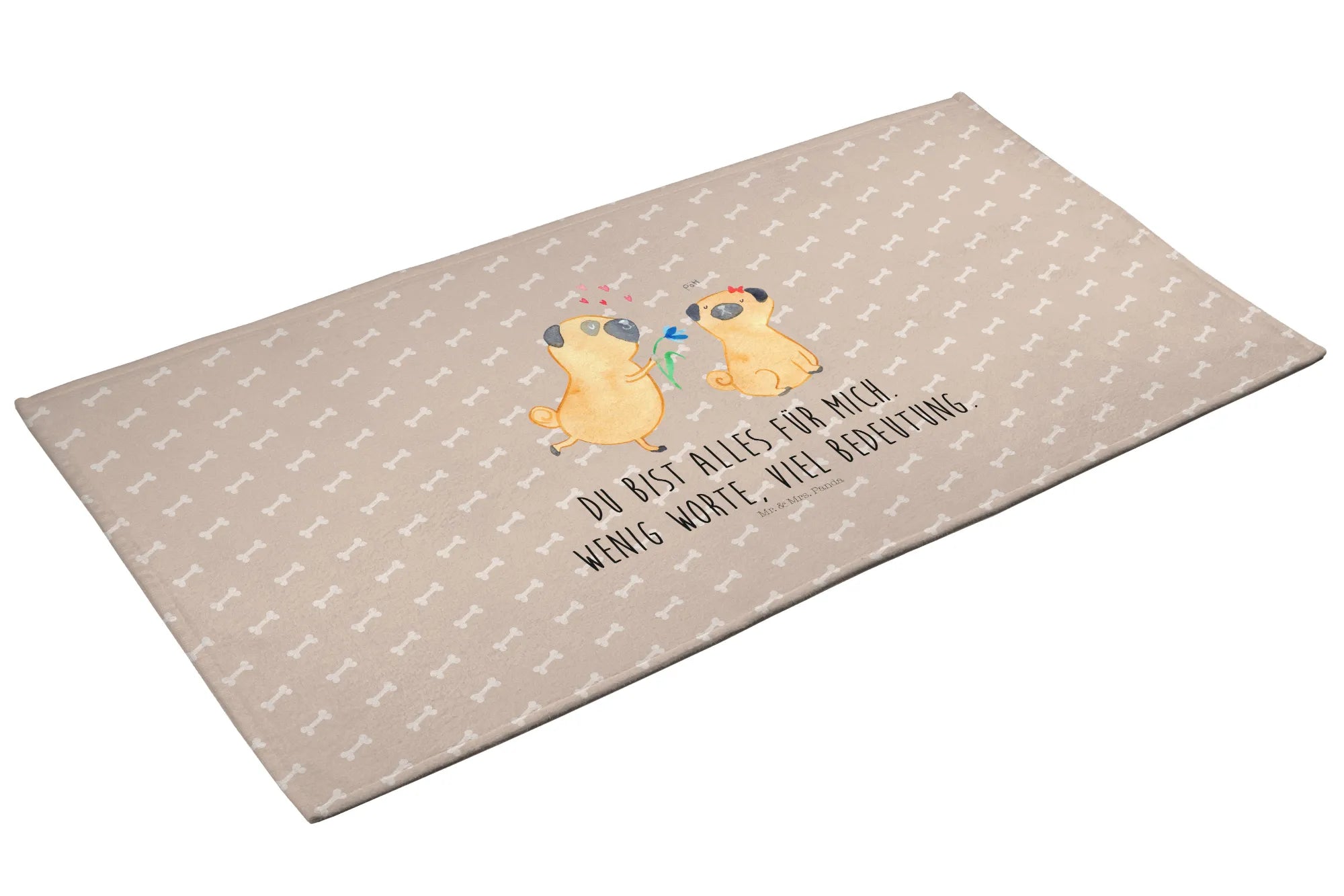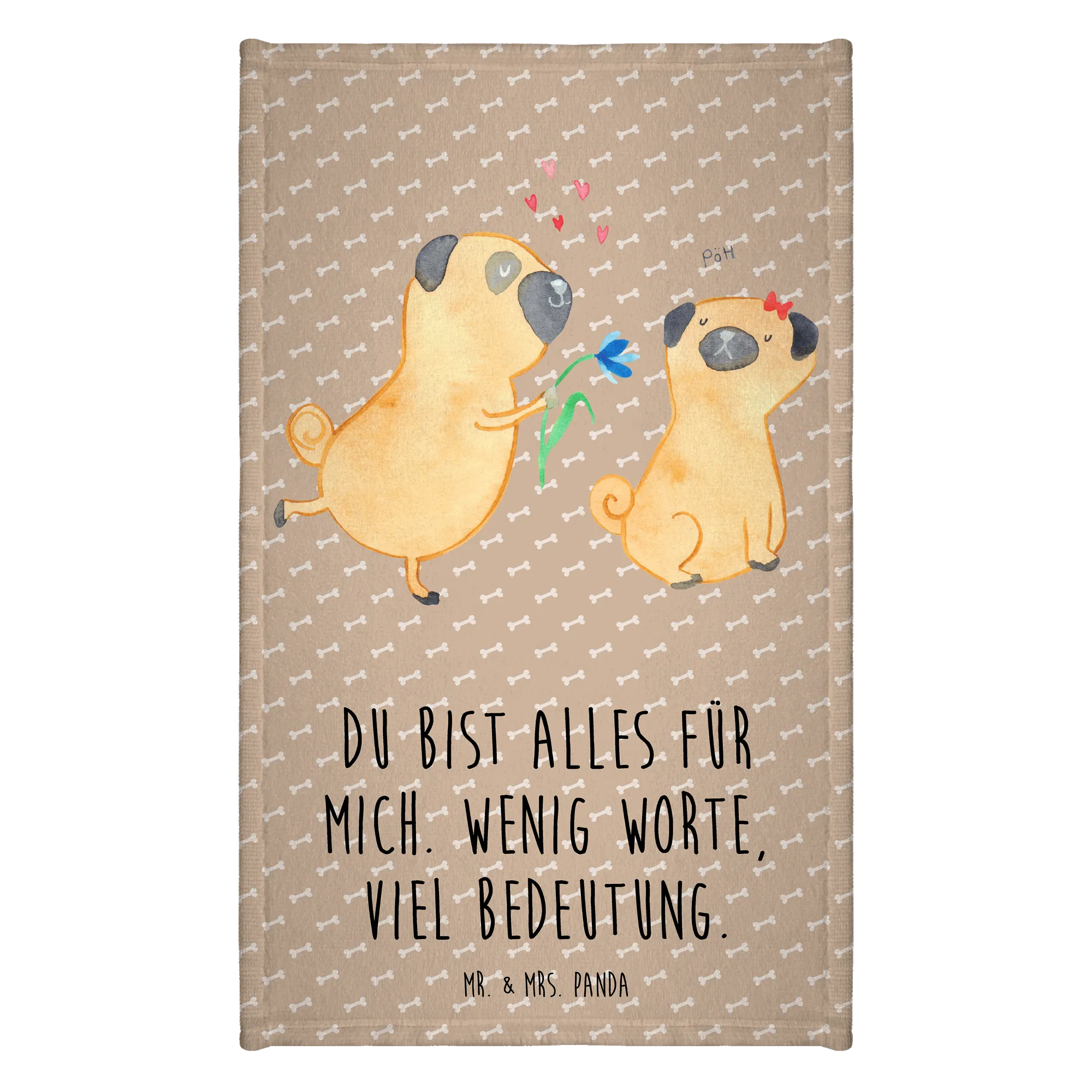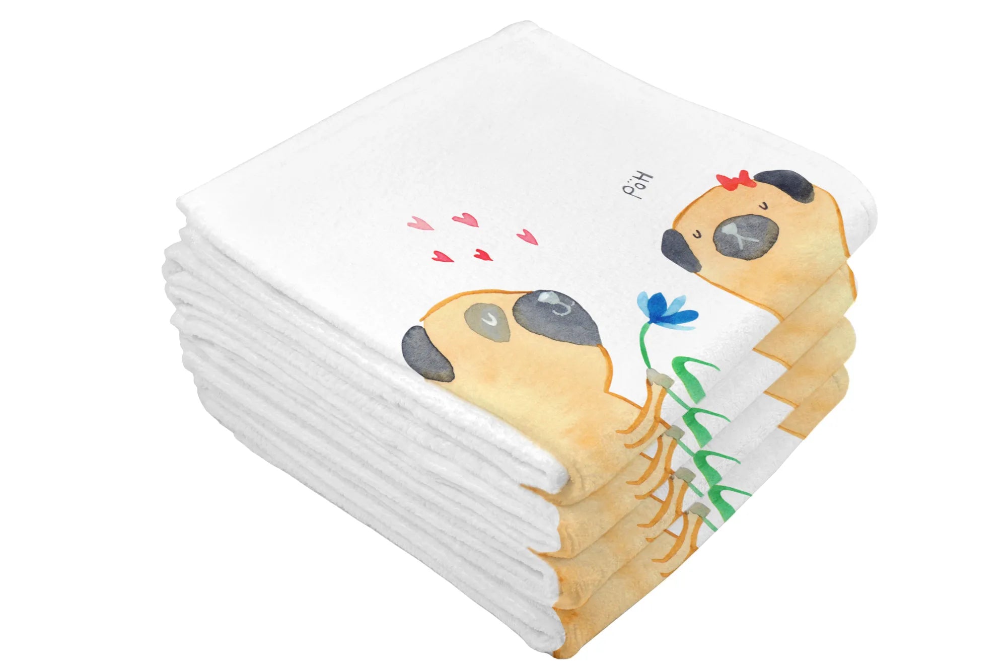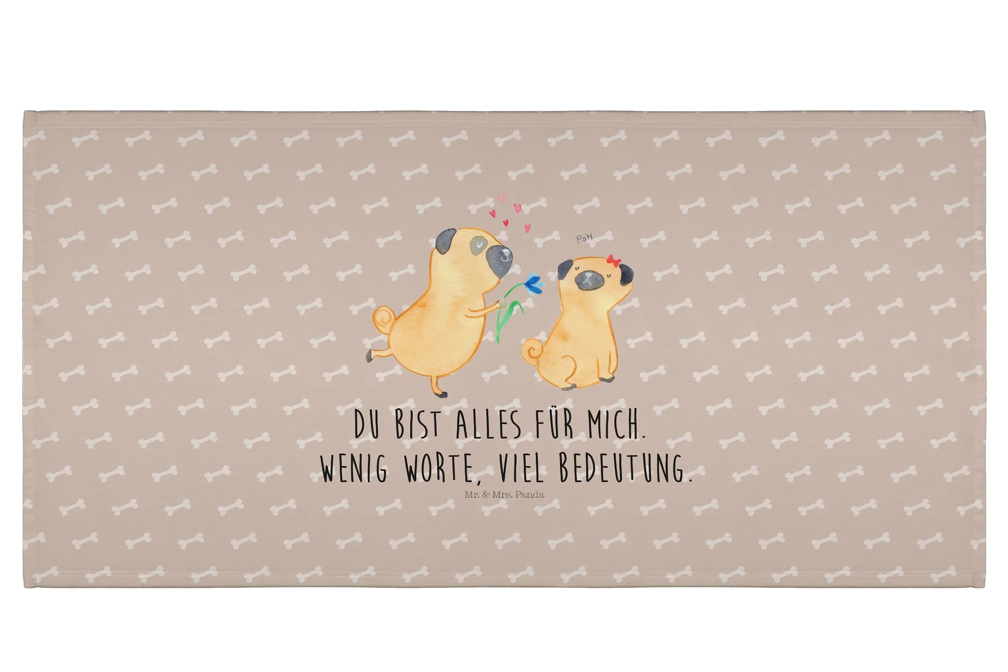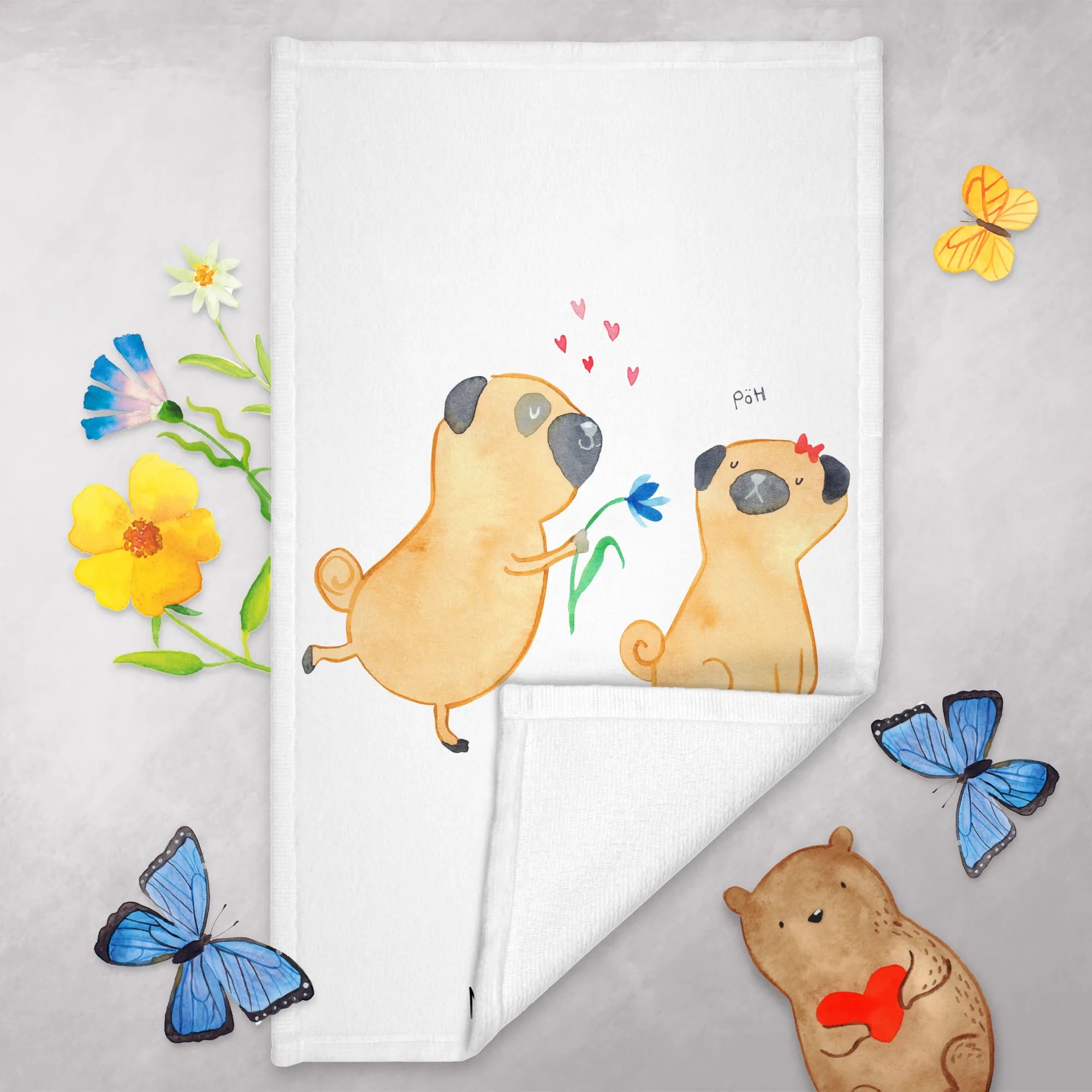 Hand towel pug In love - 50 x 100 Towel - with a saying - White