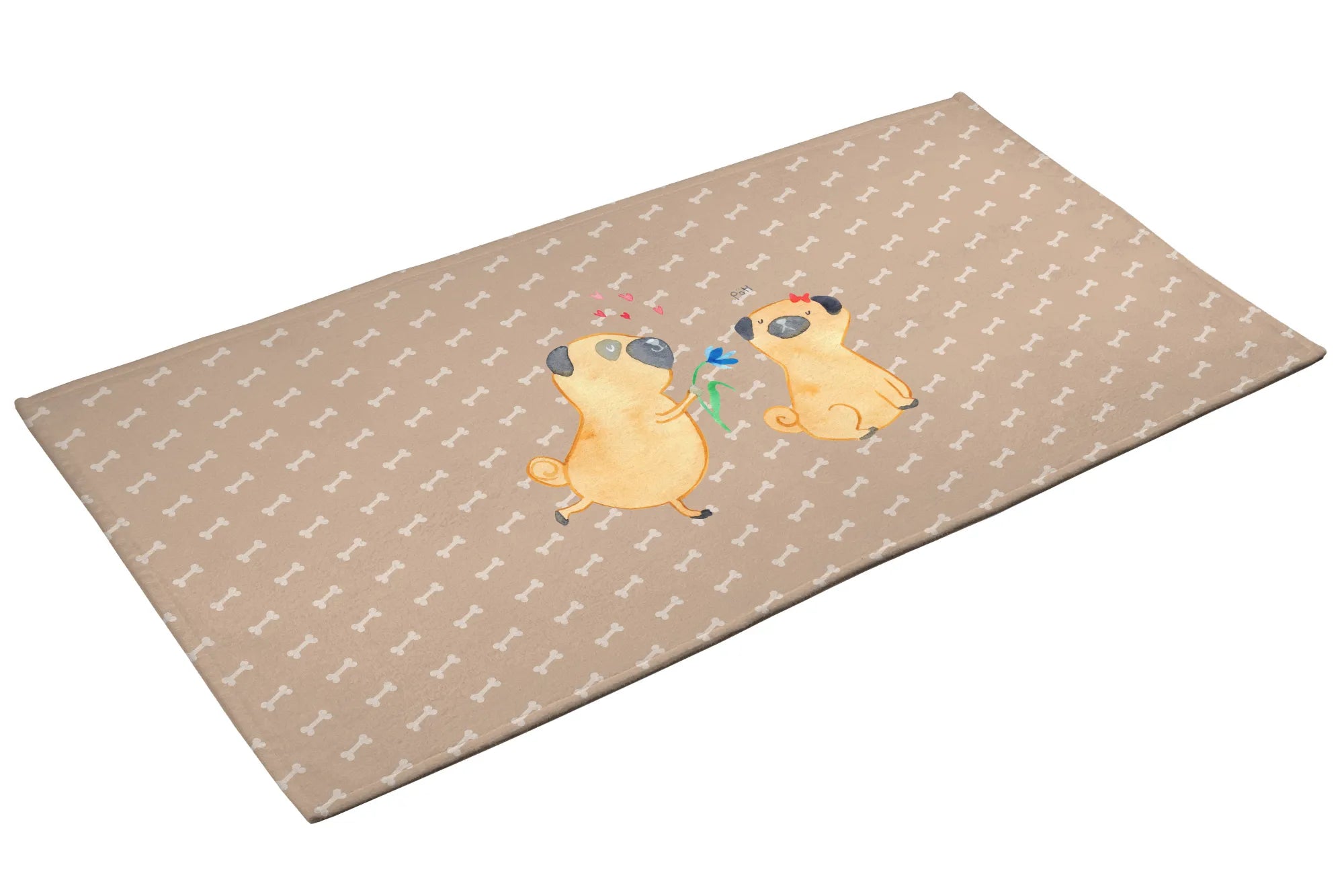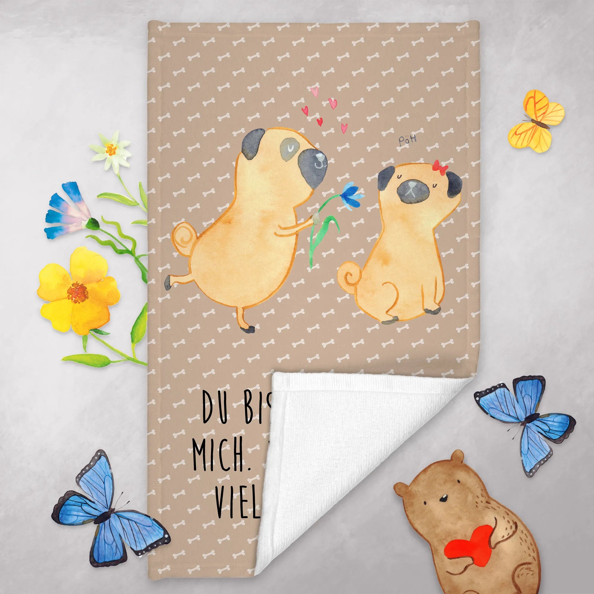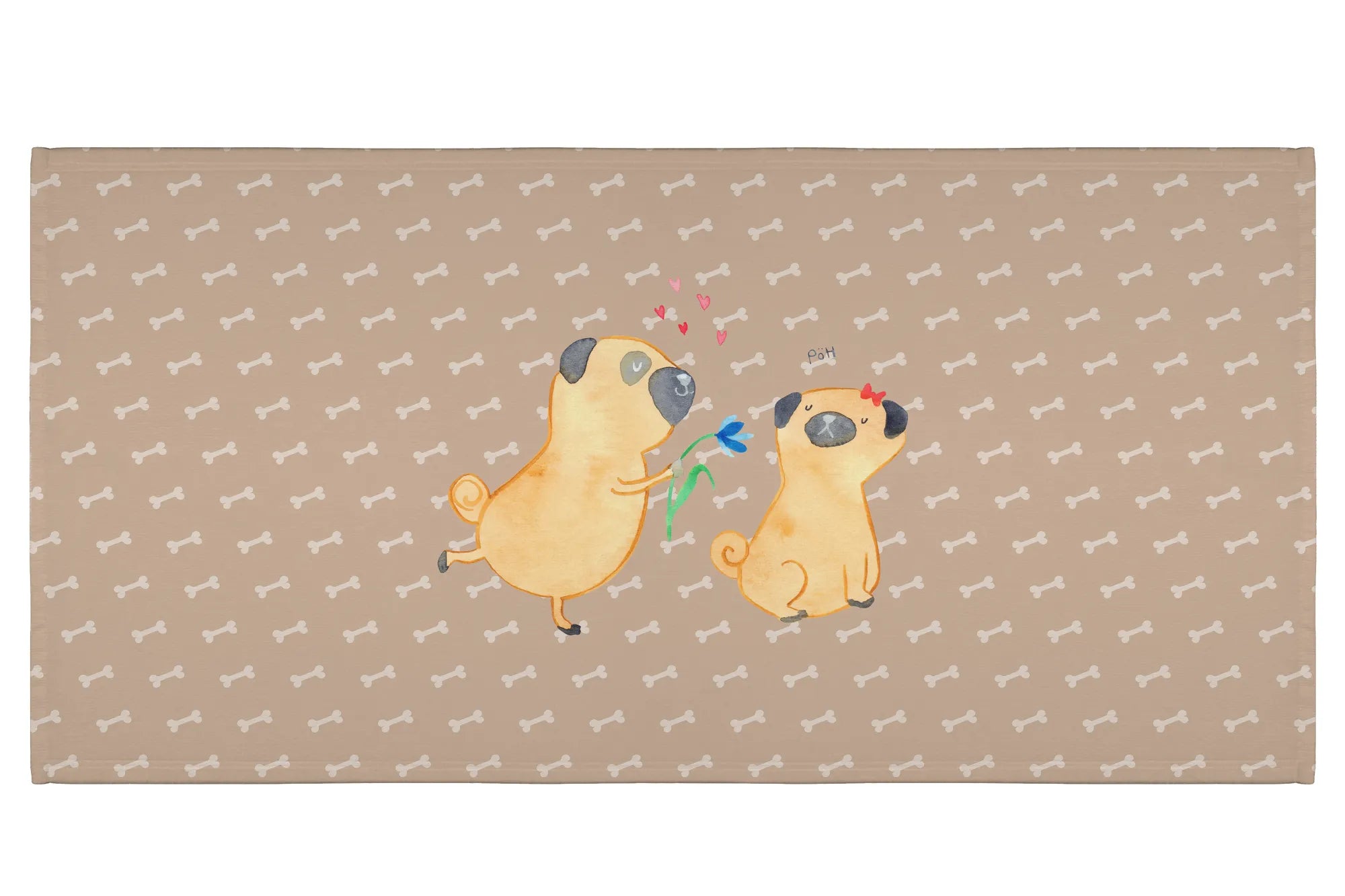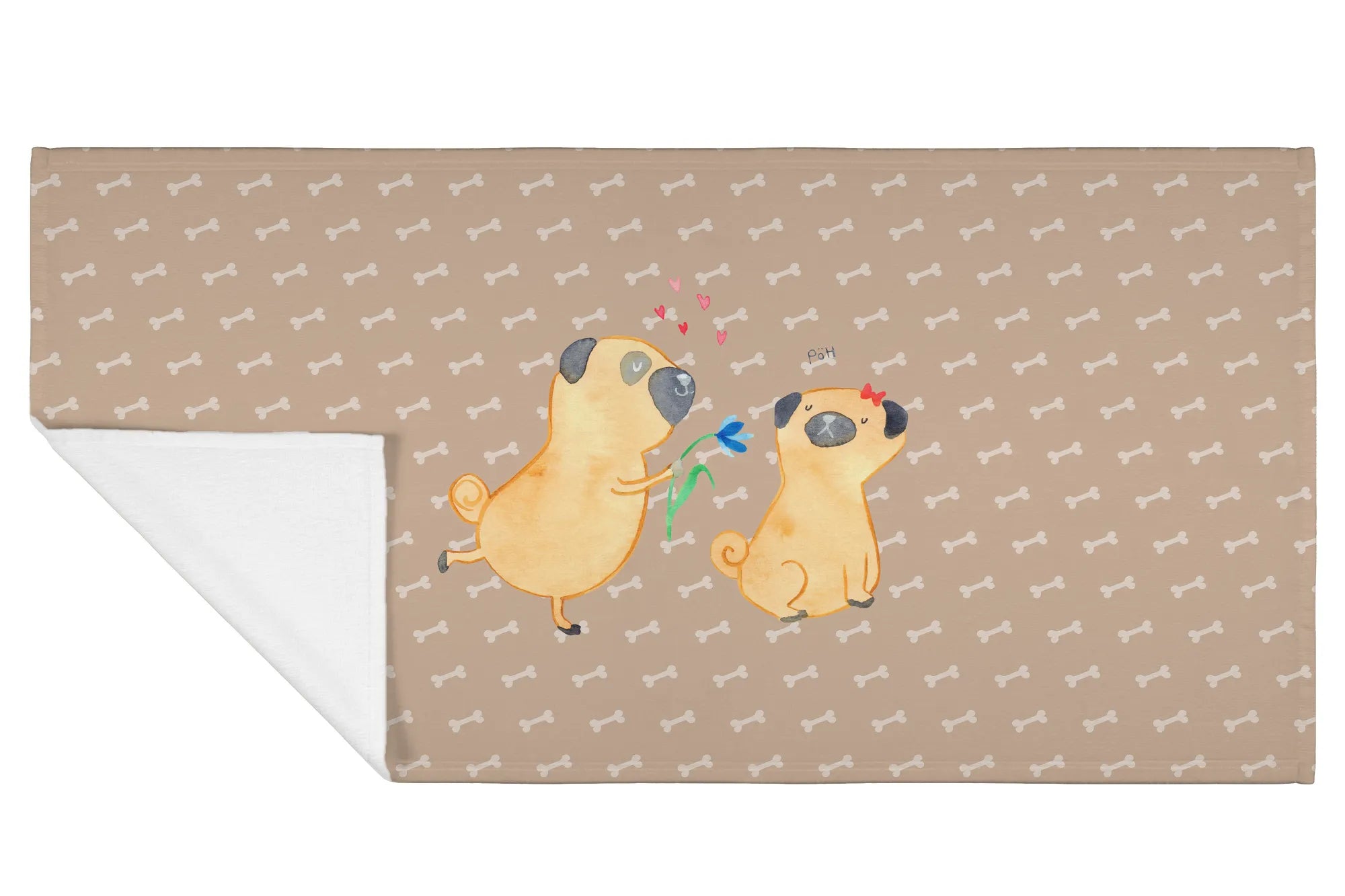 Hand towel pug In love - 50 x 100 Towel - with a saying - White